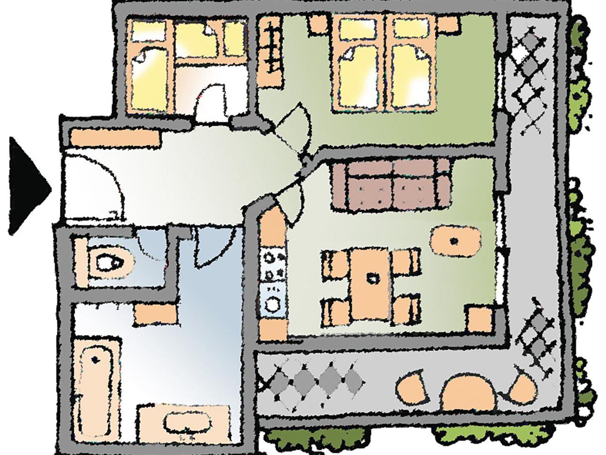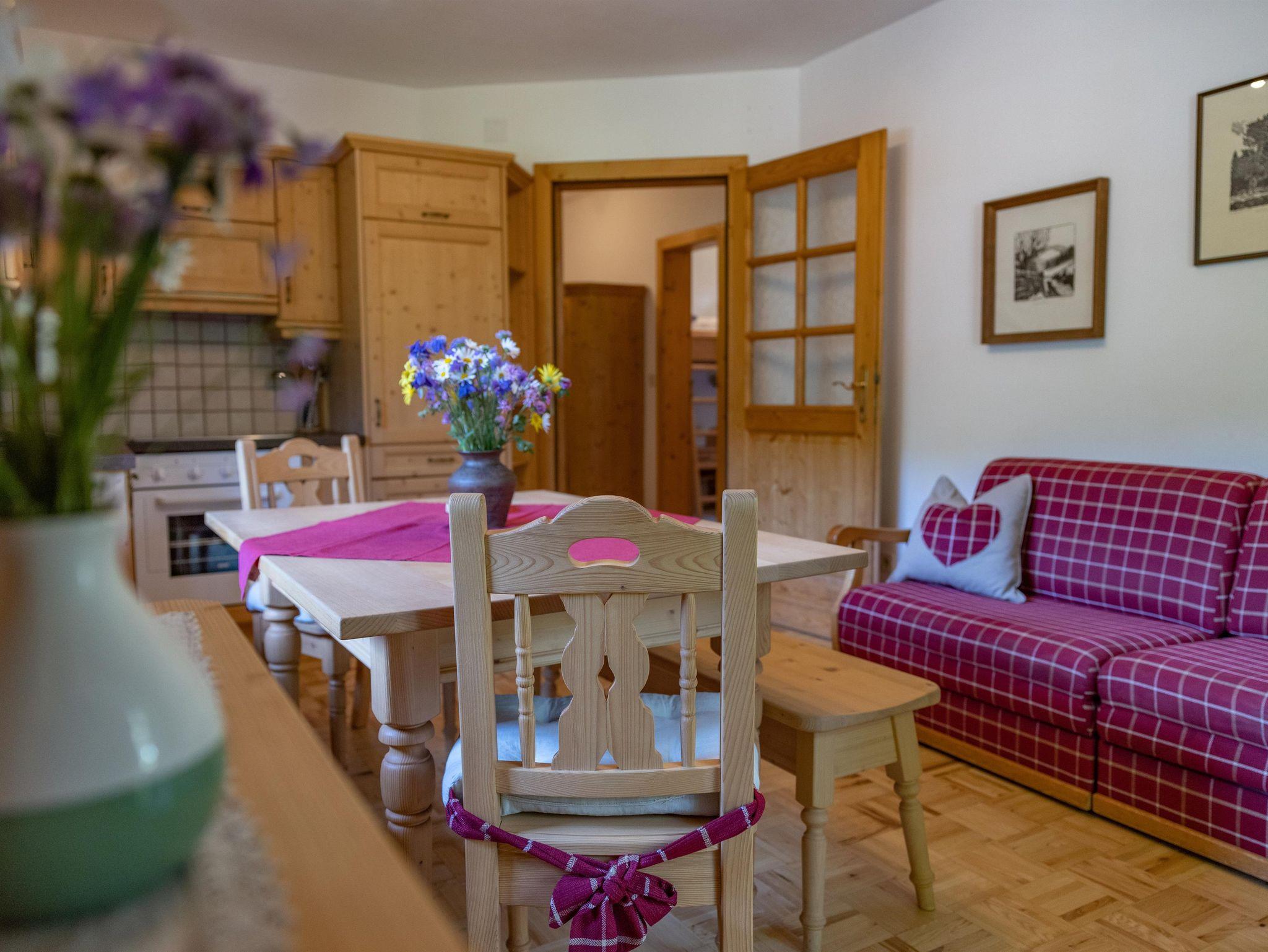 Vitalität, Ausgeglichenheit und Lebensfreude. Das was ein schöner Sonnentag ausmacht gibt es auch in unserer Wohnung Blumenwiese. Die Wohnung bietet ein Elternschlafzimmer mit 2 Betten und ein Kinderschlafzimmer mit 2 Betten. Auch hier sind Bad und Küche dabei. Alternativ kann auch die Ausziehcouch weiteren Personen Platz bieten.