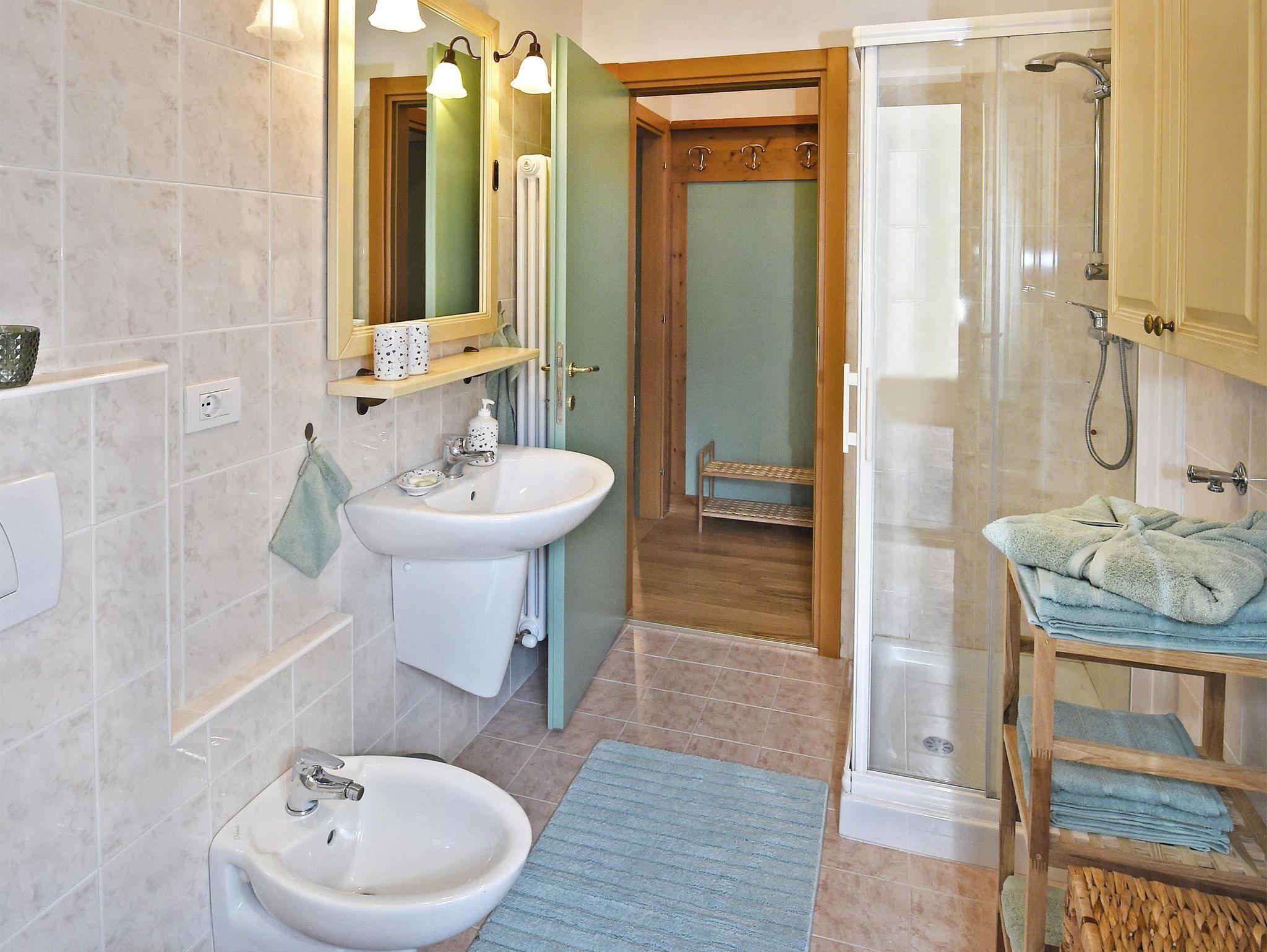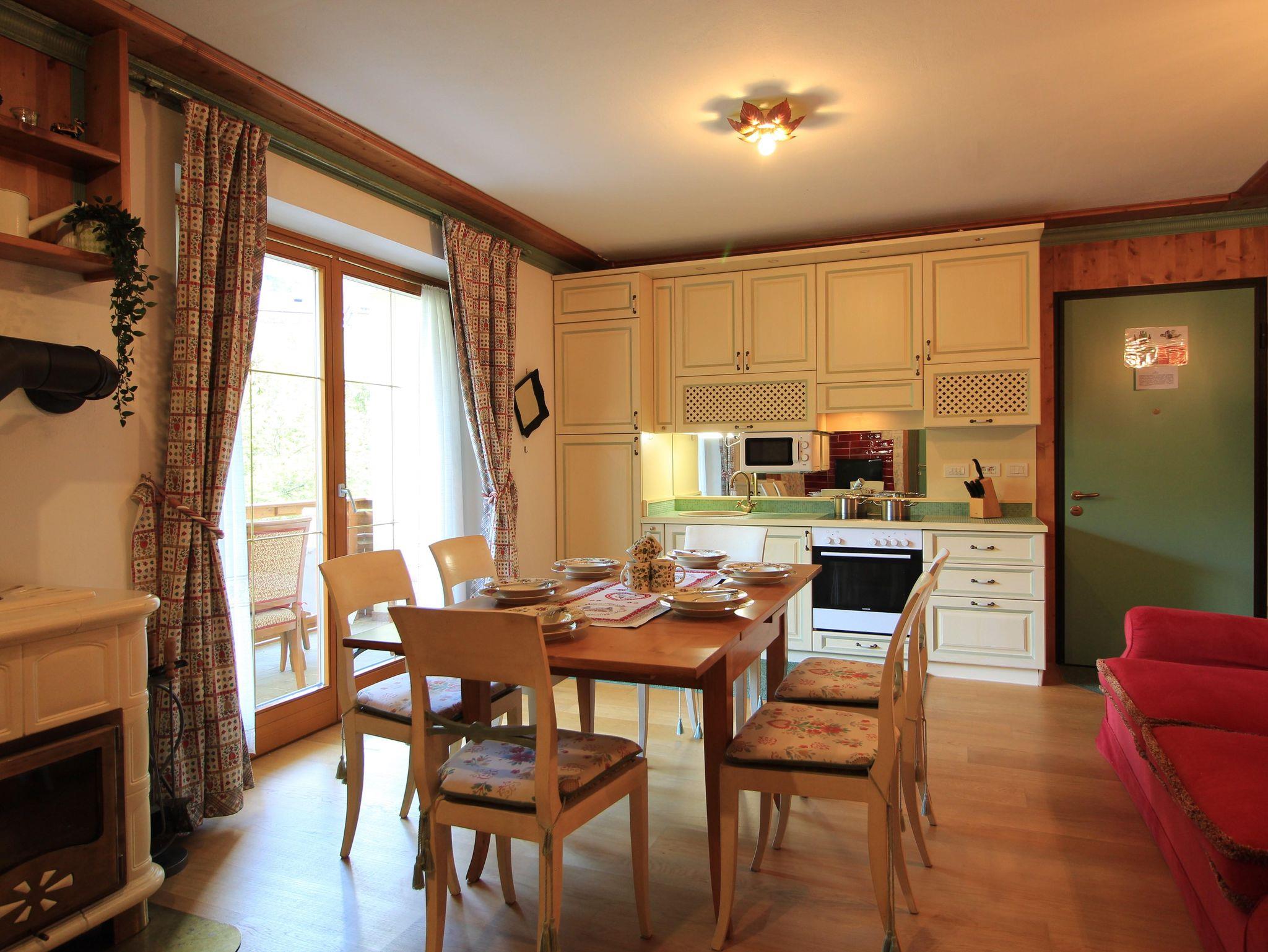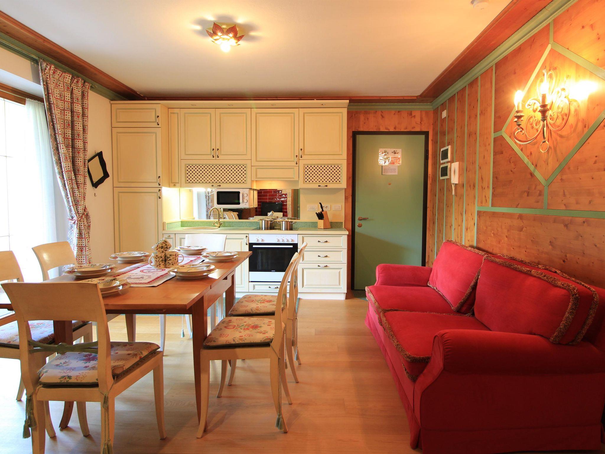 Brandneue Wohnung im ersten Stock eines kleinen Gebäudes in strategischer Lage, ganz in der Nähe von Supermärkten, Therme, Bars und Restaurants. Die Skipisten erreichen Sie mit einem bequemen Skibus (Haltestelle 100 m vom Hause entfernt) oder nach einem kurzen Spaziergang von ca. 5 Minuten. Eine gute Skischule für Kinder ist auch in der unmittelbaren Nähe. Zwei Doppelschlafzimmer, ein Schlafsofa im Wohnzimmer. Ein Badezimmer mit Dusche und dazu noch ein WC. Voll ausgestattete Küche und zwei Panoramabalkone.