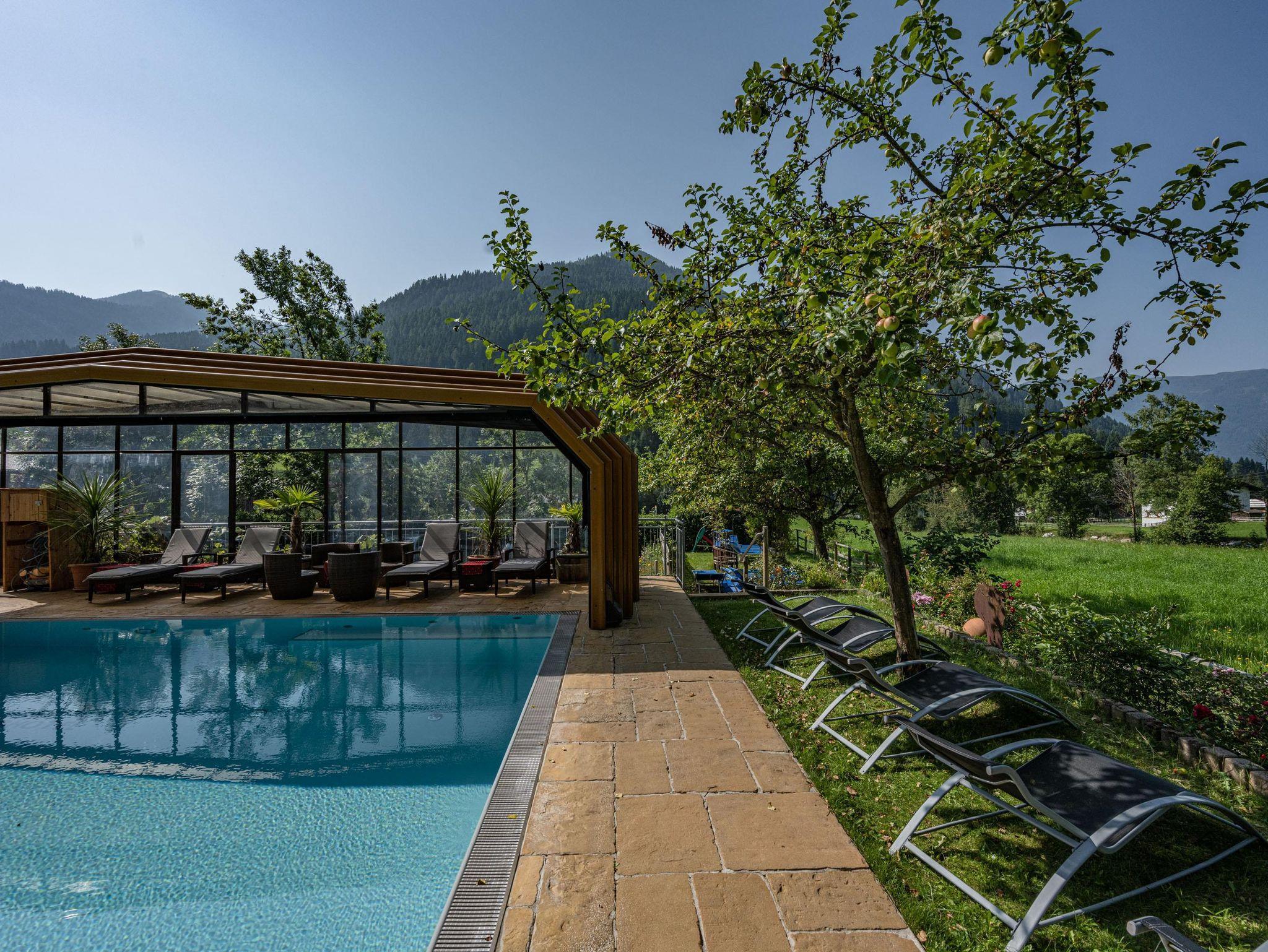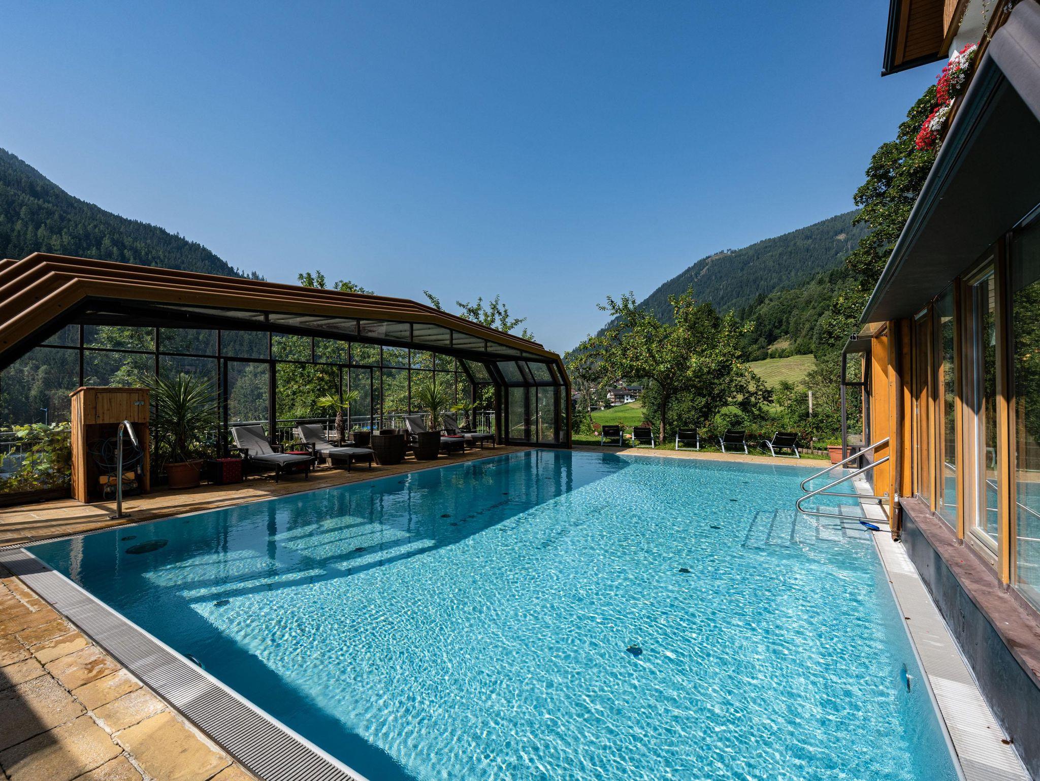Willkommen im Hotel Almrausch mit der 500 Quadratmeter großen Wellnessoase auf zwei Ebenen. Freuen Sie sich auf jede Menge Relaxen, Energietanken und Kraftholen mit überdachtem, ganzjährig nutzbarem Pool (Sommer 29°C, Herbst/Winter 31°C), einer Saunaoase, verschiedenen Ruheräumen und bei wohltuenden Massagen. Sommerurlaub in Bad Kleinkirchheim