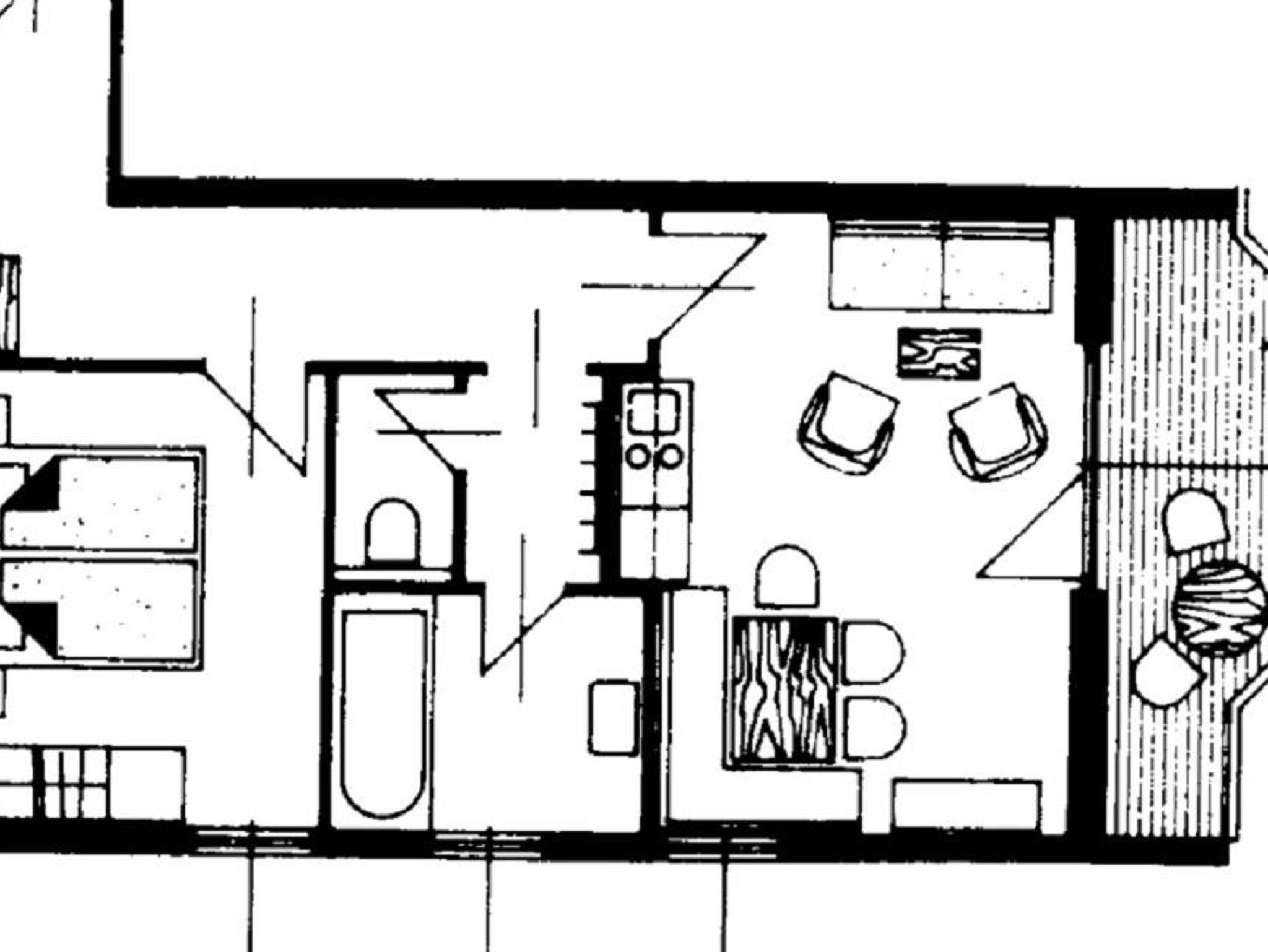 bestehend aus einem Schlafraum, einem Wohnraum mit Ausziehcouch, Kochnische mit Geschirrspüler, Espresso Kaffemaschine und Mikrowelle, Bad mit Badewanne und Dusche, extra WC, 2 LCD-TV mit Radio, Südbalkon - Nichtraucherappartement