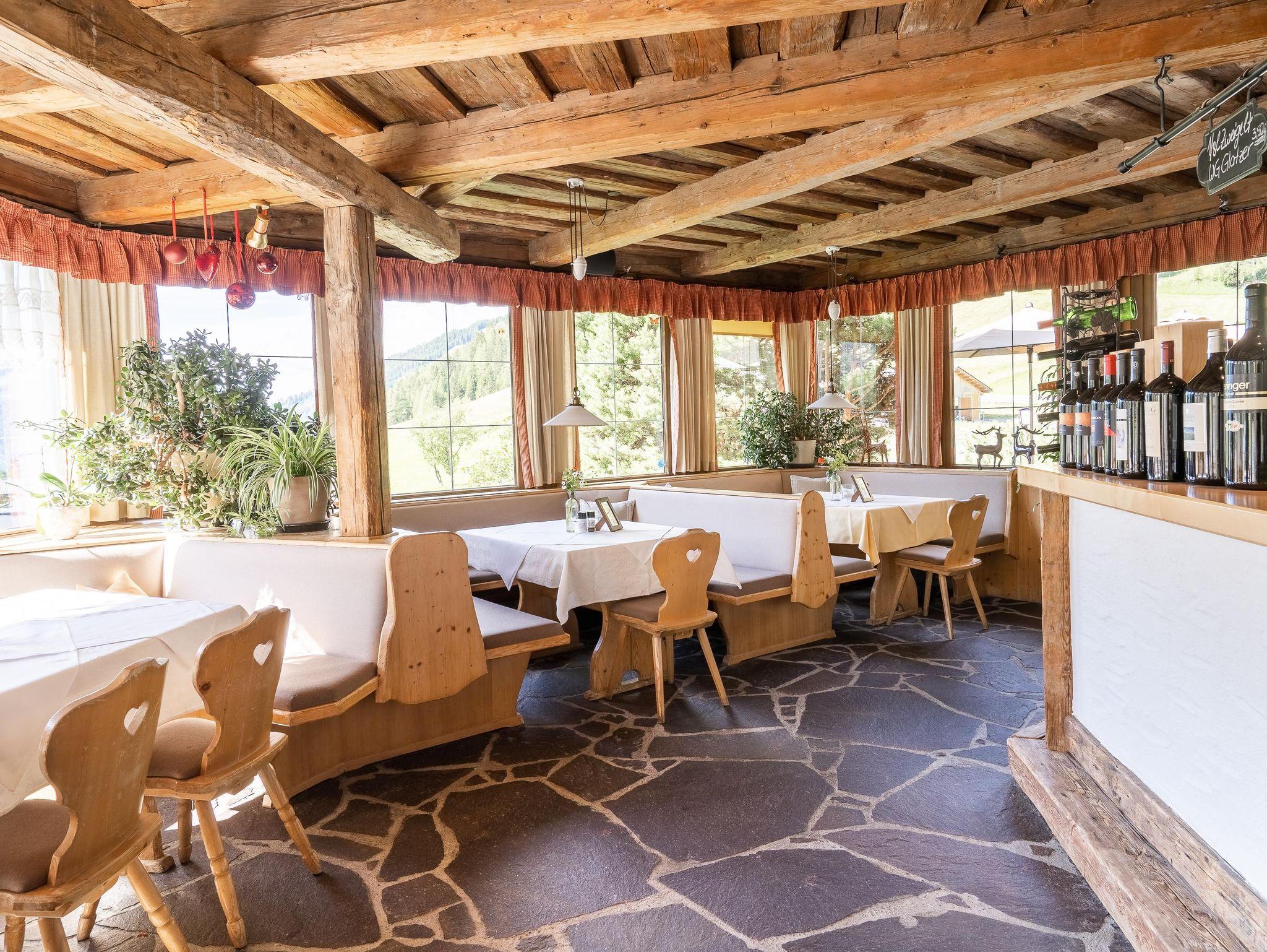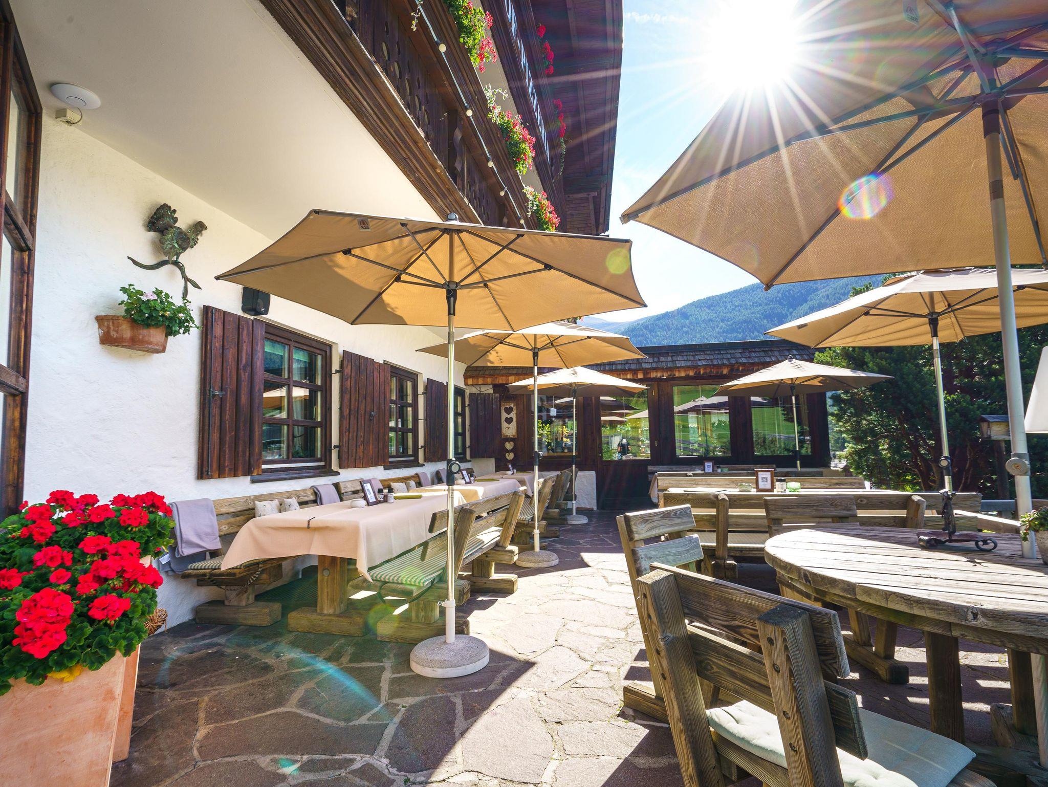 In unserem Haus befindet sich ein urgemütliches Restaurant und eine Pizzeria mit Holzofen. Weiters bieten wir für unsere Gäste eine Sonnenterrasse, Kinderspielplatz und einen eigenen Kräutergarten mit Liegewiese und einen Tischtennisplatz.