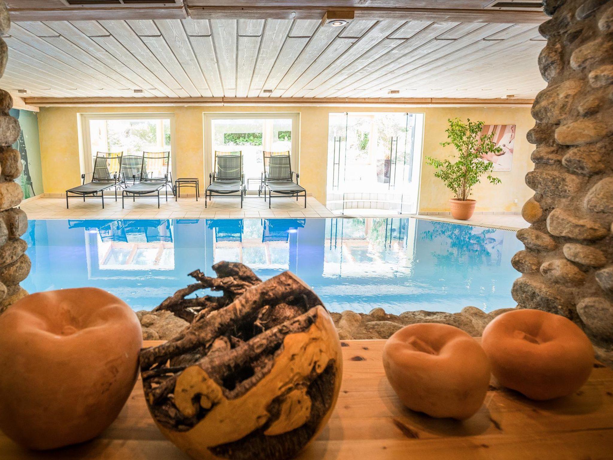 • Ganzheitliche Entspannung findet man vor allem auch im Familien-Wellnessbereich mit Outdoor- und Indoorpool und im großzügigen Eschenhof-SPA. Bei einer wohltuenden Behandlung, einer Massage, in einer der Ruhe-Oasen, in einer der Sauna-Attraktionen oder im separaten Erwachsenenbereich finden Sie Zeit für sich, für den Partner, für die Familie.