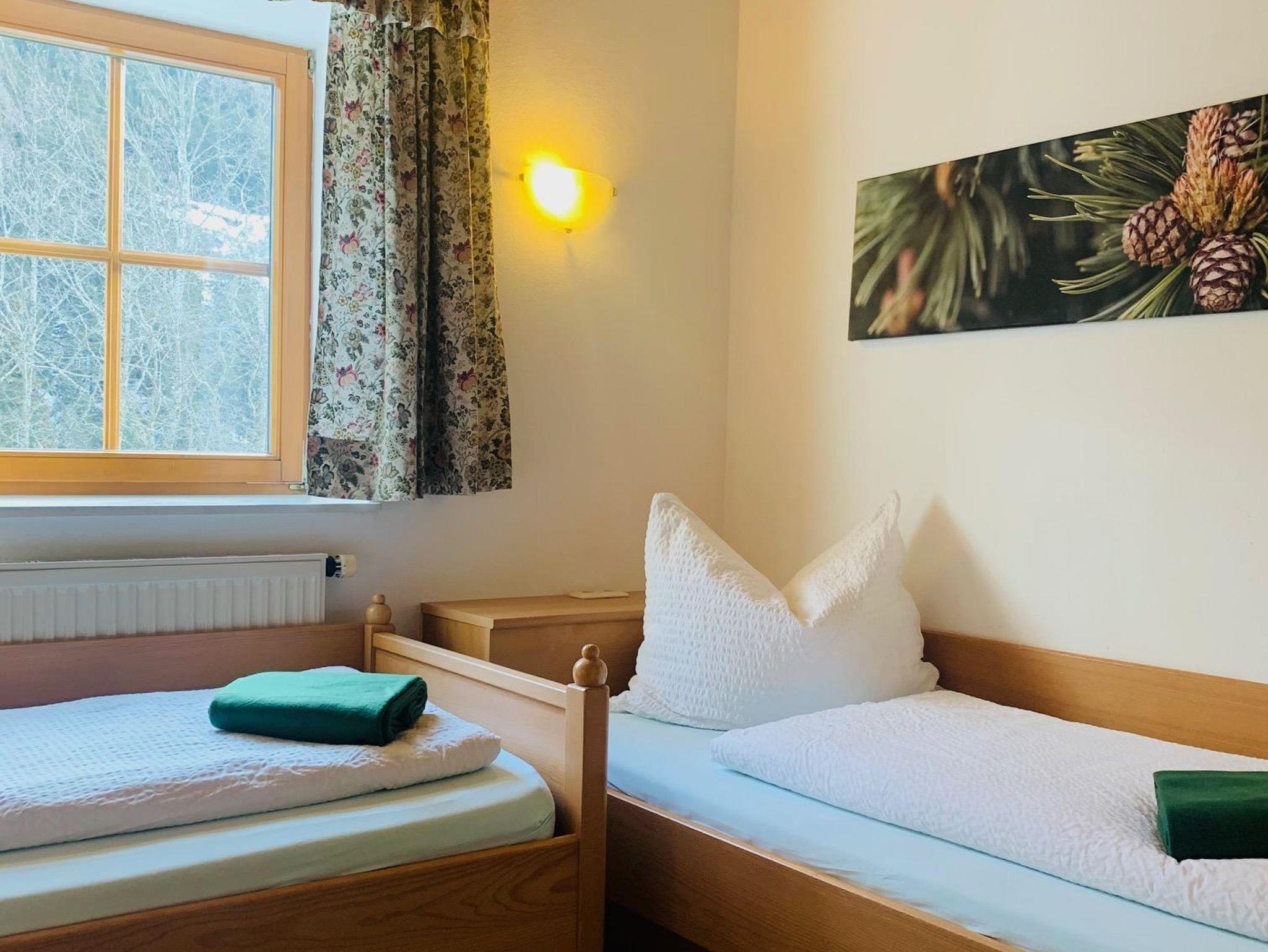 Appartement Lärche für 4 Personen (50 m²) im ersten Stock mit Balkon. Ausgestattet mit erstklassigen Möbeln in Massivholz verfügt das Appartement über zwei Schlafzimmer (ein Doppel- und ein Zweibettzimmer), ein Badezimmer mit Dusche und WC, einen großen Wohnraum mit Couch (auch als Einzelbett verwendbar), Relax-Sessel, SAT-TV, Radio, gratis WLAN, einer gemütlichen Eckbank und einen Küchenblock mit Kühlschrank, Geschirrspüler, Mikrowelle, Kaffeemaschine, Toaster und Kochherd.