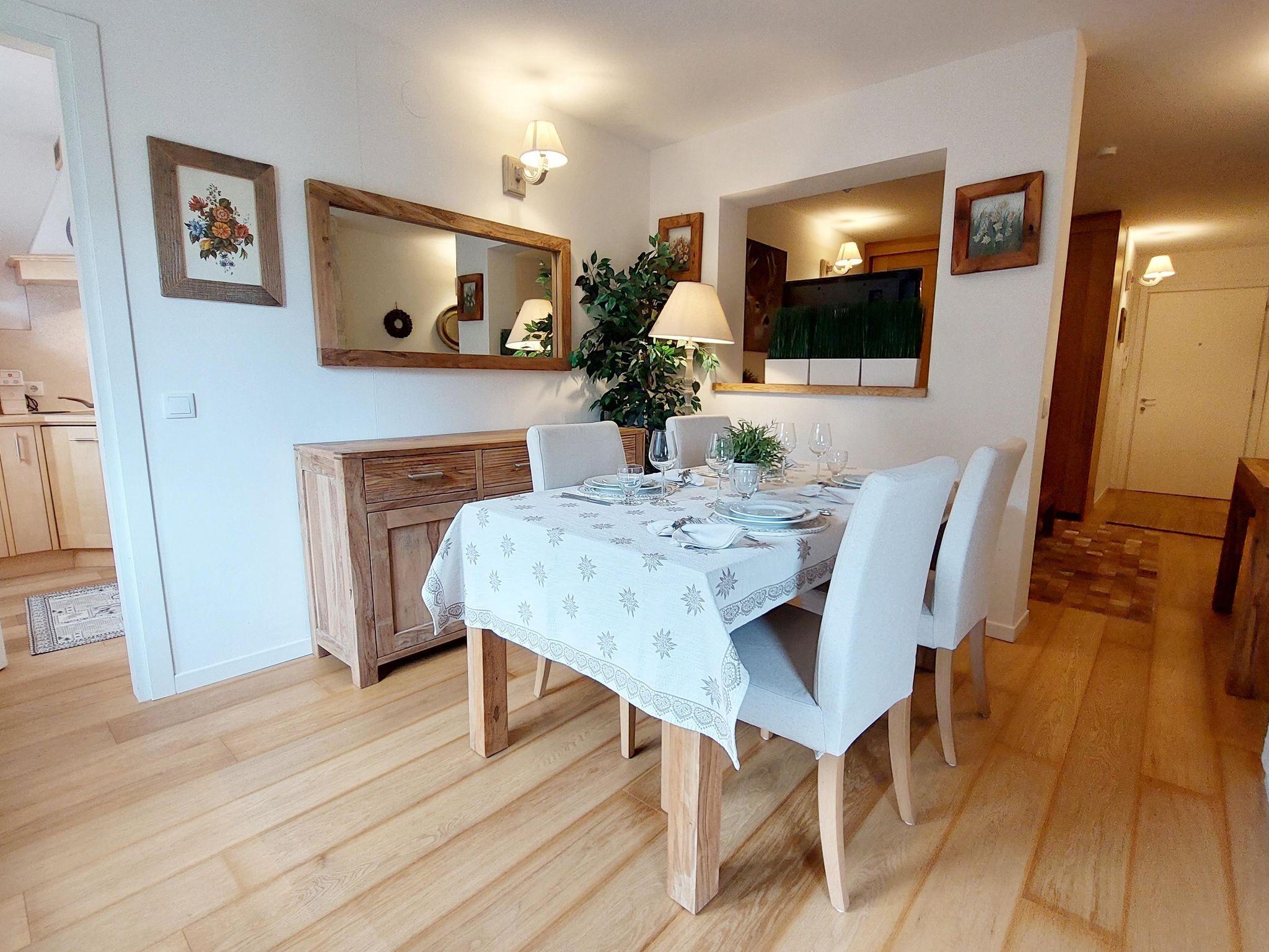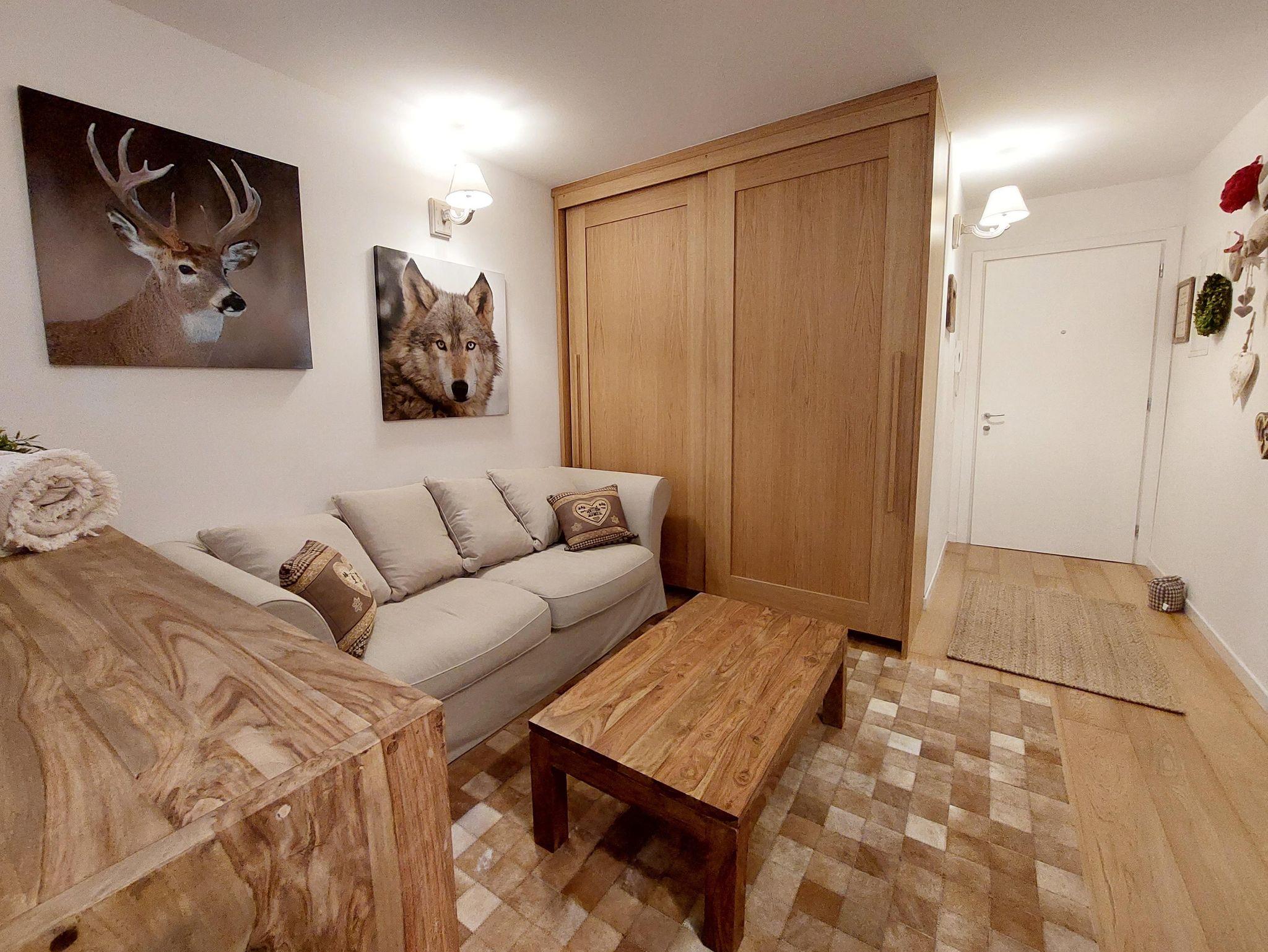 Hervorragende Wohnung in einem eleganten Gebäude, nur einen Steinwurf von den Skipisten entfernt. Ein großes Schlafzimmer mit Doppelbett, Wohnzimmer mit Schlafcouch, Küche, Balkon, Bad mit Dusche.