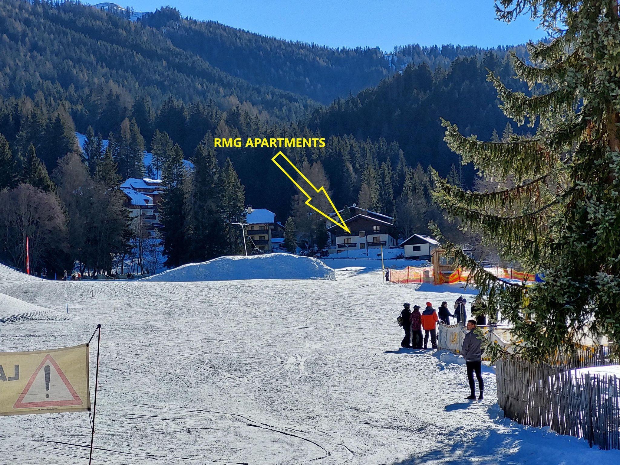 Haus mit 5 Wohnungen in panoramischer Lage. Die Skipiste ist gerade über der Strasse.