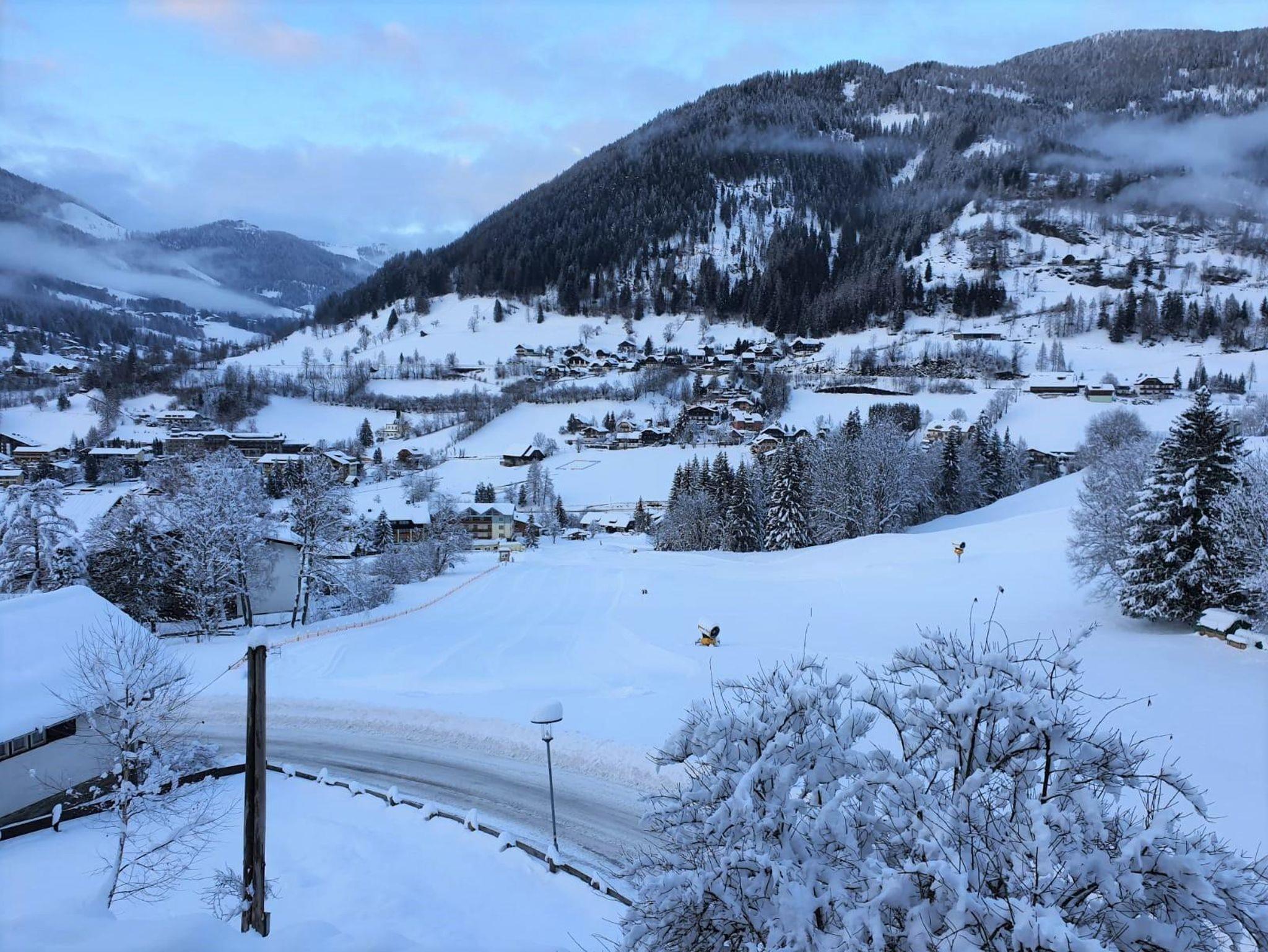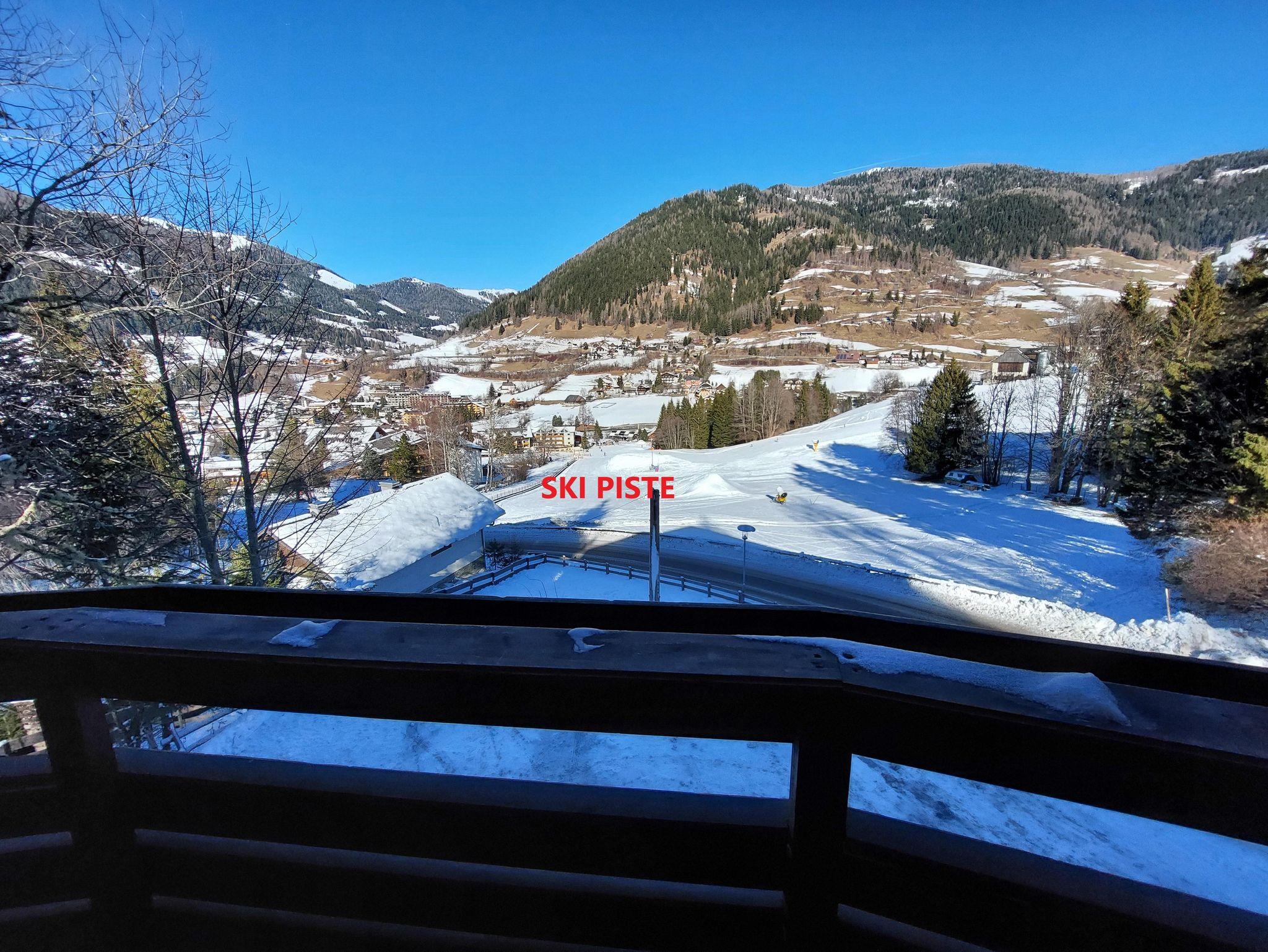 Helle und geräumige Wohnung im ersten Stock, nur einen Steinwurf von den Skipisten entfernt, mit Panoramablick über Bad Kleinkirchheim, ca. 2 km vom Zentrum entfernt. Ein großes Doppelzimmer mit Balkon und Blick auf das Tal, eines mit Etagenbett, Wohnzimmer mit Schlafsofa und Terrasse zum Garten, Esszimmer und Küche, ein komplettes Badezimmer mit Dusche, ein Badezimmer mit Badewanne und Waschbecken + 1 WC. Kleines, gepflegtes Gebäude mit nur 5 Wohneinheiten, Skiraum mit Schuhwärmer, Fahrradkeller, Wäscherei und Wellnessbereich mit Sauna und Dampfbad. Ein Parkplatz im Freien.