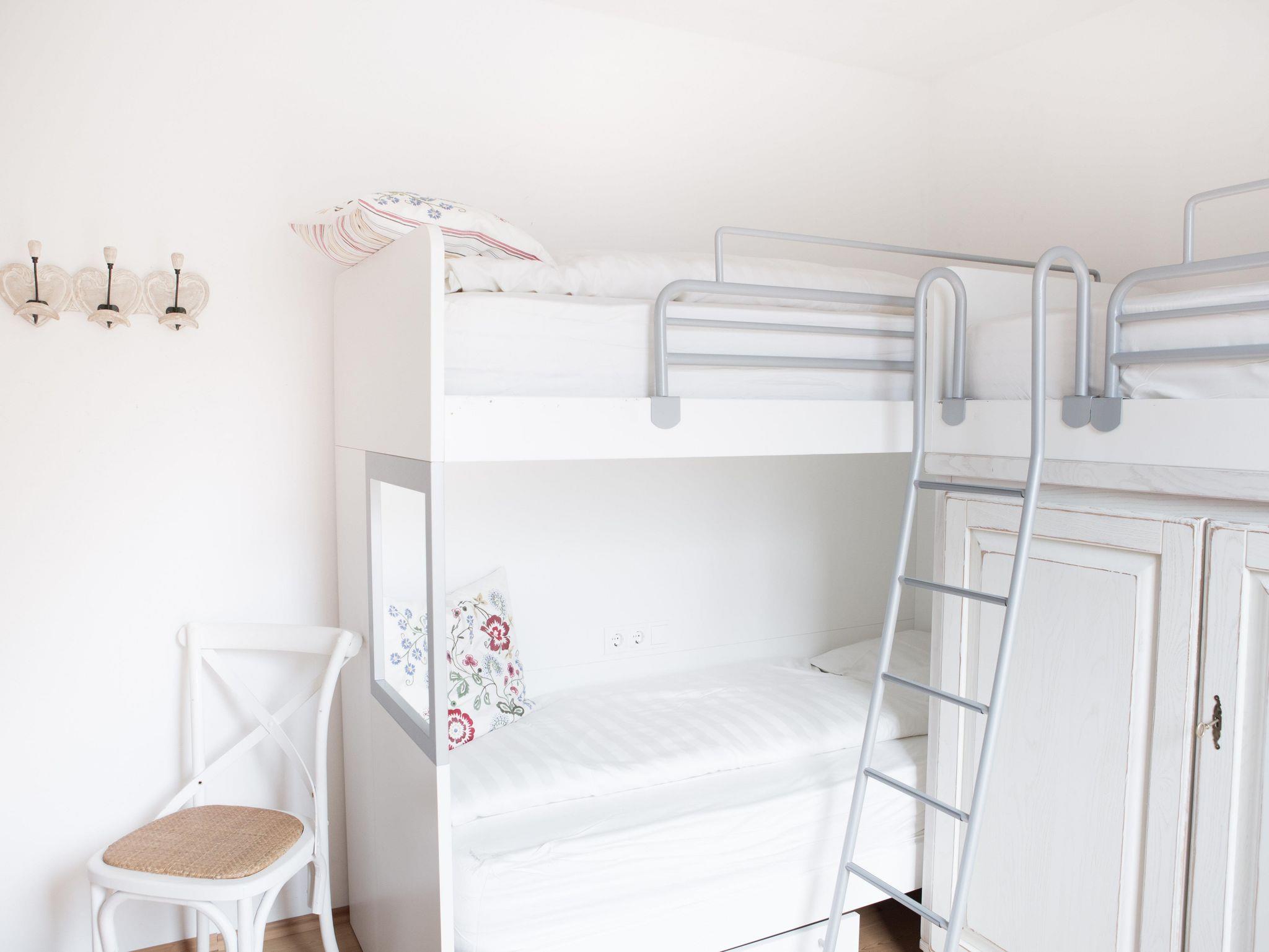 • 1 kleines Schlafzimmer – wahlweise mit Doppelbett oder Stockbetten