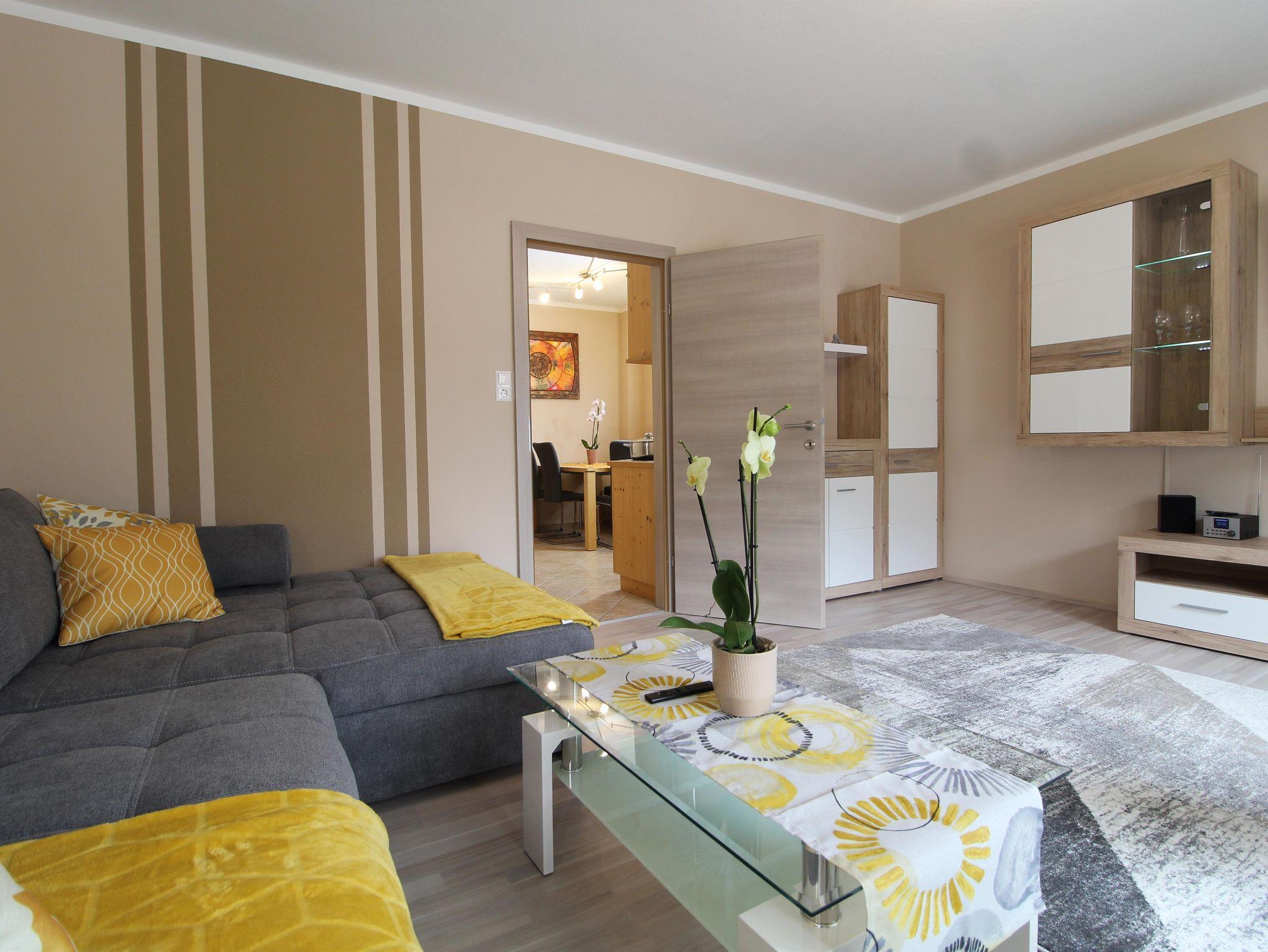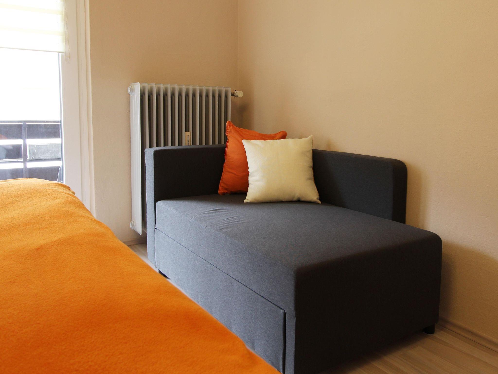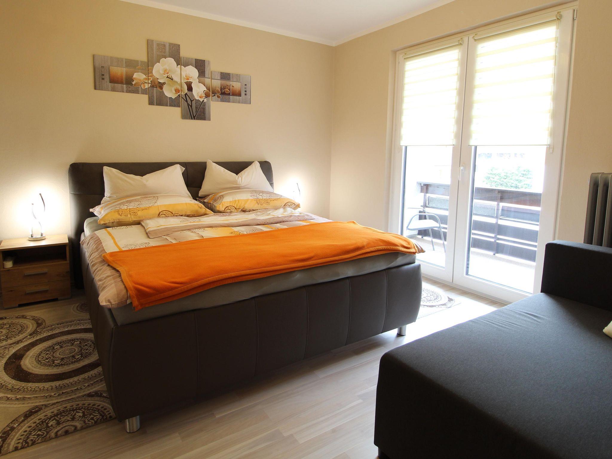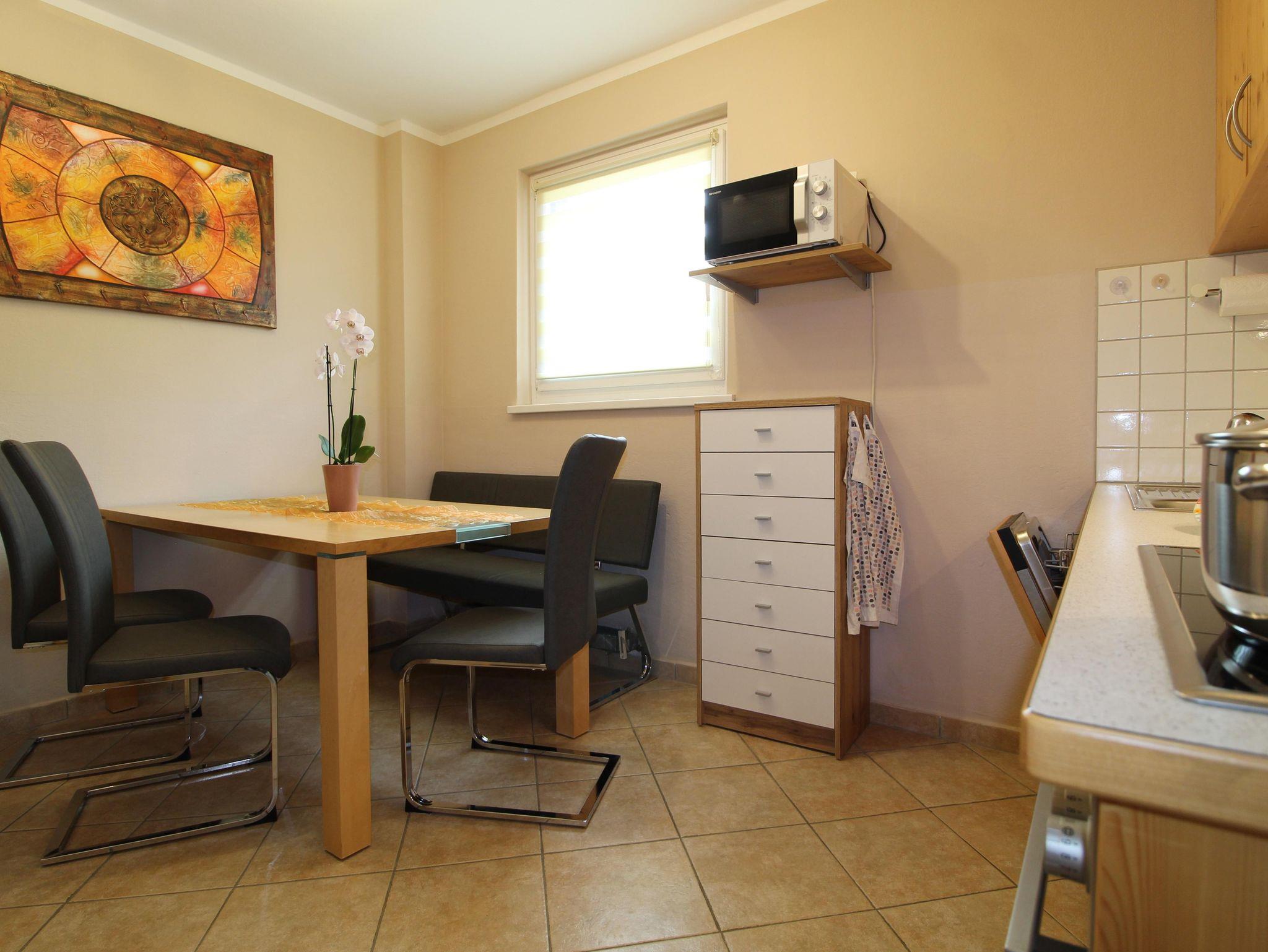 Das Apartment bietet Gartenblick und verfügt über 1 Schlafzimmer mit Zusatzbett & Balkon, 1 Wohnzimmer mit Couch (ausziehbar), 55`Zoll Flach SAT-TV & Balkon, eine voll ausgestattete Küche mit Geschirrspüler und Mikrowelle und 1 Badezimmer mit Dusche.
