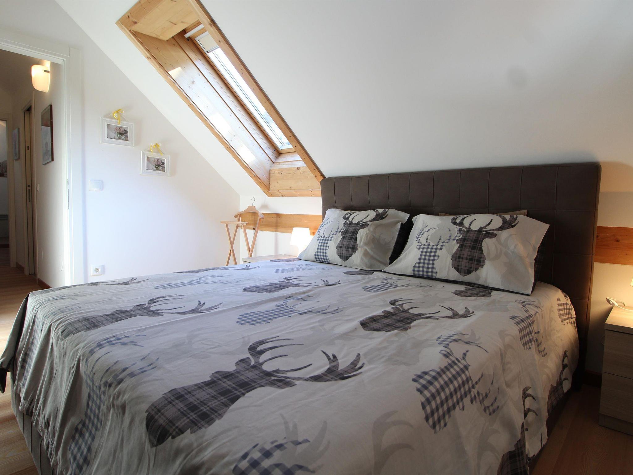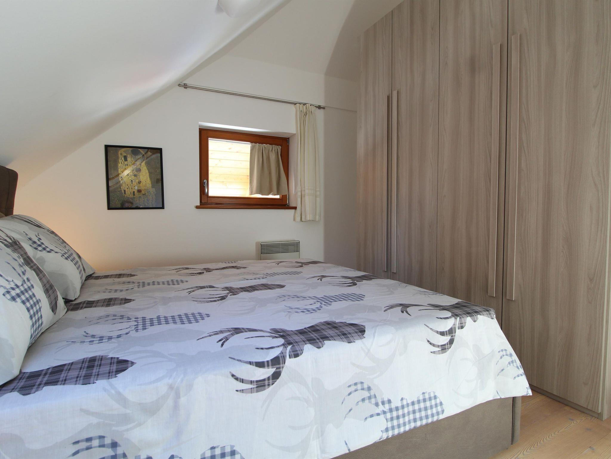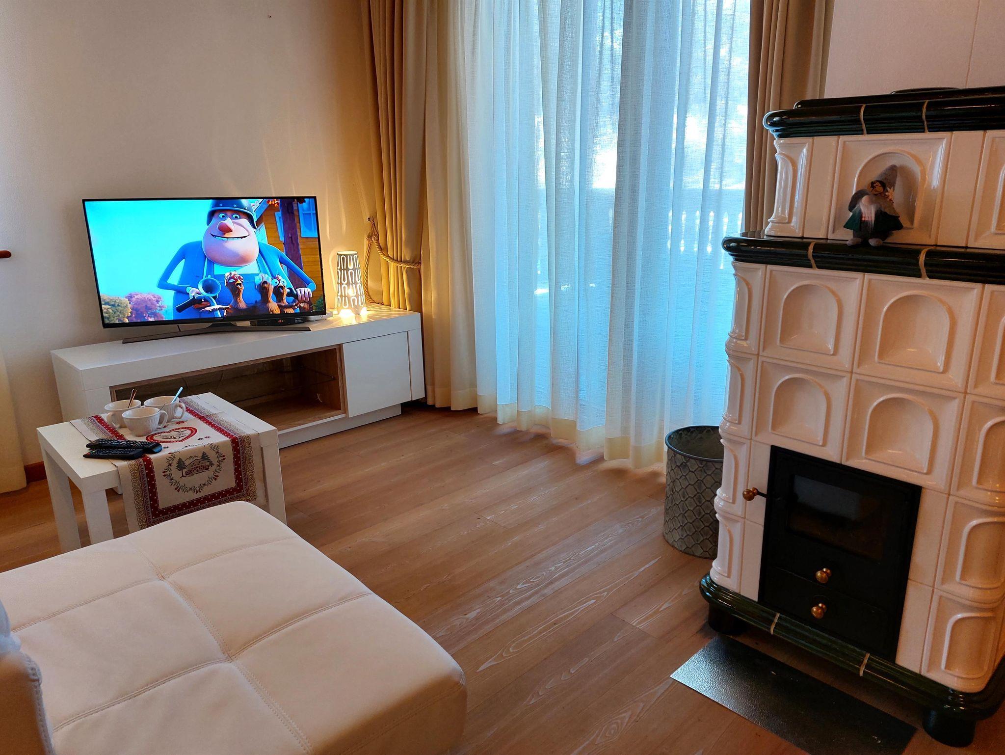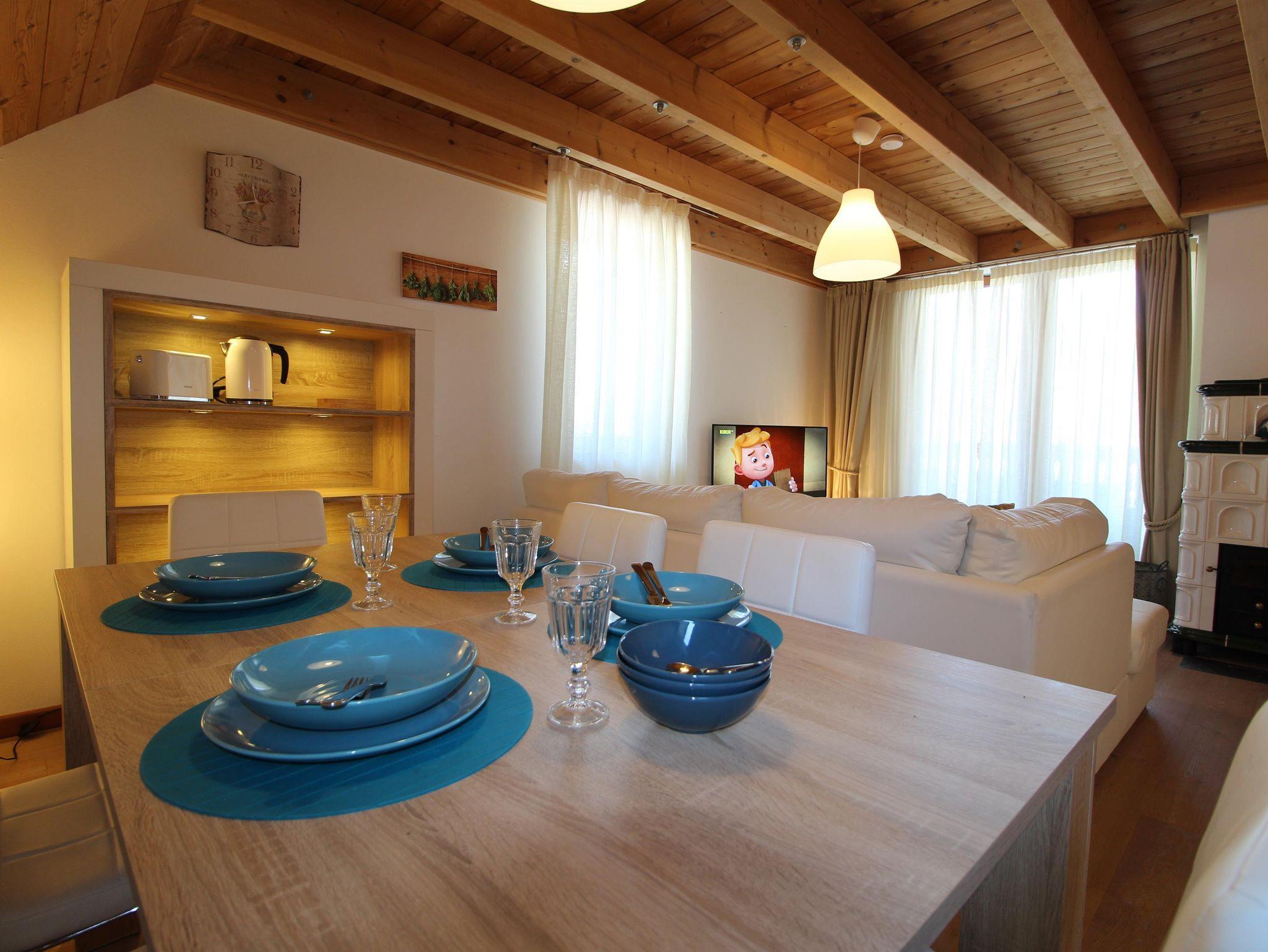 Wunderschöne neue Ski-to-door Wohnung auf zwei Ebenen in panoramischer Lage. Drei Schlafzimmer mit Doppelbett, zwei komplette Bäder mit WC, Waschbecken, Dusche und Bidet, bequemes Wohnzimmer mit Küche, Esstisch für 6 Gäste, Couch und Holzofen und Zugang zu einem tollen Balkon mit Blick auf Tal, Dorf und Skipiste. Eine Waschmaschine steht zur Verfügung, wie auch zwei bedeckte Parkplätze und ein Abstellraum für sportliche Ausrüstung (Ski, Skischuhe und Fahrräder). Im Winter kann man mit den Skischuhen an einfach die Strasse überqueren und man kommt zur Skipiste der Skischule für Kinder, die auch als Verbindungspiste zum Maibrunn Sessellift dient.