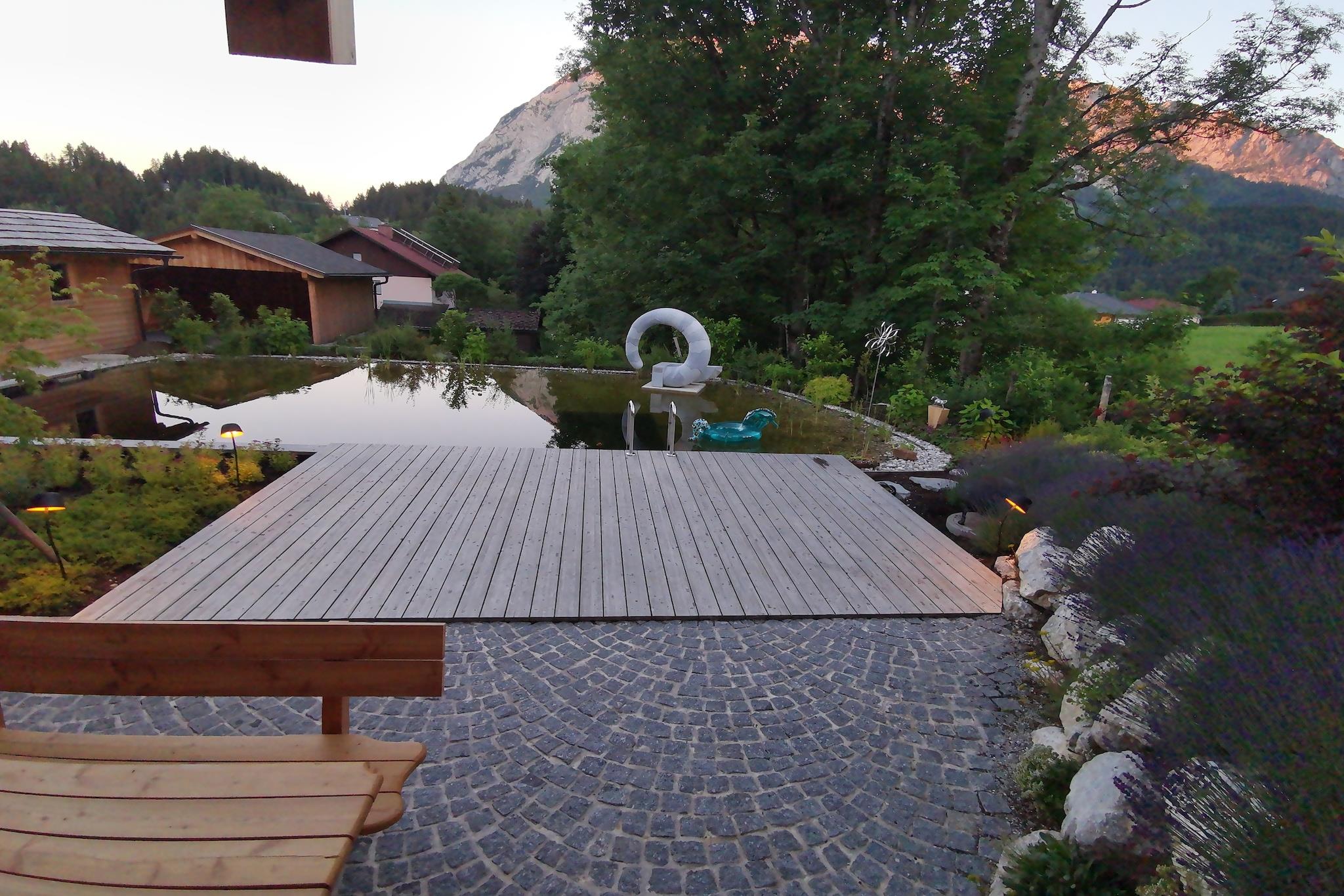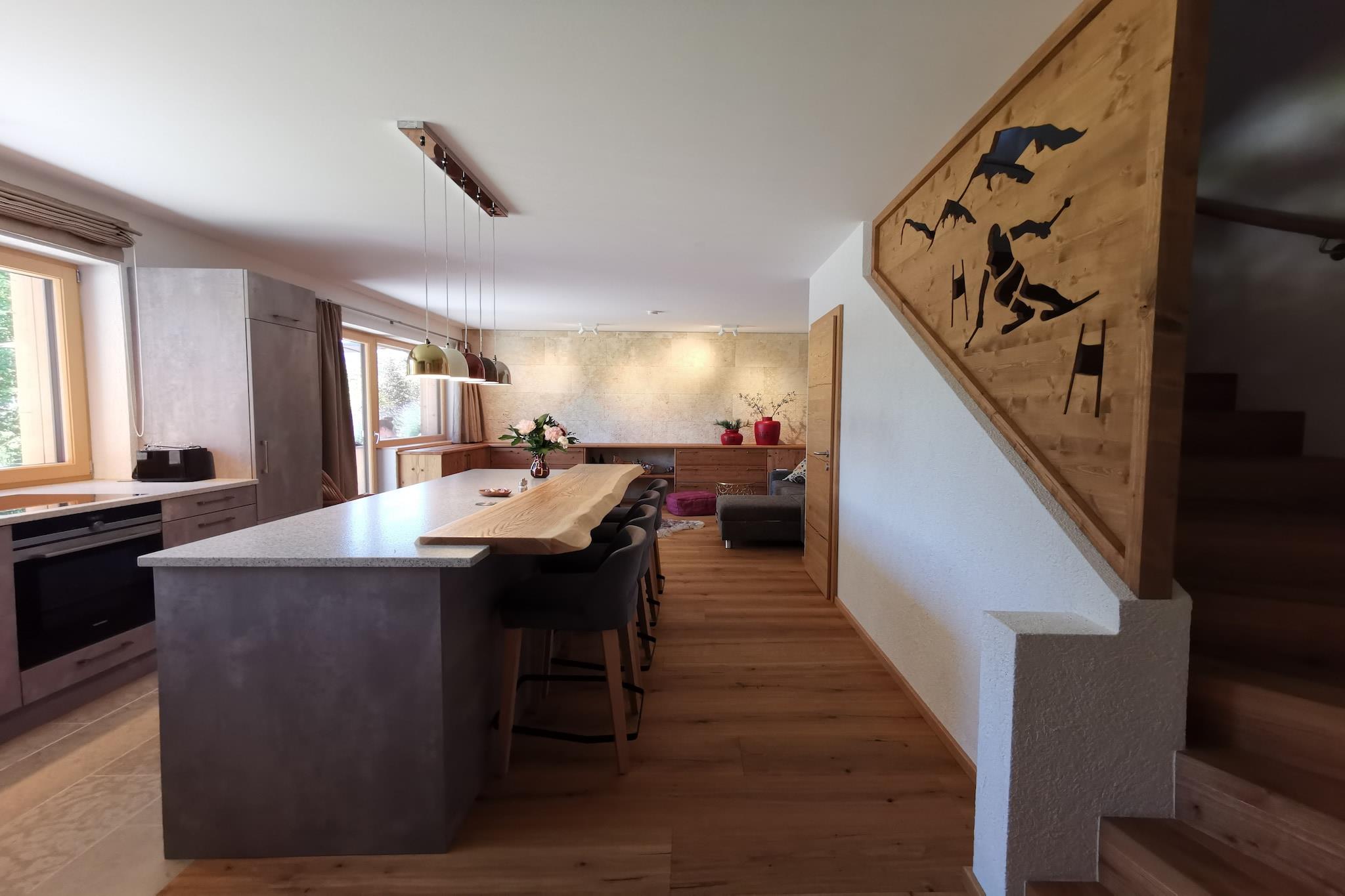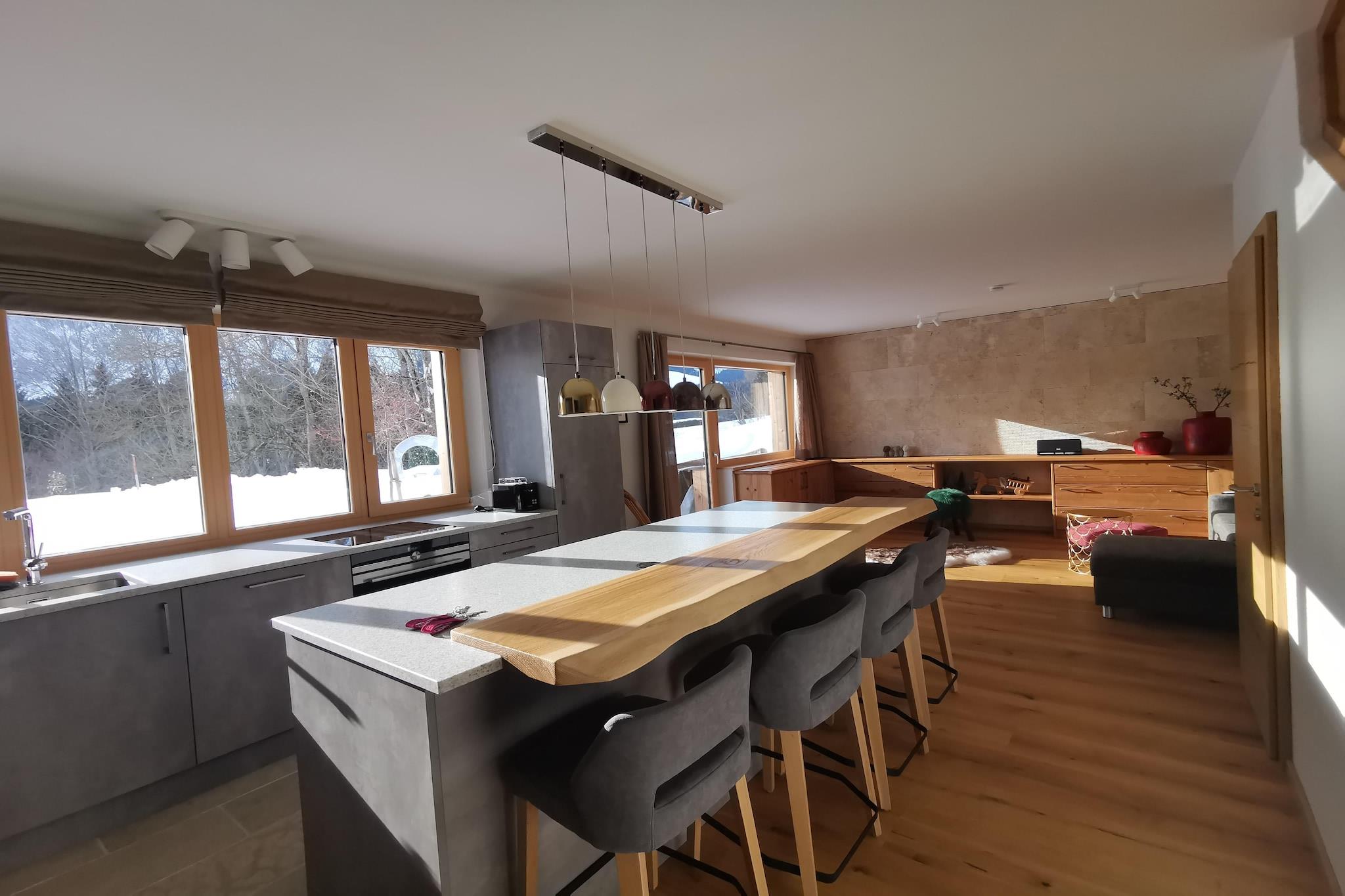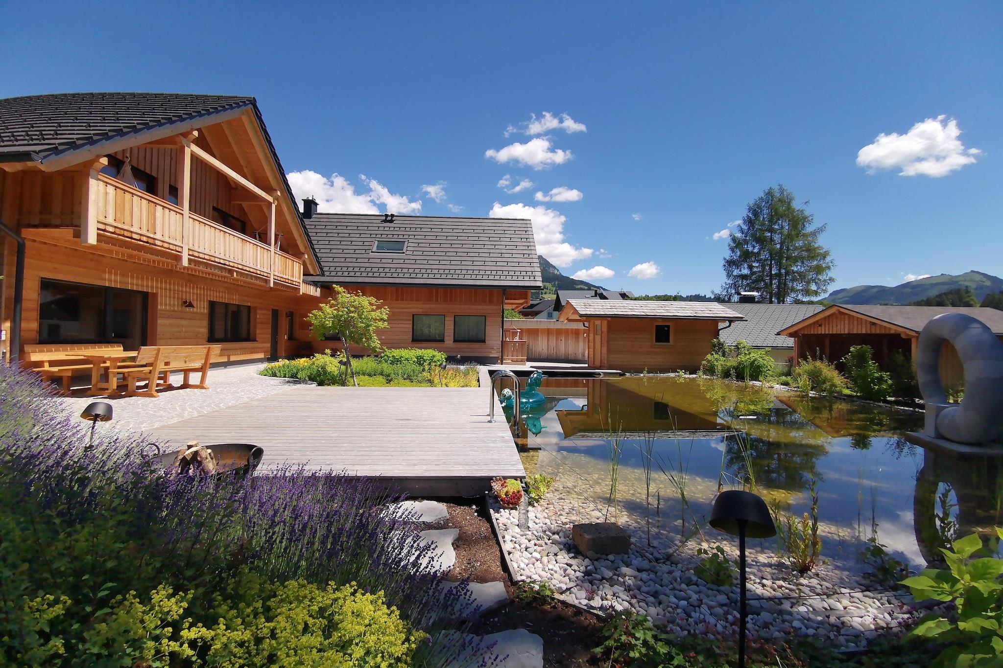 Denne specielle, moderne-rustikke og fritstående premium-chalet til maks. 10 personer ligger midt i skisportsstedet Tauplitz på omkring 900 m over havets overflade i Steiermark og tilbyder en smuk udsigt over det omkringliggende bjerglandskab i Salzkammergut. . Hytten er opdelt i 3 individuelle områder, som er forbundet med hinanden, det centrale element er fællesrummet, med et højkvalitets stort spisebord i træ og en brændeovn. Lige ved siden af inviterer saunaen til at slappe af. I stueetagen er der et fuldt udstyret køkken af høj kvalitet med en køkkenø og en træterrasse, et lille tekøkken, to opholds-/spiseområder, et stort soveværelse og et badeværelse. På øverste etage er der yderligere 3 soveværelser med loftskarakter, 2 altaner, 1 træterrasse, 2 badeværelser og endnu en stue/spisestue med et fuldt udstyret køkken. Denne premium chalet byder også på en smukt anlagt have med en naturlig svømmedam, en festhytte, 3 garagepladser, et skiopbevaringsrum med skistøvlevarmer, et opbevaringsrum til cykler og en vaskemaskine med tørretumbler. Tauplitz er beliggende i hjertet af Østrig, Ausseerland - Salzkammergut, er på 1650m det højeste søplateau i Centraleuropa og byder på utallige vandreruter såsom 6 søer vandretur samt mountainbike- og cykelture. Tauplitz er også det største enkelte skiområde og byder med Tauplitzalm - Bad Mitterndorf skiområde på 43 kilometer pister i 900 - 1965 meter over havets overflade på 3 bjerge. Om sommeren byder Altaussee-søen, Salza-reservoiret og Alpenbad i Bad Mitterndorf på masser af svømmesjov! Direkte i Tauplitz eller Bad Mitterndorf er der masser af indkøbsmuligheder til dine daglige behov samt et godt udvalg af restauranter. Der er også en tennisbane og en udendørs swimmingpool i umiddelbar nærhed af hytten.