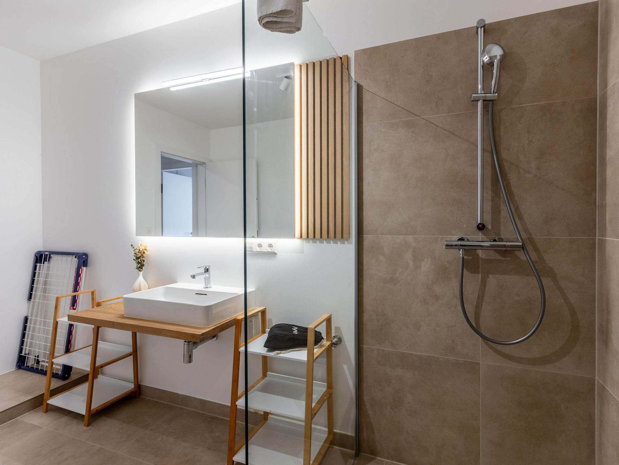Suite Heart befindet sich im Erdgeschoss, inklusive eigener Terrasse und Garten. Es gibt ein Schlafzimmer mit Doppelbett, sowie eine Schlafcouch im Wohnzimmer. Die Küche ist vollausgestattet.