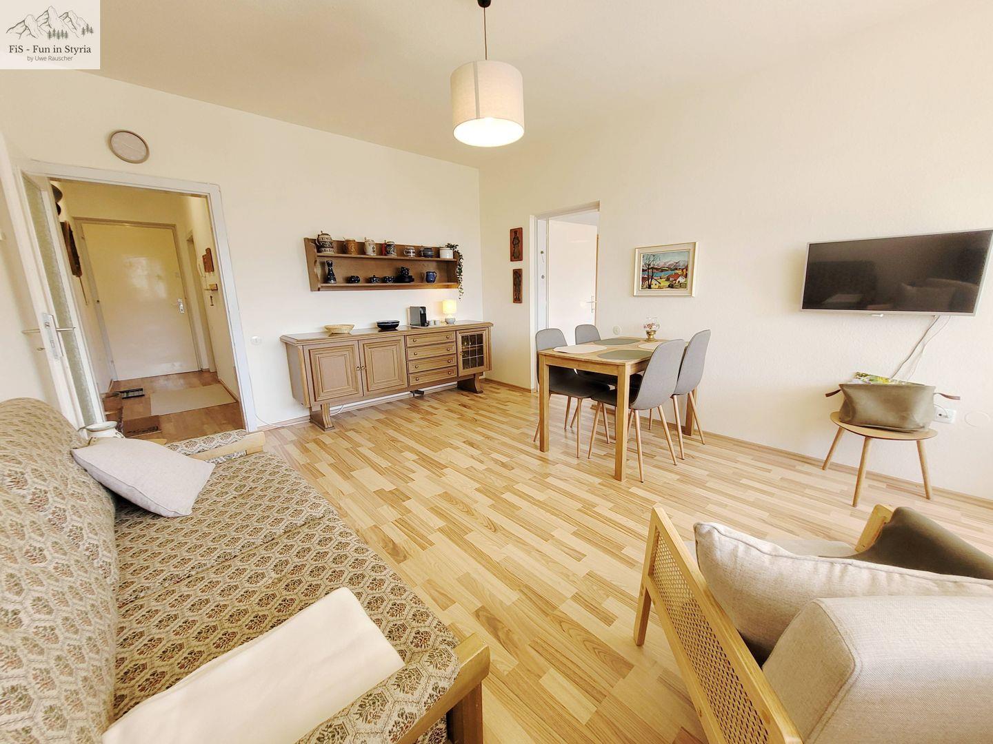 Das Apartment Svea in Bad Mitterndorf bietet auf 60 m² Platz für bis zu 3 Gäste (2 Erwachsene + 1 Kind) und überzeugt durch seine komfortable Ausstattung. Das lichtdurchflutete Appartement umfasst ein Schlafzimmer, ein gemütliches Wohnzimmer mit Sofaecke und Esstisch sowie eine voll ausgestattete, geschlossene Küche. Genießen Sie die frische Bergluft auf dem überdachten Balkon oder entspannen Sie im Indoor-Pool.