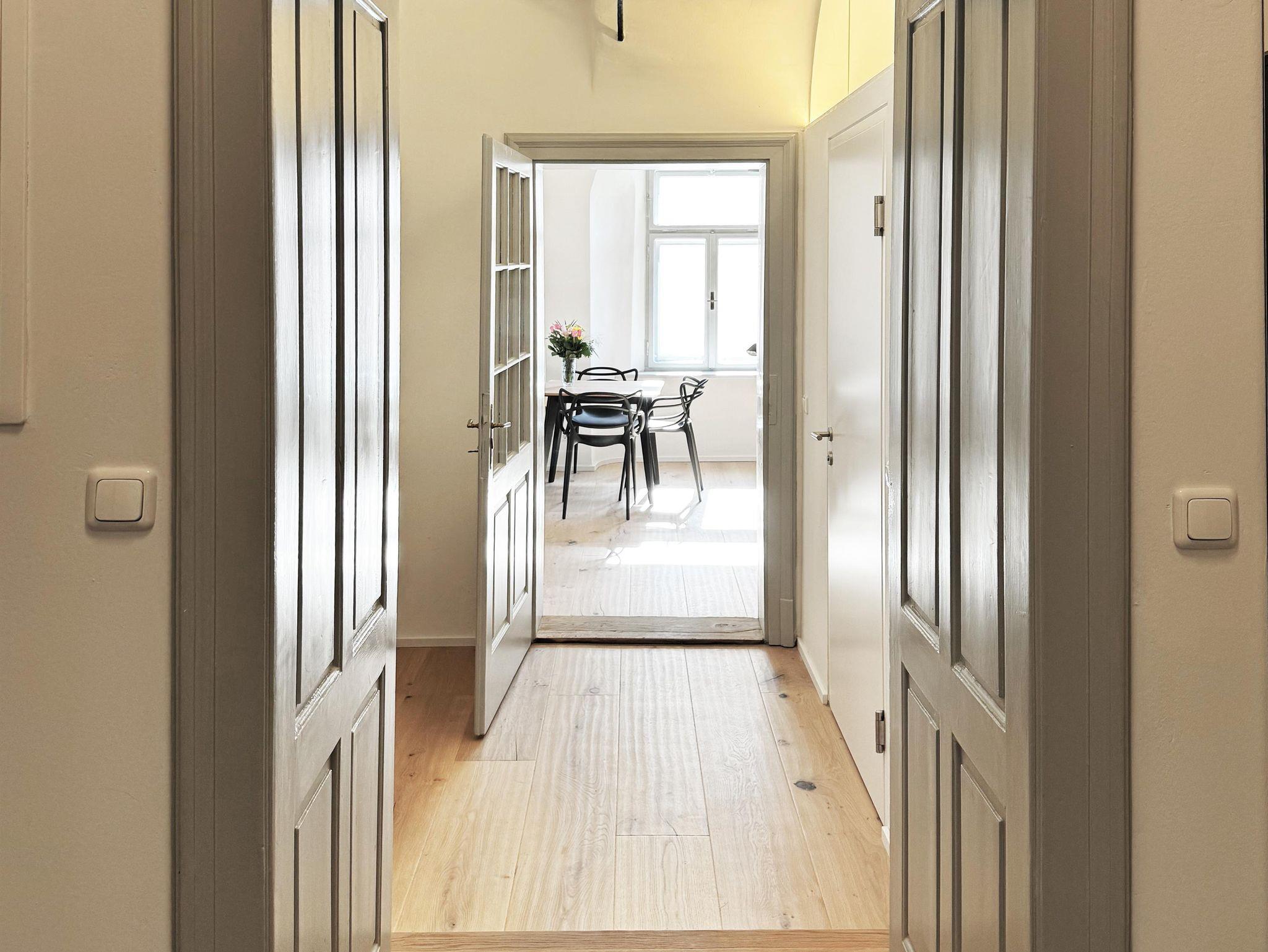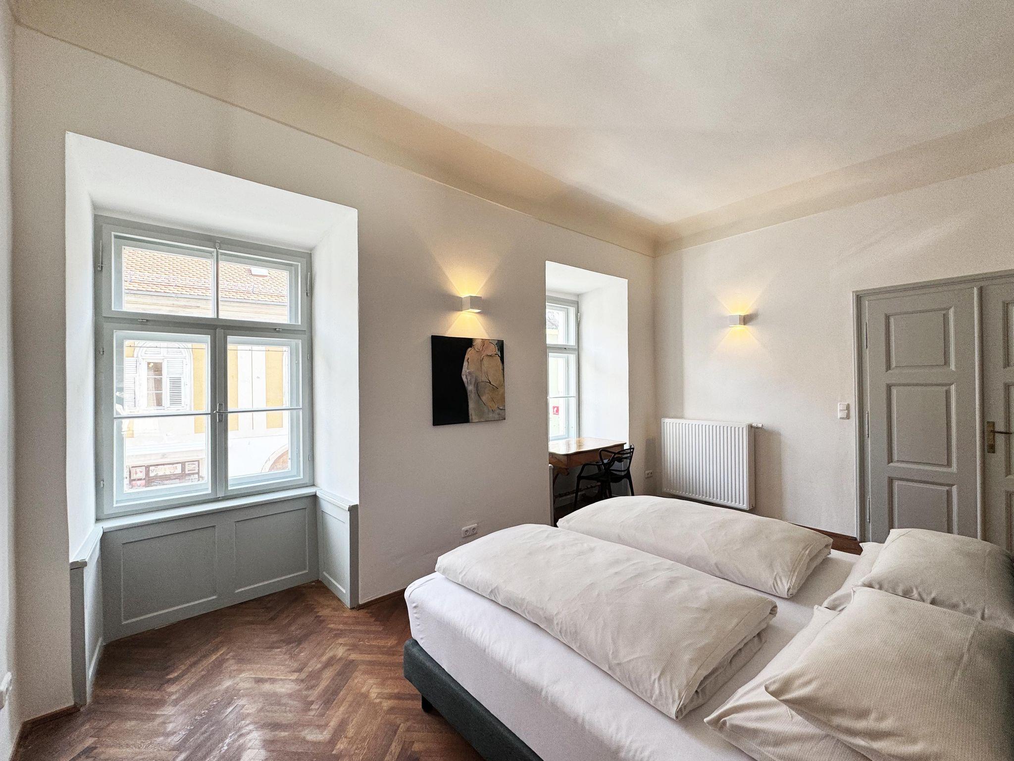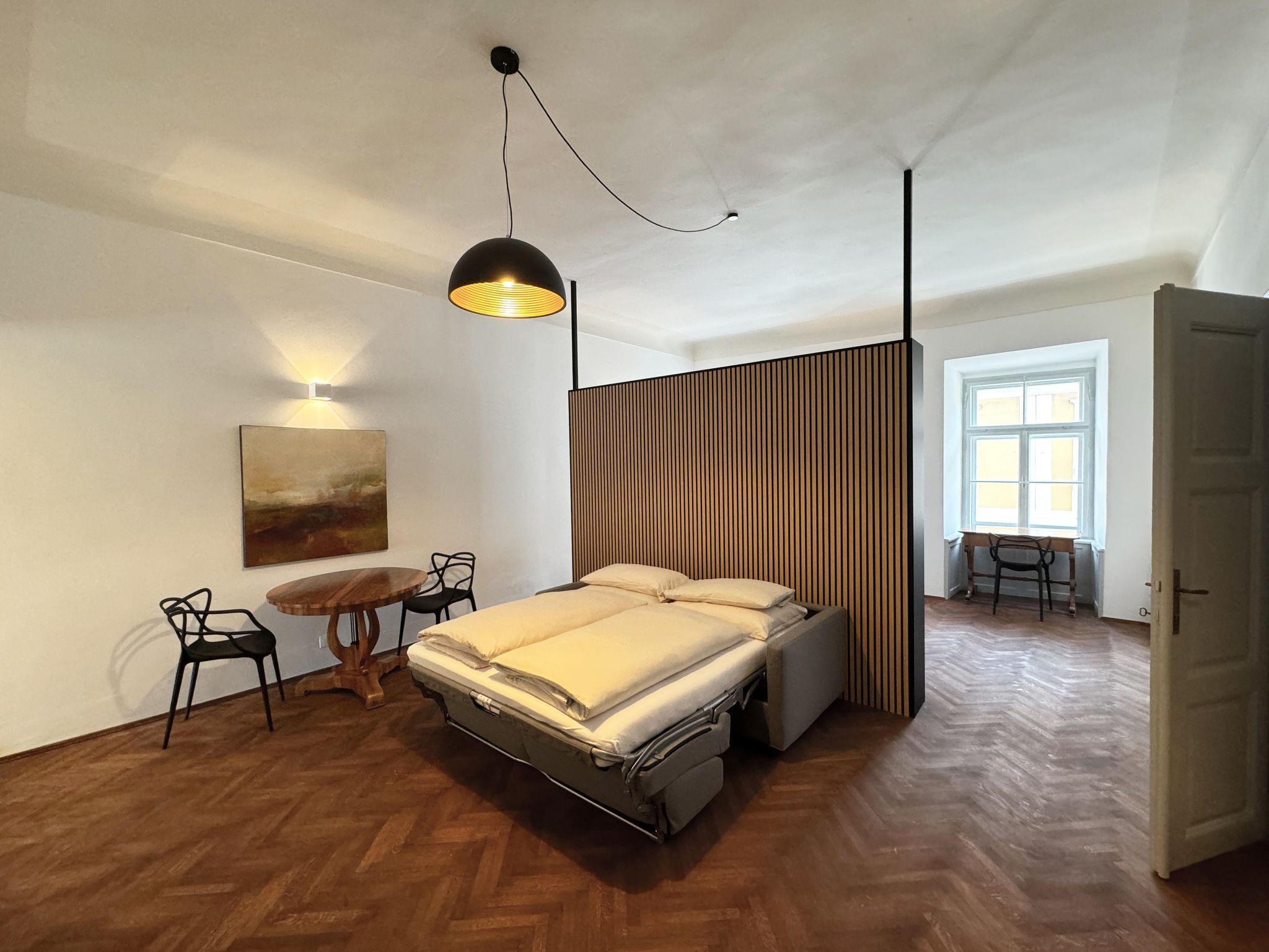 Willkommen in unserer Biedermeier Loft Suite, einer harmonischen Mischung aus historischem Charme und modernem Komfort. Diese luxuriöse Wohnung ist ideal für Paare oder Alleinreisende, die ein stilvolles Ambiente und eine zentrale Lage zu schätzen wissen. Sie können ihr Auto im Innenhof parken.