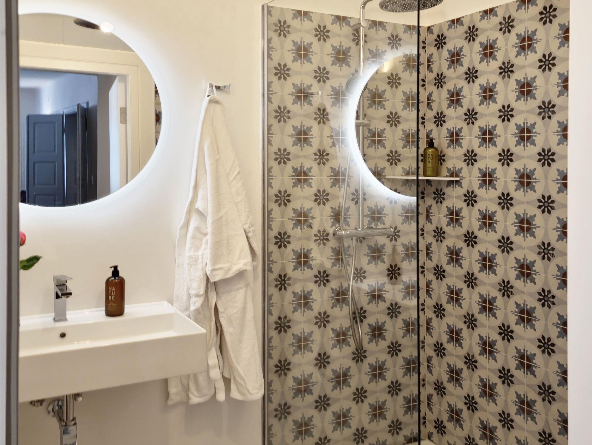 • Modernes Badezimmer mit Regendusche und hochwertigen Pflegeprodukten