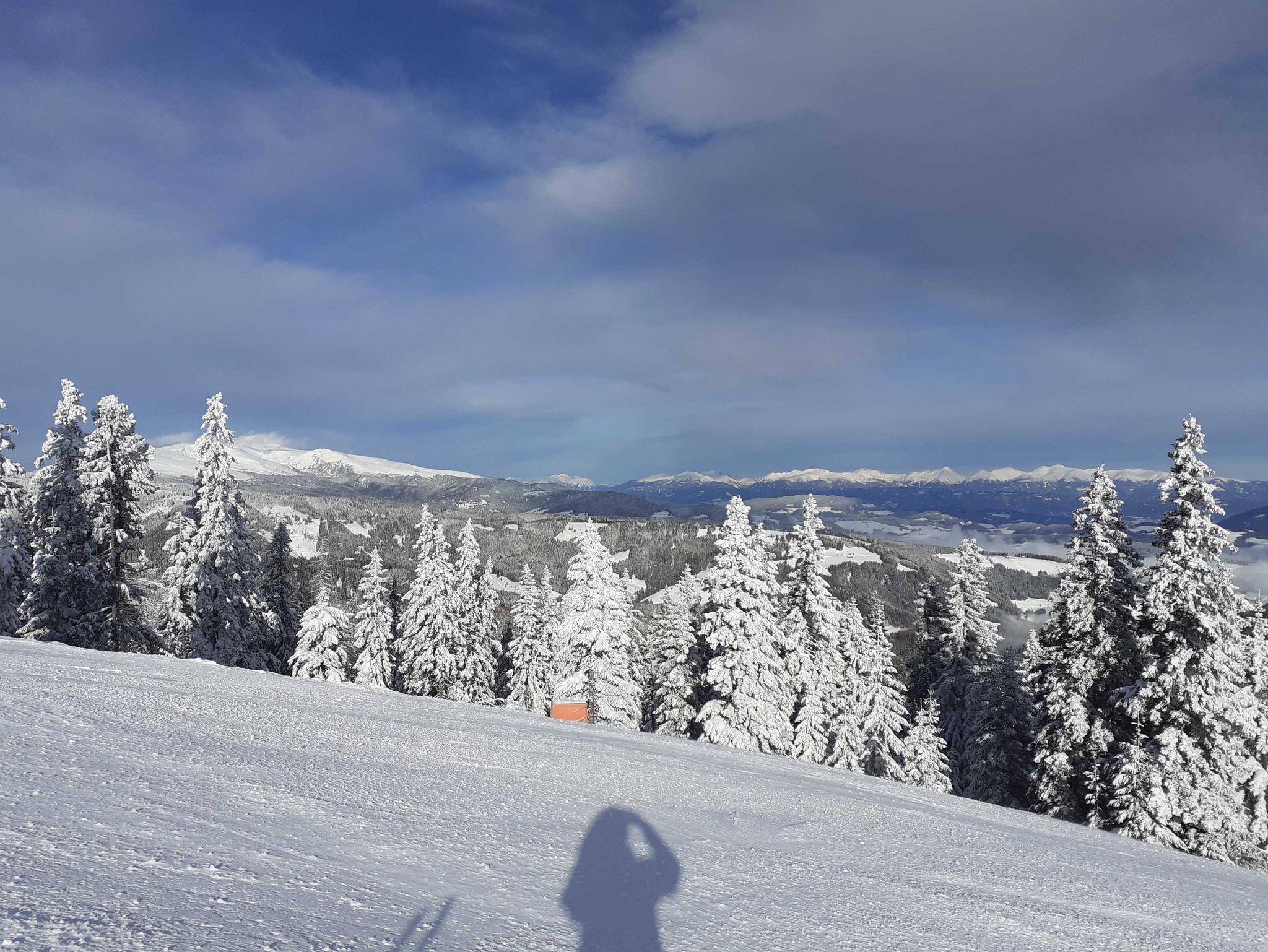 Auf 1500 m Höhe haben Sie von unserer großen Terrasse eine herrliche Aussicht auf das Lavanttal, die Packalpe, die Koralpe, die Saualpe bis zu den Karawanken.