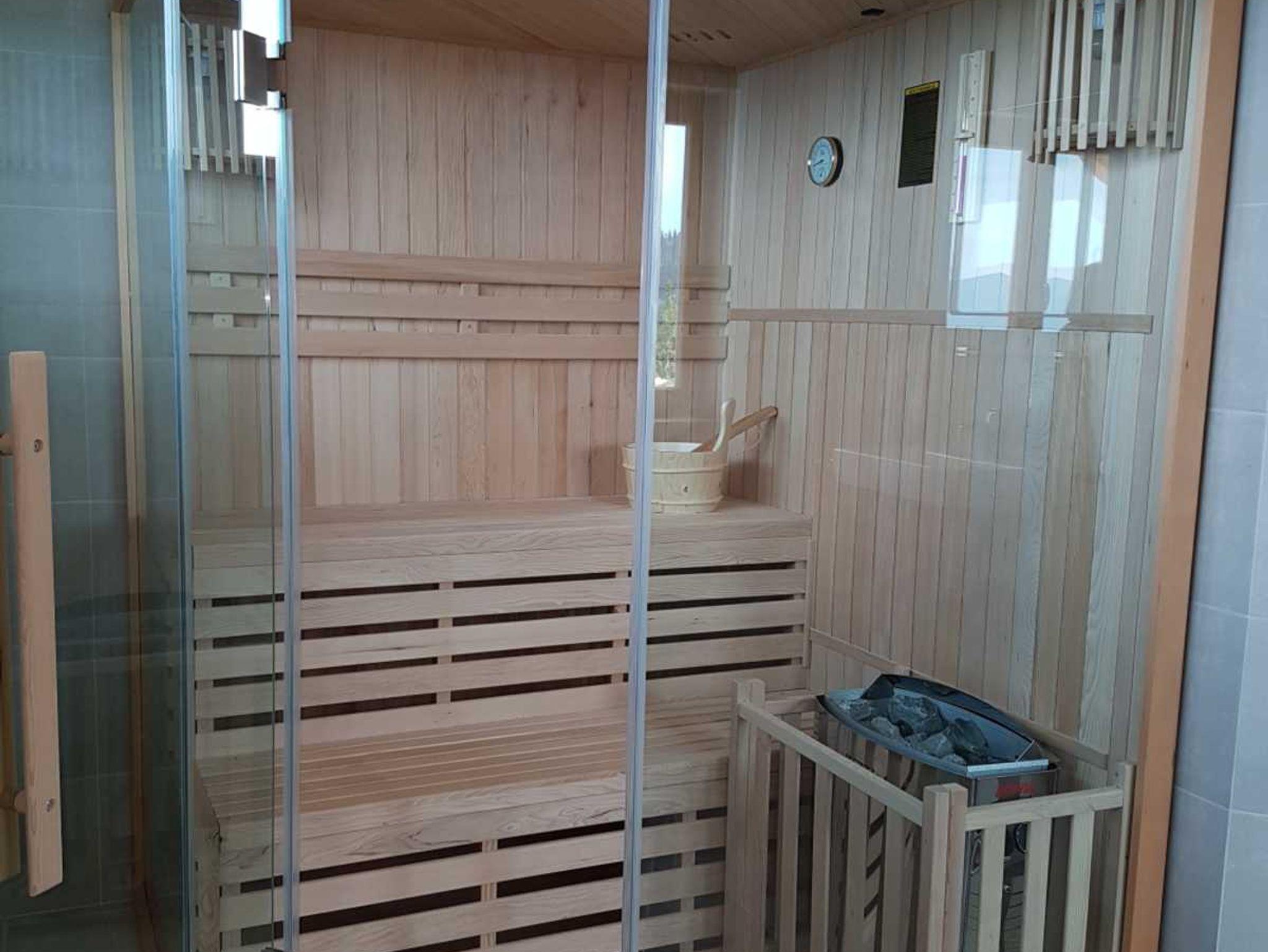 Wir bieten Ihnen eine gehobene Ausstattung mit finnischer Sauna, 50 Zoll Fernseher von Samsung und ausreichend Platz für bis zu 8 Personen.