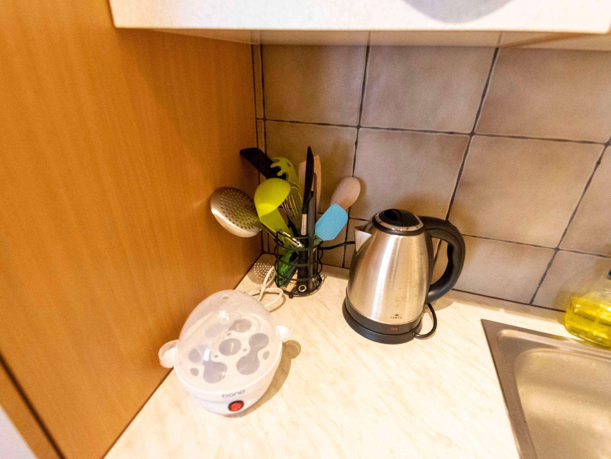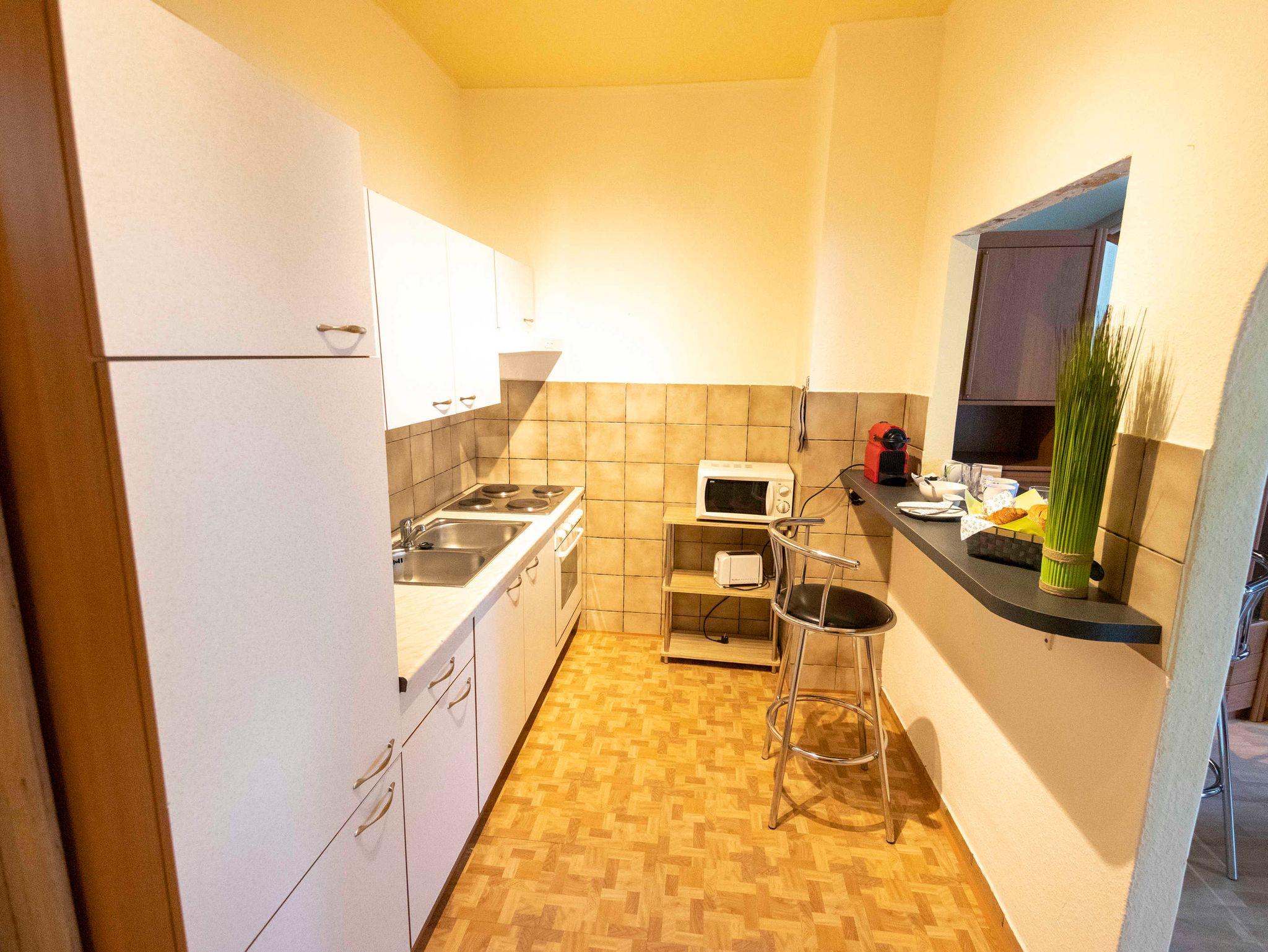 Die Küche ist komplett ausgestattet mit Herd, Backofen, Kühlschrank, Mikrowelle, Nespresso-Kaffeemaschine, Wasserkocher, Eierkocher und natürlich sämtlichem Geschirr, Weingläsern, Töpfen und Pfannen.
