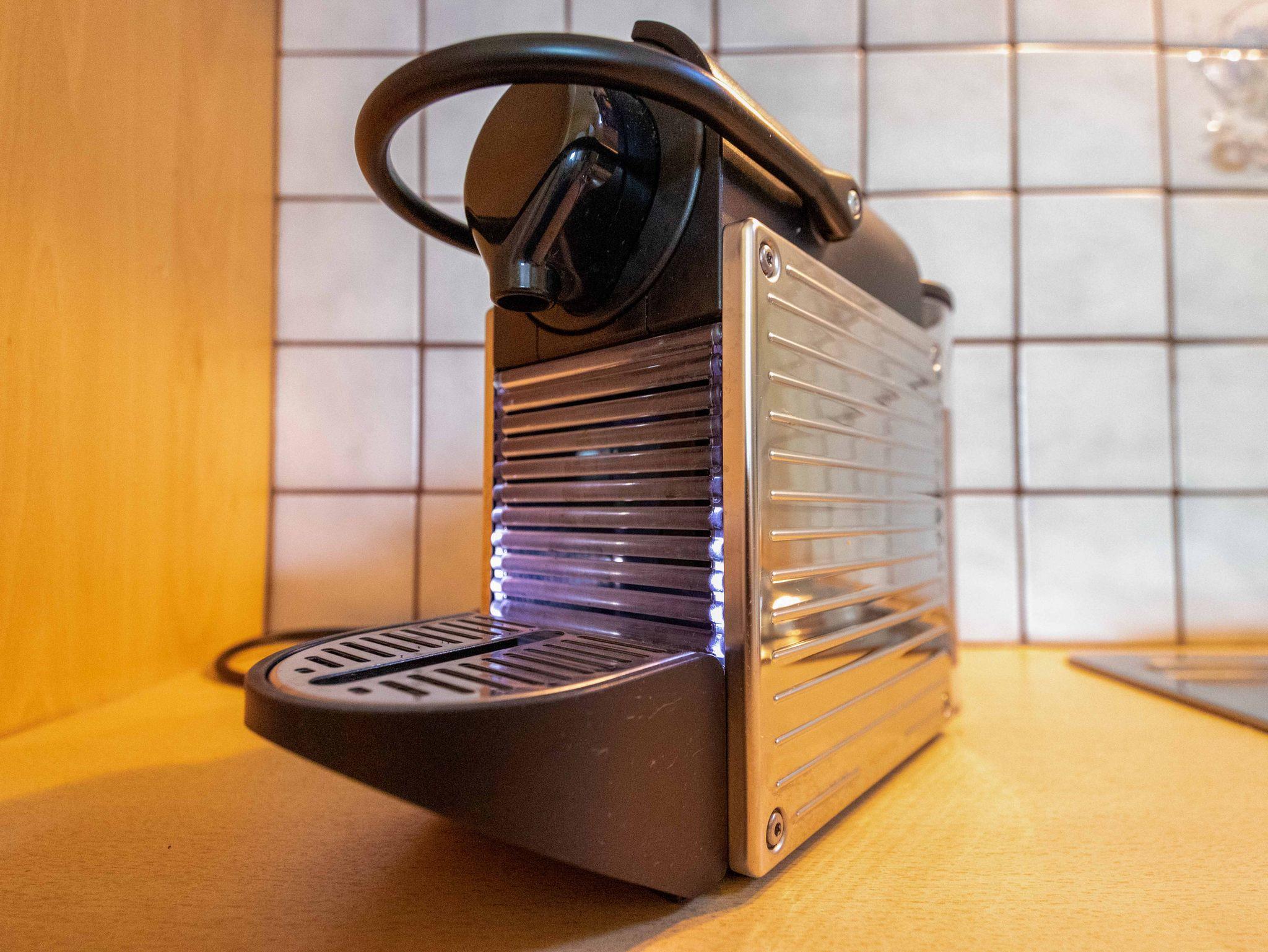 Die Küche ist komplett ausgestattet mit Herd, Backofen, Kühlschrank, Geschirrspüler, Mikrowelle, Nespresso-Kaffeemaschine, Wasserkocher, Eierkocher und natürlich sämtlichem Geschirr, Weingläsern, Töpfen und Pfannen. Weiters ist hier auch eine Waschmaschine vorhanden.