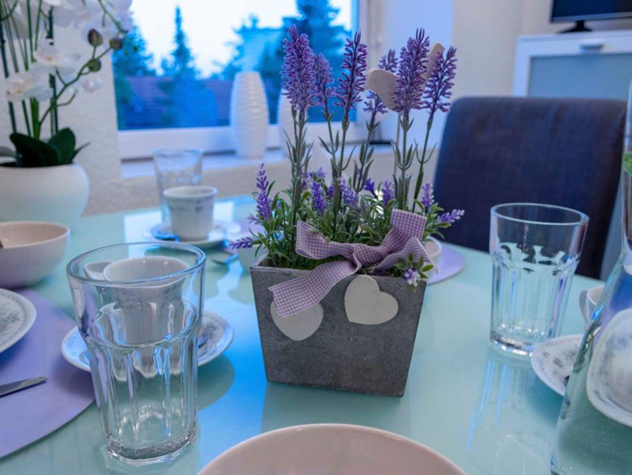 Der Wohnbereich ist mit einer gemütlichen ausziehbaren Couch ausgestattet. Der Essbereich bietet Platz für bis zu 6 Personen. Der Fernseher verfügt über Satelliten TV. Im Schlafzimmer befindet sich ein großes Doppelbett (1,80 x 2 m) und ein großer Spiegelschrank. Bettwäsche ist vorhanden. Die Küche ist komplett ausgestattet mit Herd, Backofen, Kühlschrank, Geschirrspüler, Mikrowelle, Nespresso-Kaffeemaschine, Wasserkocher, Eierkocher und natürlich sämtlichem Geschirr, Weingläsern, Töpfen und Pfannen. Weiters ist hier auch eine Waschmaschine vorhanden. Im Bad mit Dusche werden Handtücher, Shampoo und Duschgel zur Verfügung gestellt. Auch ein ruhiger, uneinsichtiger Garten ladet zum Verweilen ein.