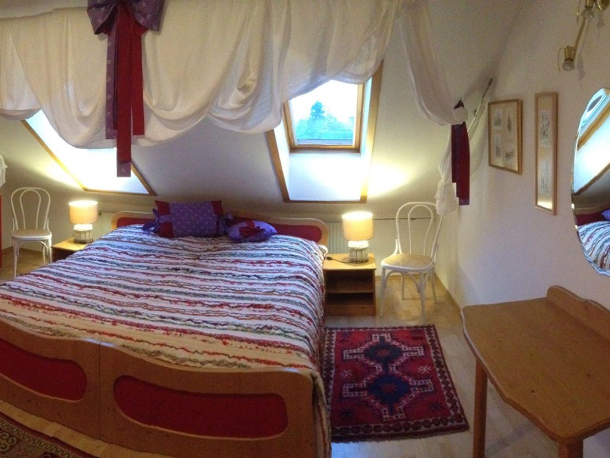 Über den Dächern von Bad Vöslau befindet sich das großzügig angelegte Appartement Loft. Über eine historische Steintreppe betritt man das großzügige Wohnzimmer mit seiner Bibliothek. Das Loft ist ideal für größere Familien, die ausreichend Platz schätzen. Neben dem großen Wohn- und Speisezimmer gibt es 2 Doppelbettzimmer und 2 Einzelzimmer. Es gibt zwei Badezimmer mit jeweils einer Dusche. In einem Badezimmer gibt es ein WC, das zweite WC ist separat. Zusätzlich finden Sie in einem der zwei Badezimmer eine Waschmaschine und einen Wäschetrockner. Die Küche ist vollwertig und reichlich ausgestattet. In der Küche befindet sich ein E-Herd mit Backrohr, Mikrowelle, Geschirrspüler, Kühlschrank und separatem Tiefkühlschrank, Kaffeemaschine, Wasserkocher, Toaster und einen kleinen Aufbacken. Bügelbrett und Bügeleisen sind vorhanden. WLAN gratis, PKW-Parkmöglichkeit vor dem Haus.