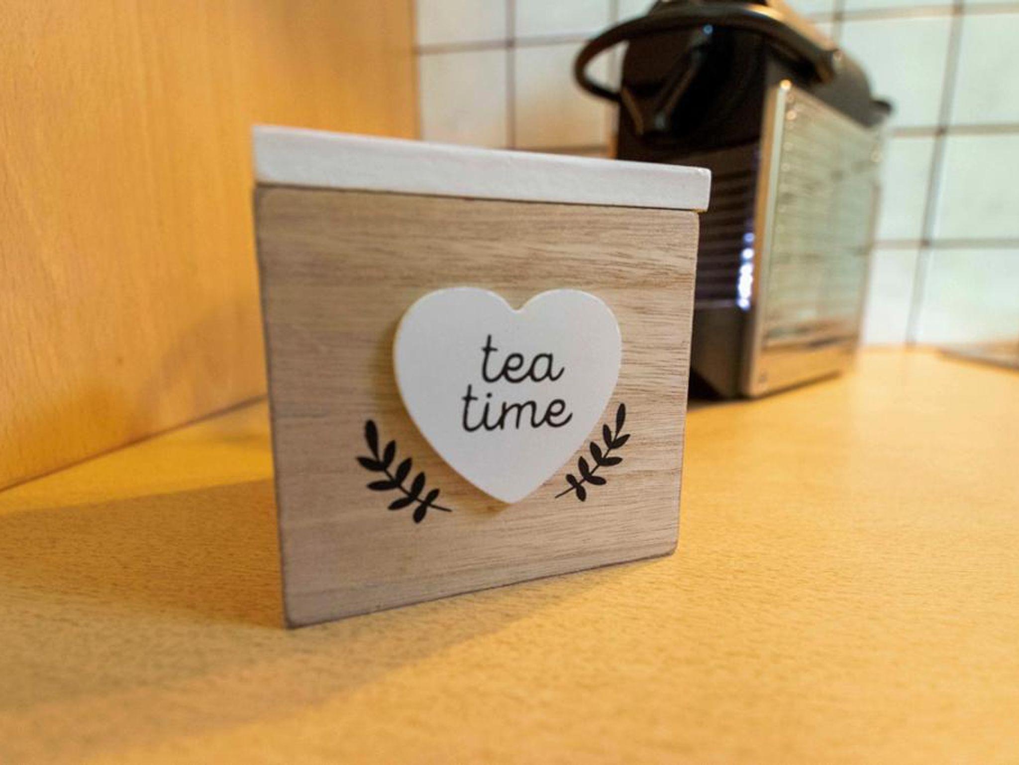 Das im Landhausstil eingerichtete Studio im Erdgeschoss verfügt über einen großen Raum mit Ess-, Wohn- und Schlafbereich und bietet Platz für zwei bis drei Personen. Weiters heißt sie eine mit zahlreichen Küchengeräten ausgestattete Küche, die vom Vorraum offen zugänglich ist, willkommen.