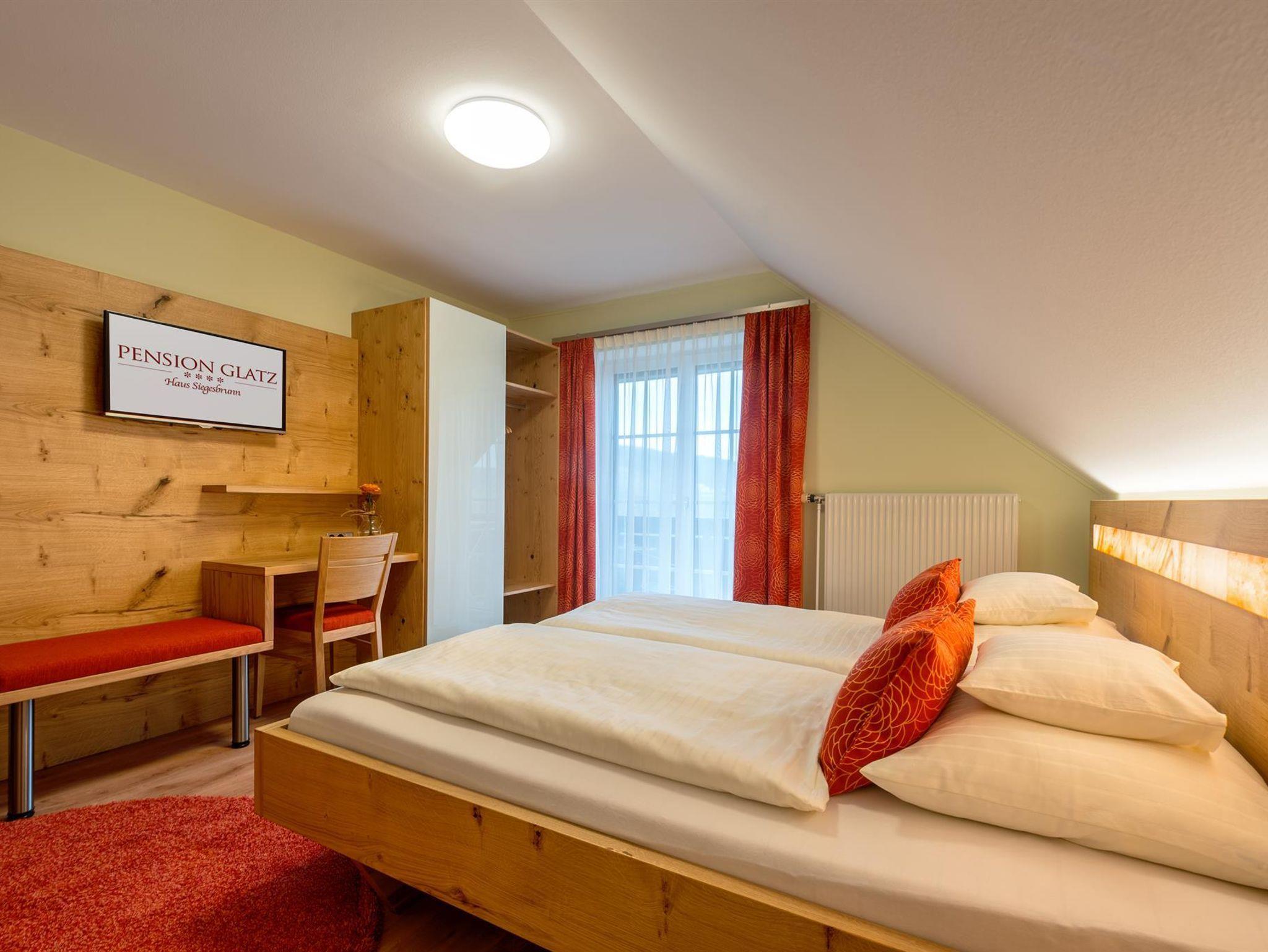Vier Kristalle und ganz viel Herzlichkeit! Die Pension Glatz liegt zwischen Heiltherme und dem Ortskern der Marktgemeinde Bad Waltersdorf. Dort, wo die besten Winzer ihre Weine keltern und die Landwirte sich um Obst und Vieh sorgen. Im Hause Glatz wohnt es sich nicht nur gemütlich sondern auch besonders gesund. In aller Behaglichkeit kann man sich in der Pension Glatz ein paar Tage dem ungestörten Nichtstun hingeben oder aktiv sein, durch die Vielzahl der angebotenen Freizeitmöglichkeiten. Entfernung zur Heiltherme Bad Waltersdorf ca. 900 m. Pension Glatz Haus Siegesbrunn freut sich auf Sie.