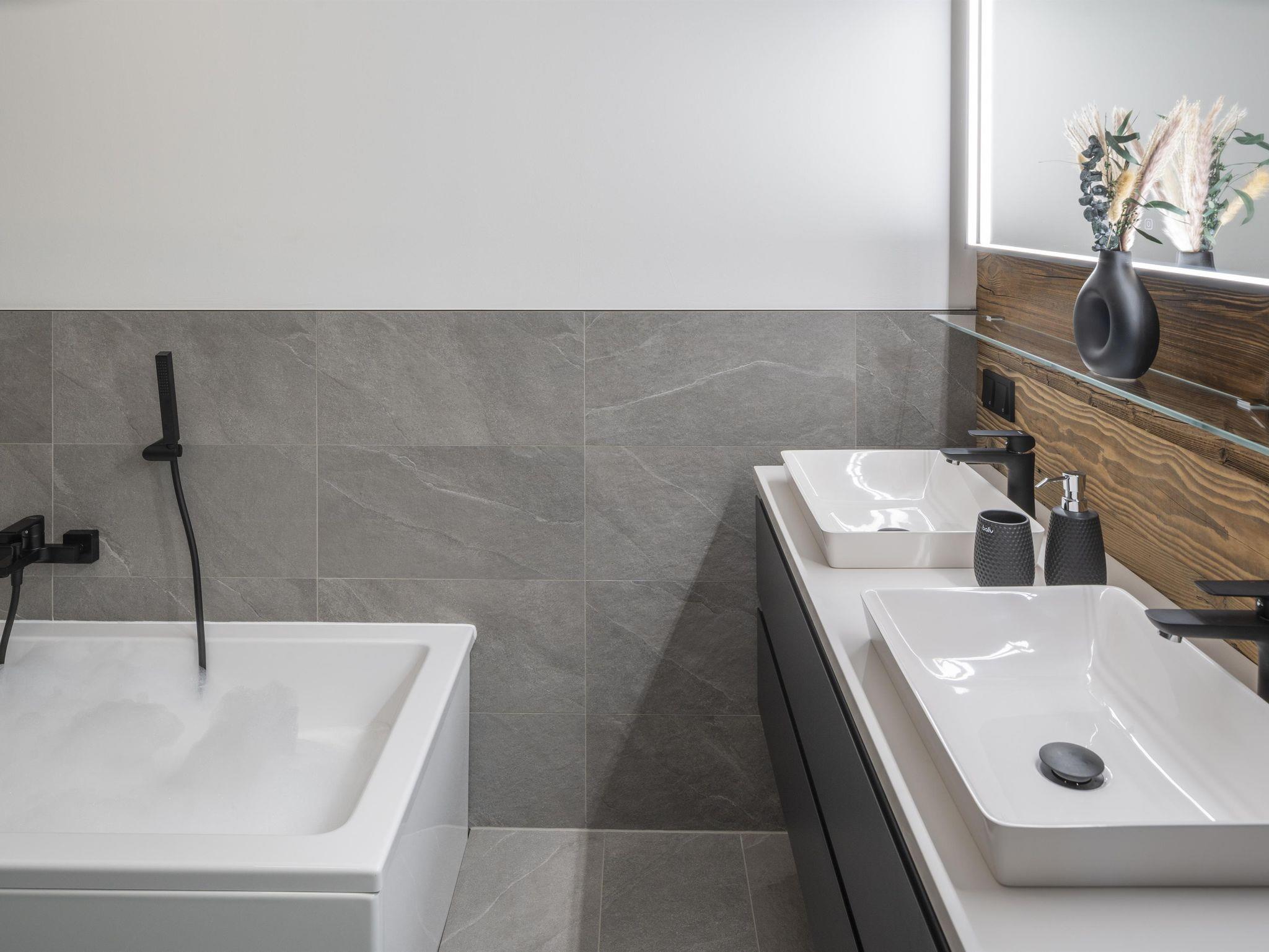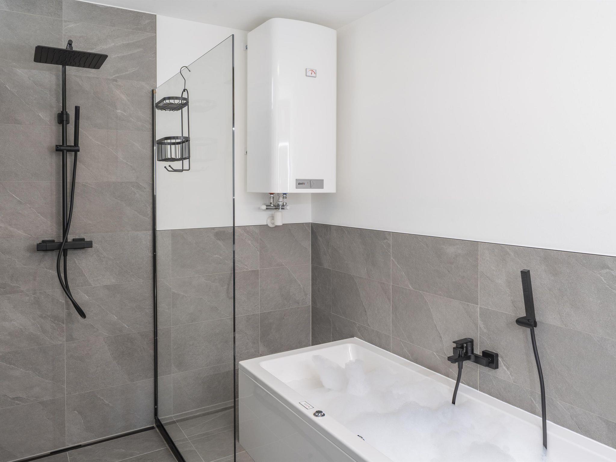 • Badezimmer mit Dusche und Whirlpoolbadewanne