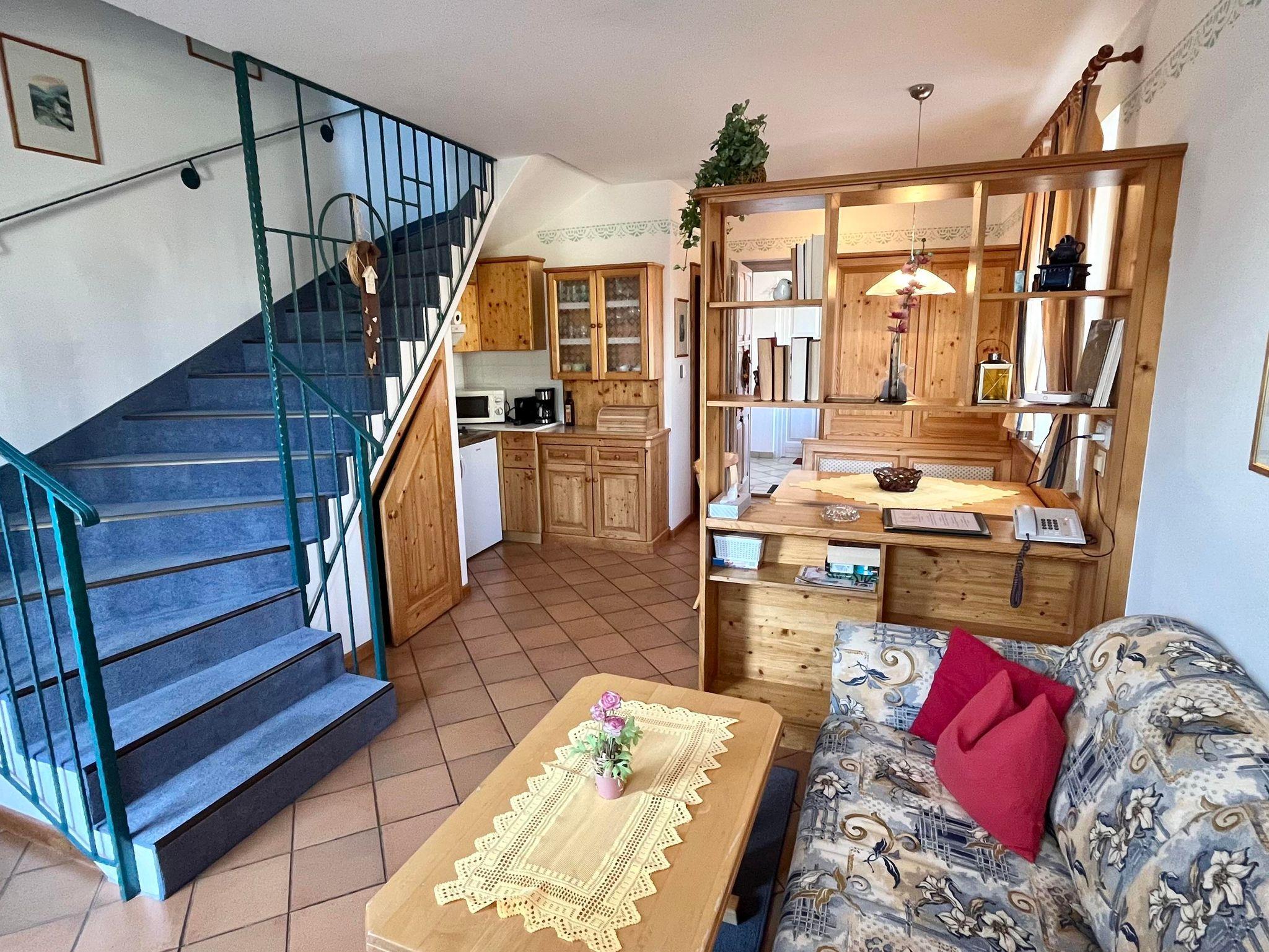 Im Inneren wartet das Apartment mit einer durchdachten Ausstattung auf Sie: Der Wohn-Schlafraum im Erdgeschoss, mit einer ausziehbaren Doppelbettcouch und Fußbodenheizung, verleiht dem Raum eine warme, einladende Atmosphäre. Eine gut ausgerüstete Kochnische, inklusive Herd, Kühlschrank und Kleinbackofen, ermöglicht die Zubereitung kleiner Gerichte. Im Obergeschoss finden Sie ein gemütliches Schlafzimmer mit TV, ein voll ausgestattetes Badezimmer, sowie zusätzliche Annehmlichkeiten wie Bettwäsche, Handtücher, Kabel-TV und kostenloses WLAN, die Ihren Aufenthalt komfortabel gestalten.