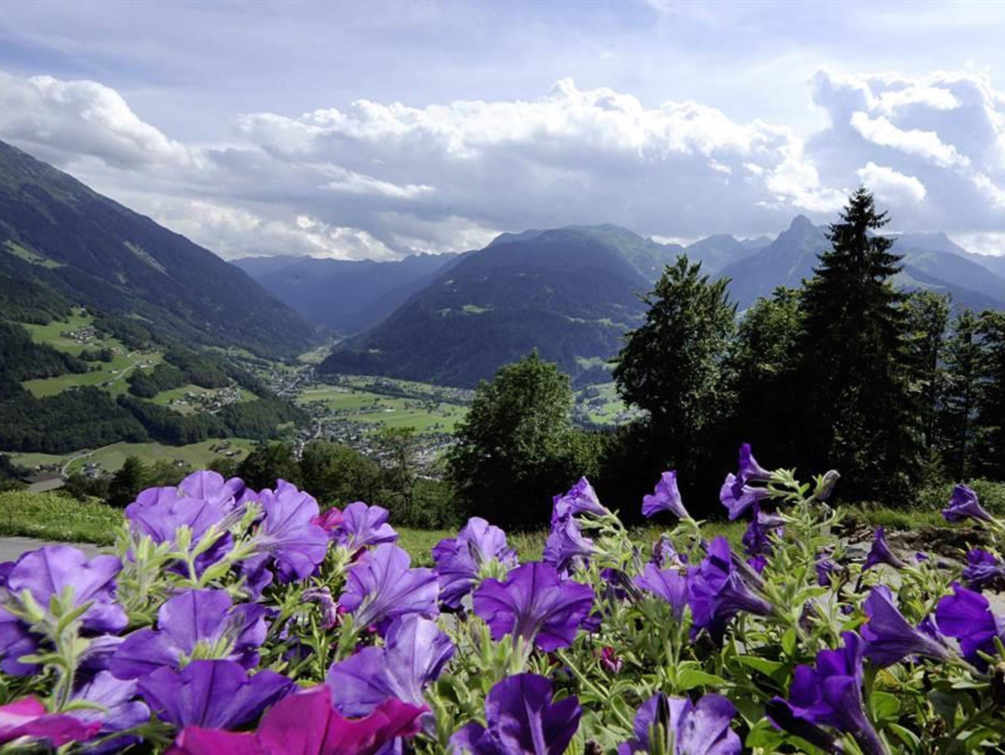 Urlaub mit fantastischem Panoramablick am Sonnenbalkon Bartholomäberg. Unsere 60 m²-Wohnung liegt oberhalb von Schruns, nur 250 m vom Ortszentrum (sehenswerte Barockkirche, Dorfladen, Spielplatz, Restaurant) entfernt. Sie bietet zwei separate Schlafzimmer, ein Badezimmer, eine komplett ausgestattete Wohnküche und Balkon mit Mehrblick. Selbstverständlich vorhanden: Geschirrspüler, Herd, Backrohr, Mikrowelle, Flachbild-TV, DVD-Player und Filme, gratis W-Lan, (Ski-)Schuhtrockner, Safe, Hand- und Badetücher, Seife, Fön, u. v. m. Die Sommer- und Winterwanderwege sowie Schneeschuhrouten beginnen 150 m neben dem Haus. Zu den Bergbahnen gelangt man in wenigen Autominuten oder bequem mit dem Bus. Kurzaufenthalte möglich. Bei Buchung von mindestens 6 Nächten gibt's die österreichische Autobahnvignette gratis dazu.