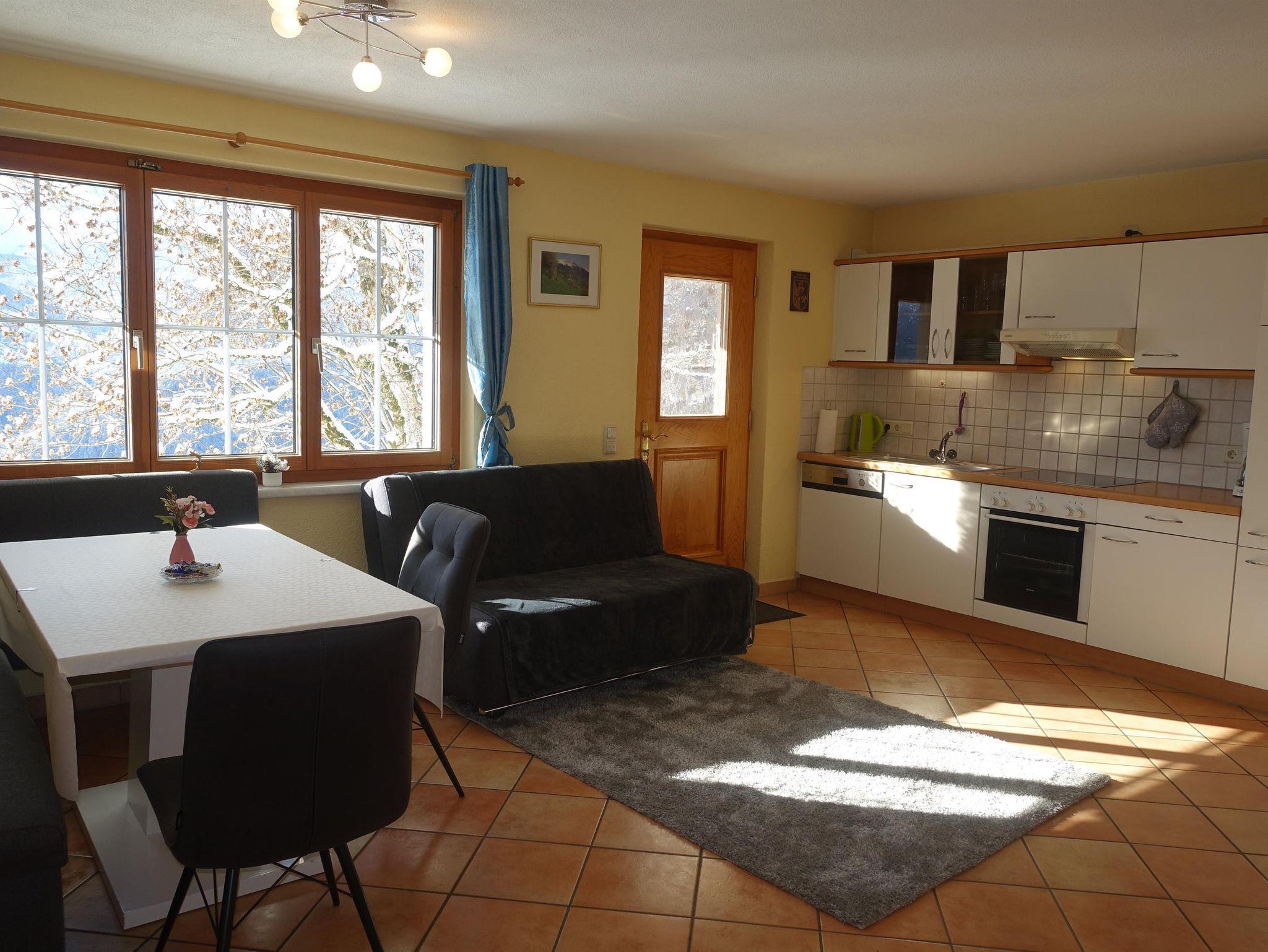 Bartholomäberg liegt 4 km. Nordwestlich von Schruns. In 1100 m Höhe gelegen, mit prächtiger Aussicht. Die Wohnung befindet sich im Erdgeschoss und hat einen eigenen Eingang. Die Einrichtung ist gemütlich. Mit kleiner Terrasse Richtung Süden.