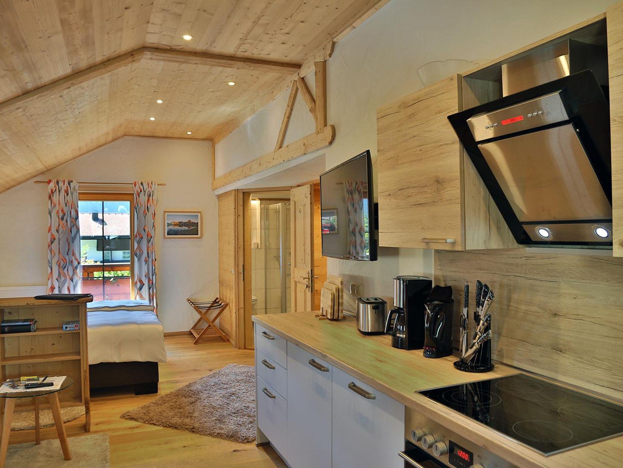 Moderne, neue Ferienwohnung für 2 Personen mit Balkon. Schönes Schlafzimmer mit großem Boxspringbett. Gemütliche Wohnküche mit Couch, HD Sat-TV und Playstation. Moderne Küche mit Kühlschrank, Gefrierfach, Mikrowelle, Backofen, Ceranfeld, Geschirrspüler und großzügigem Esstisch. Natürlich können auch alle anderen Einrichtungen unseres Hauses benutzt werden.