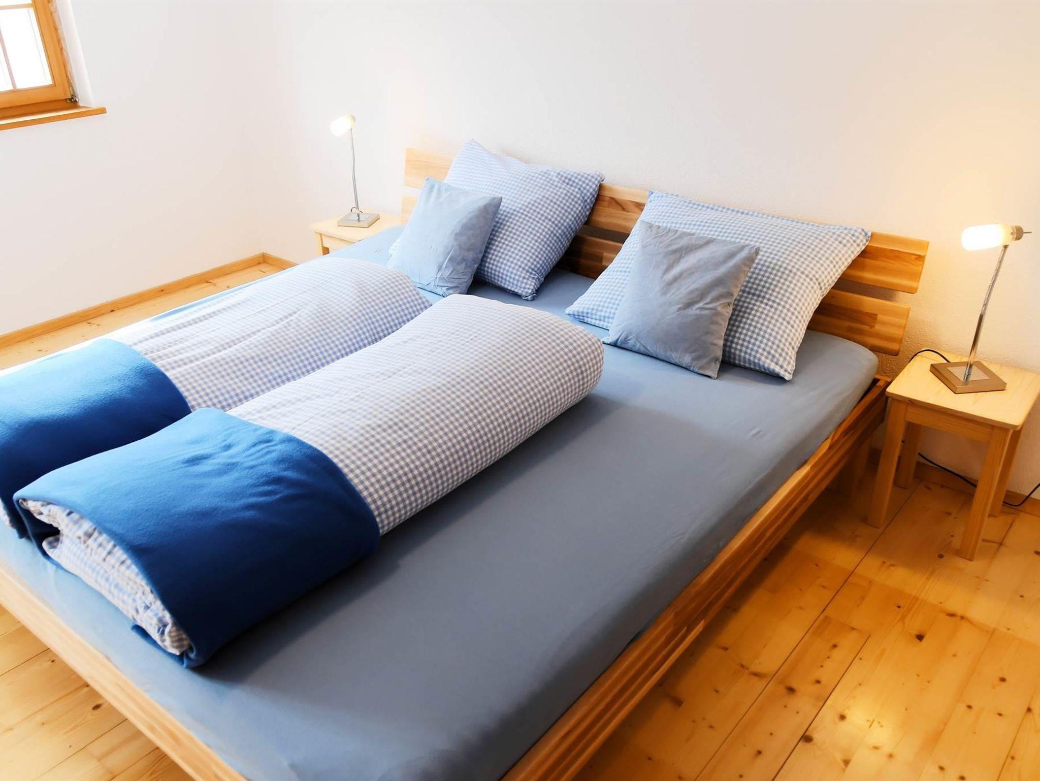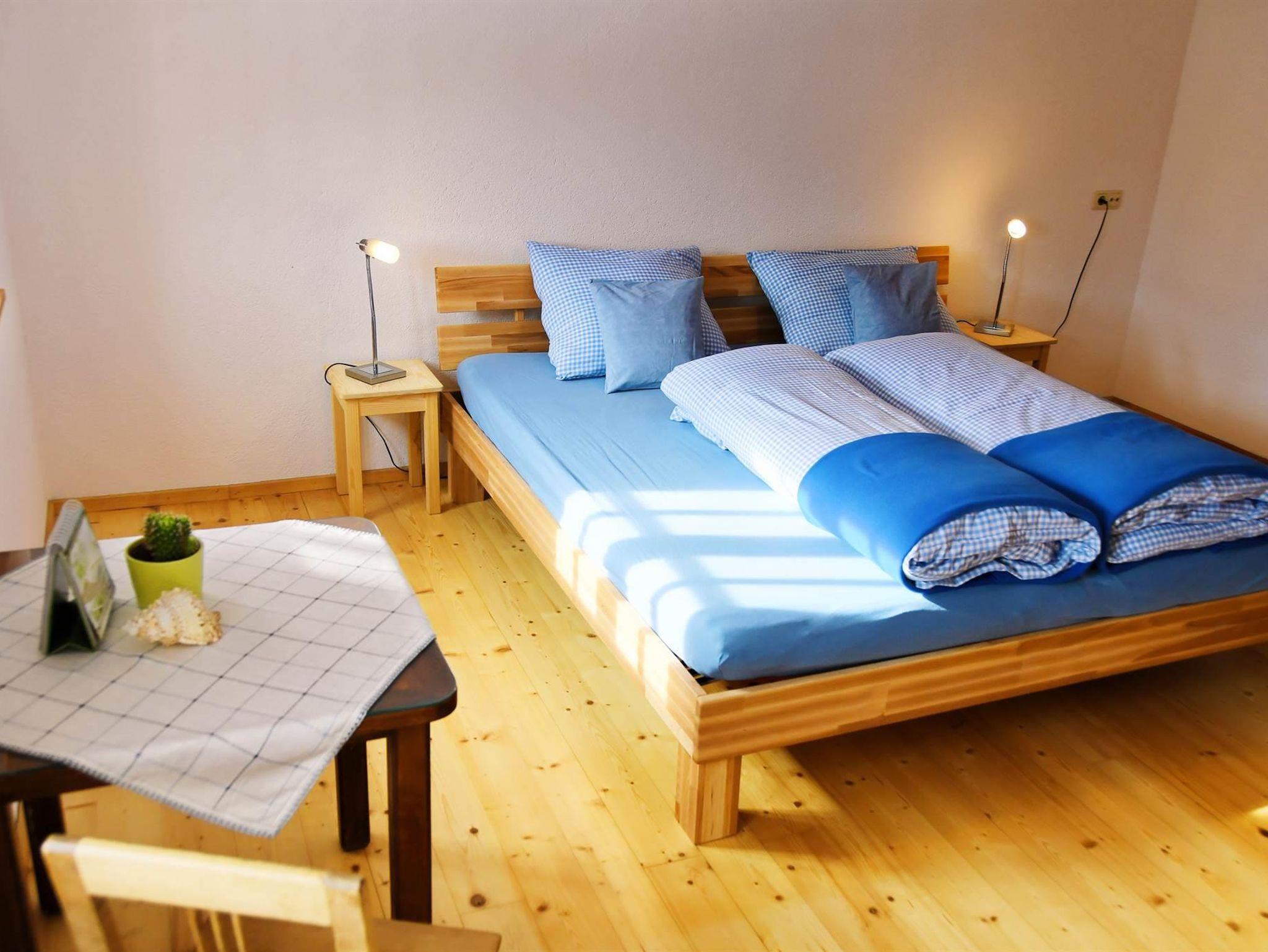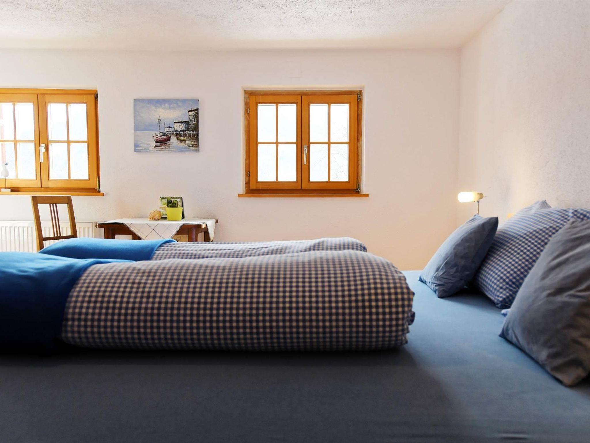 ?Im Parterre finden Sie eine geräumige und komfortable Ferienwohnung. Die Einrichtung besteht aus besonderen Holzmöbeln, ist sehr gemütlich und voll Atmosphäre. Es gibt drei Schlafzimmer (eines davon im Untergeschoss) und ein geräumiges Wohnzimmer.