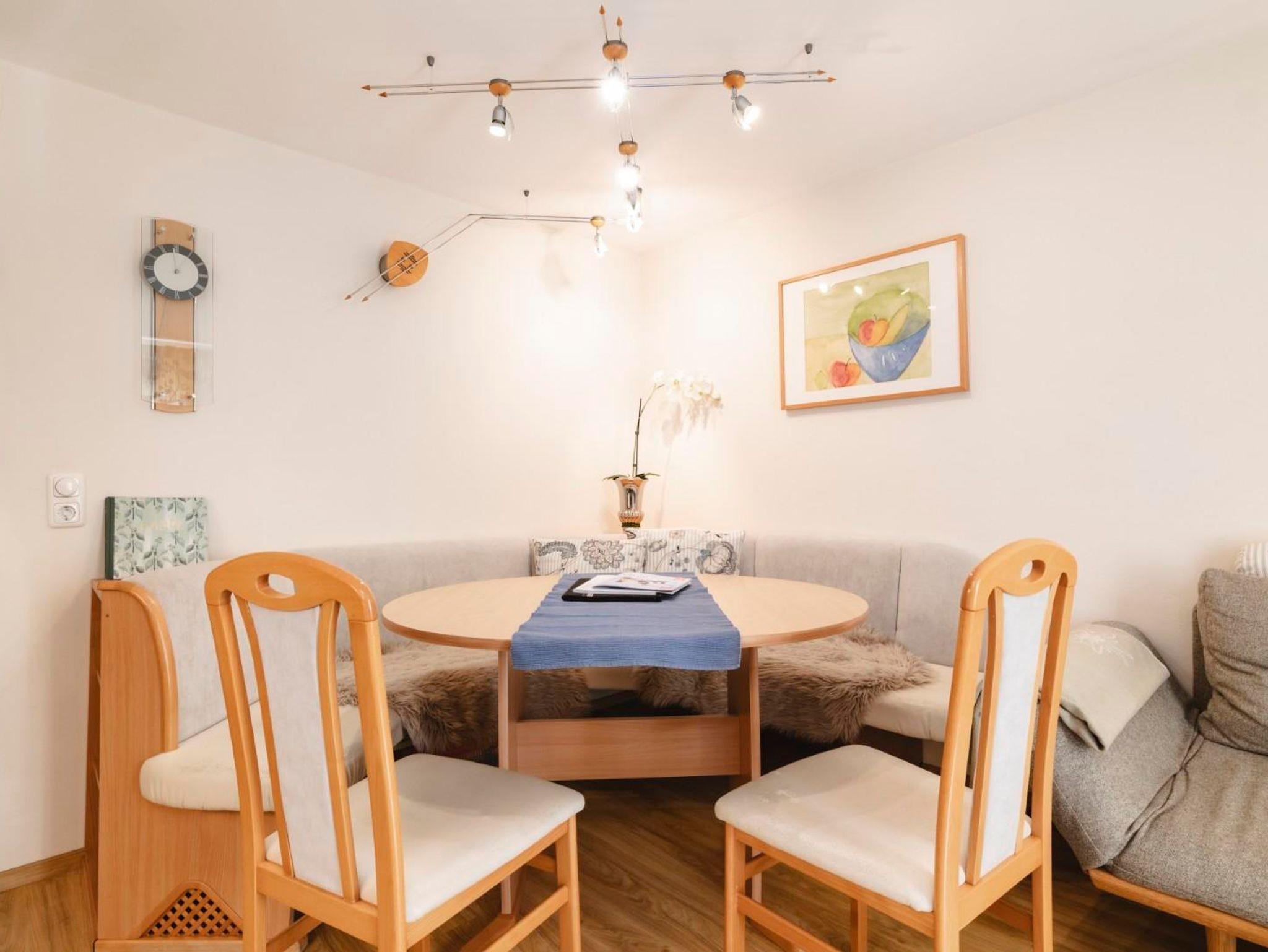 Die Wohnung ist ca. 68m² groß, besteht aus Bad, Wohnzimmer mit Essecke, Couch und zwei getrennten Schlafzimmern sowie einer Terrasse und sehr guter Ausstattung: Parkplatz, Terrasse, Ceranfeldherd, Backofen, Herd, Gefrierfach, Geschirrhandtücher, Geschirrspüler, Filter- und Tabs-Kaffeemaschine, Kühlschrank, Mikrowelle, Toaster, Wasserkocher, Handtücher, WLAN, TV mit Radio, Beauty-Infrarotkabine.