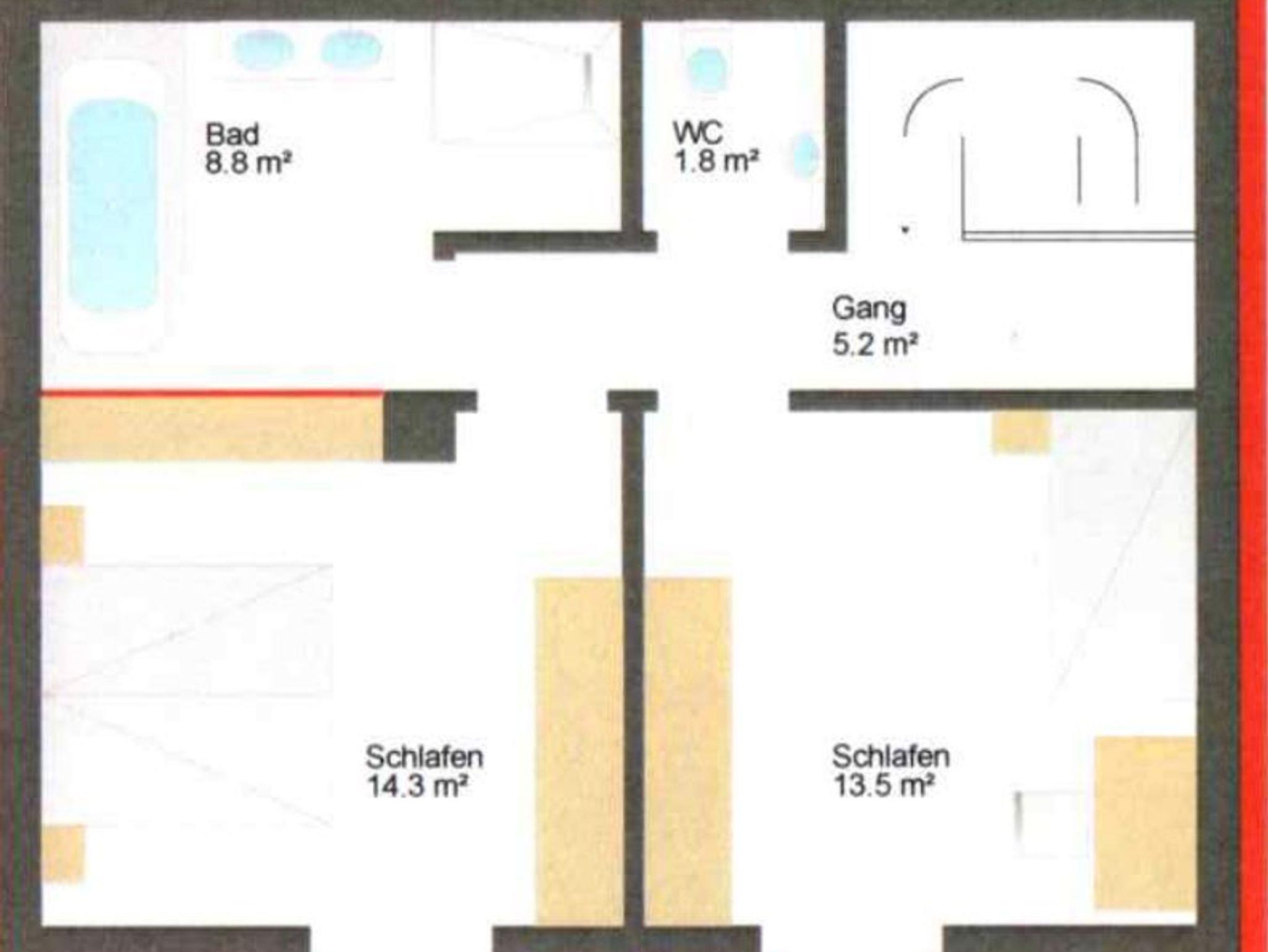 Unser Haus verteilt sich auf drei Schlafzimmer, ein Badezimmer mit Dusche & Badewanne, zwei separate WC, ein Wohnzimmer und eine vollausgestattete Küche mit Essbereich.
