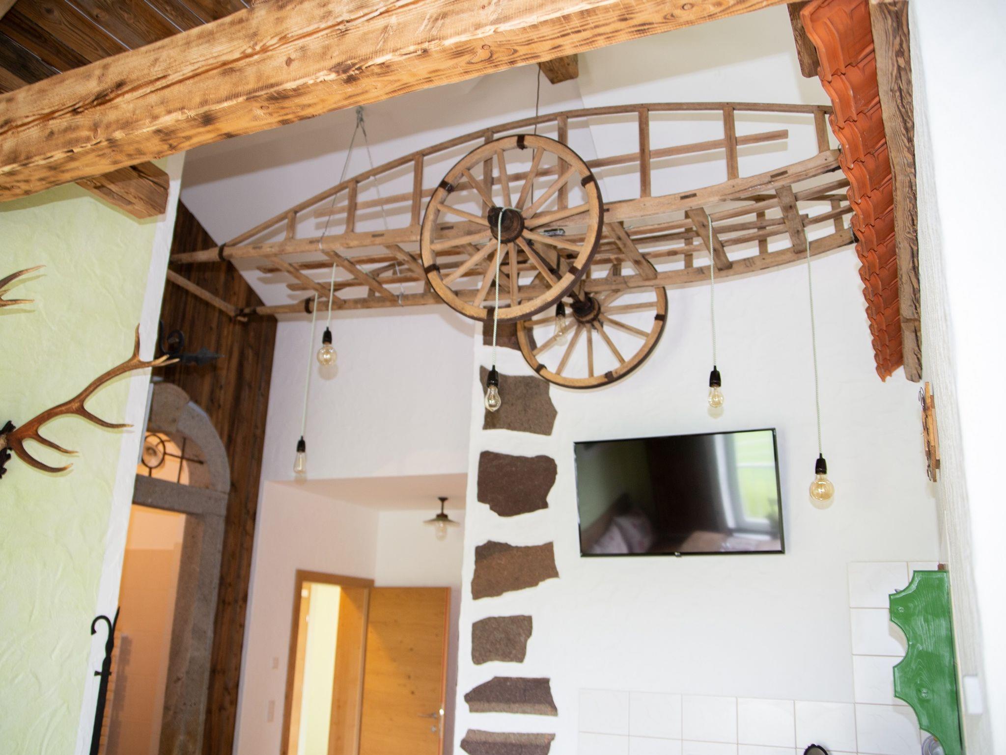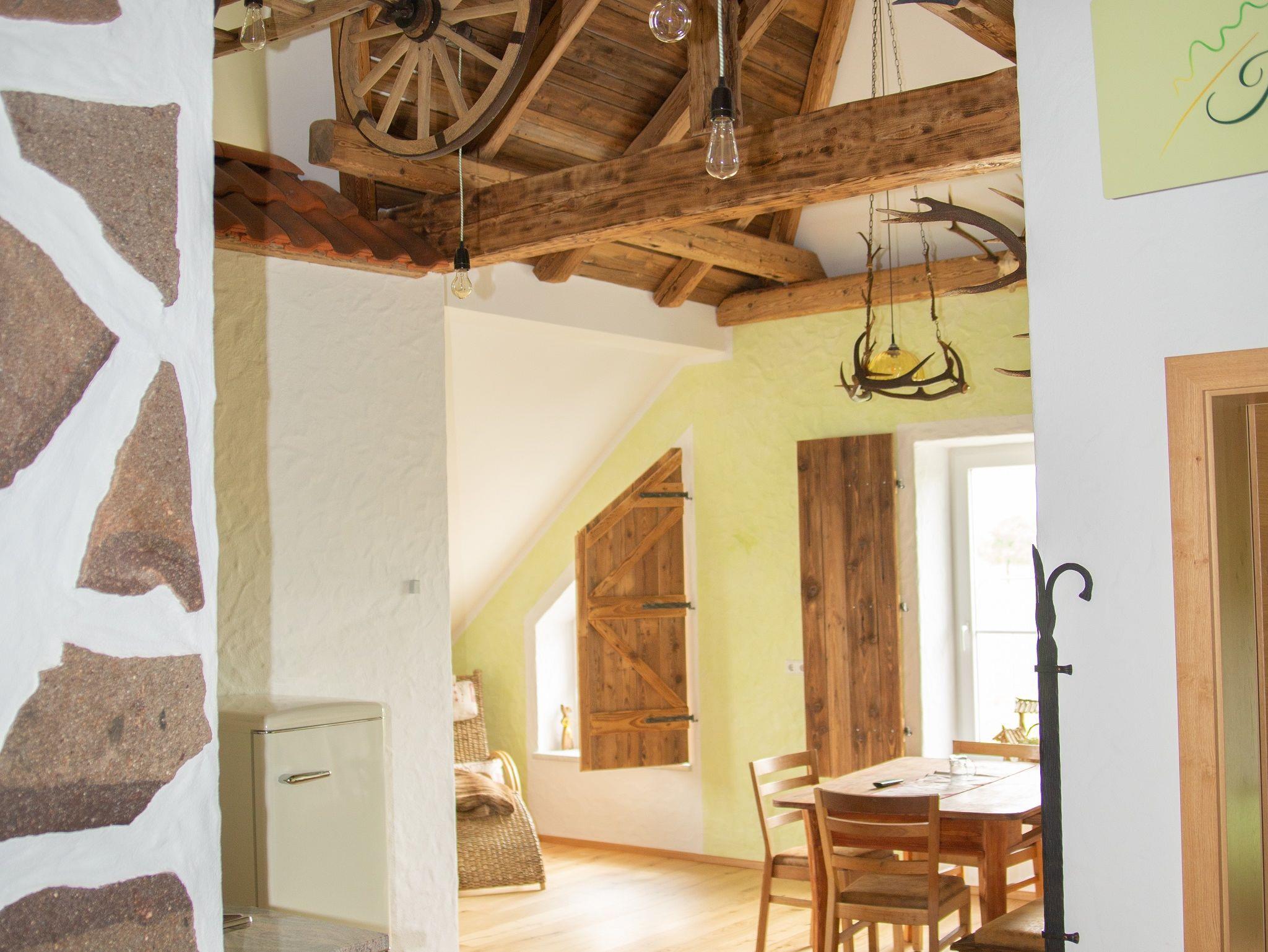 Diese Ferienwohnung ist ausgestattet mit 2 Fernsehern sowie einer Küchenzeile mit uriger Eckbank. Die Duschhalle überrascht mit einer gemütlichen Bank und einer Fass-Regendusche. Das WC ist separat. Für eure Kinder gibt es ein eigenes Kinderzimmer.