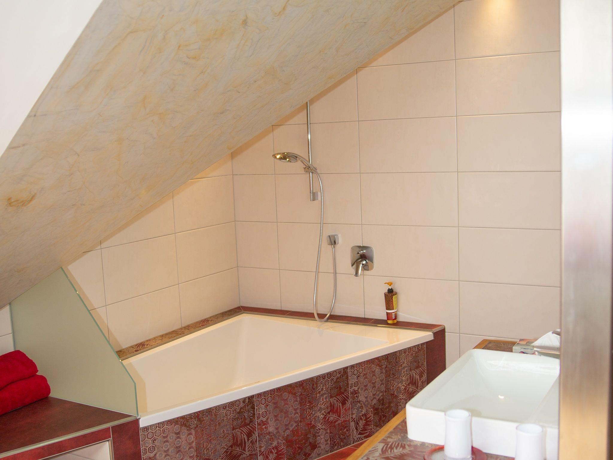 Das klimatisierte, 38m³ große Zimmer lädt zu einem gemütlichen, romantischen Aufenthalt ein. In der großzügigen Doppelbadewanne könnt Ihr den Tag ausklingen lassen. Ein Besonderheit ist die individuell steuerbare Beleuchtung des Zimmers. Vom Sofa aus könnt Ihr den Sternenhimmel beobachten.