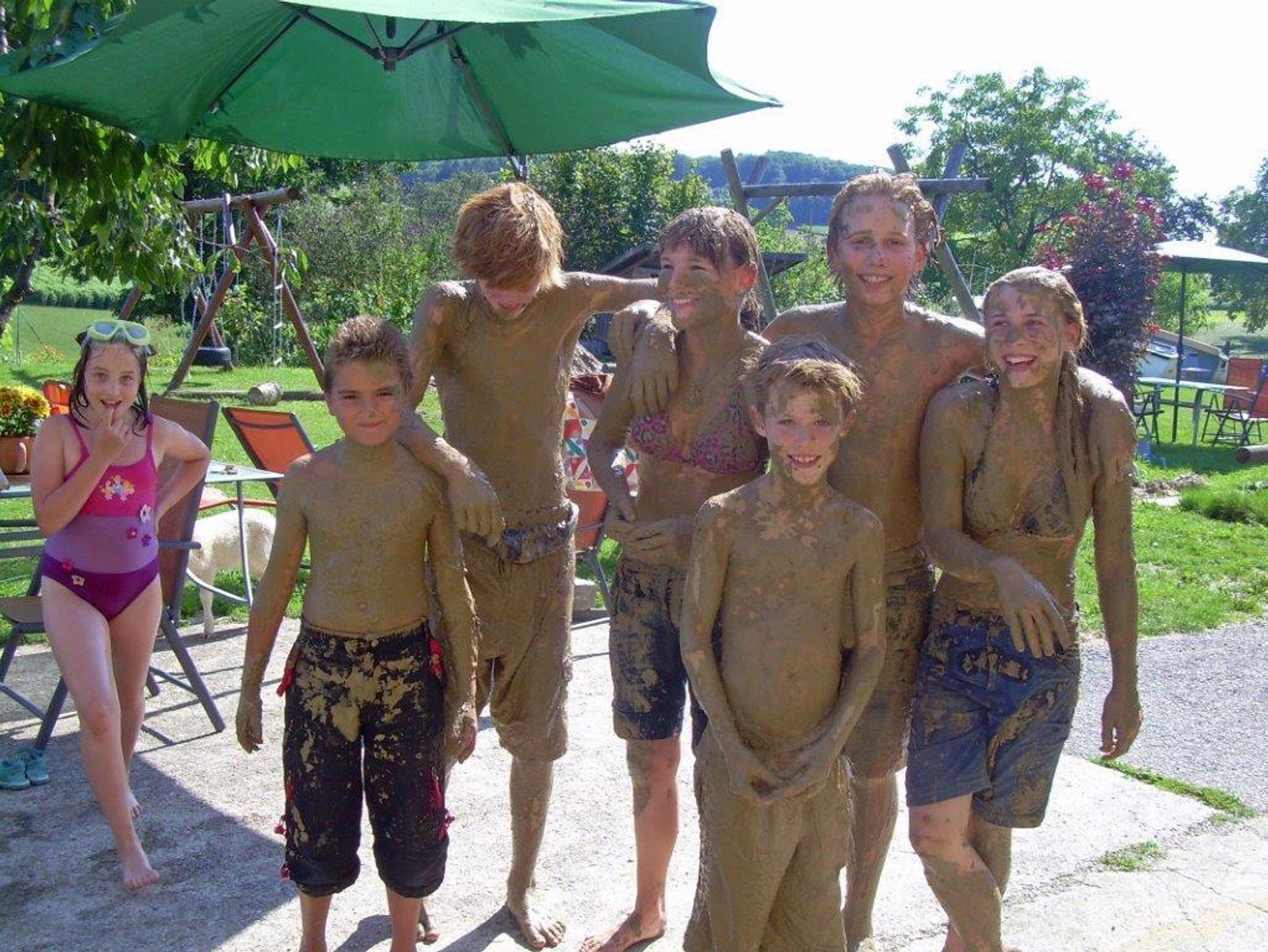 Wir sind ein landwirtschaftlicher Vollerwerbsbetrieb mit Jungrindern/Kühe und vielen Kleintieren(Hasen,Ponnys Ziegen;...). Unser überdachtes Schwimmbad, Spielplatz, Riesensandhaufen, Trampolin, Tischtennis, Go-Kart, Rutschautos, Spielesammlung und Spielräume für verschiedene Altersgruppen warten darauf von Euch entdeckt zu werden.