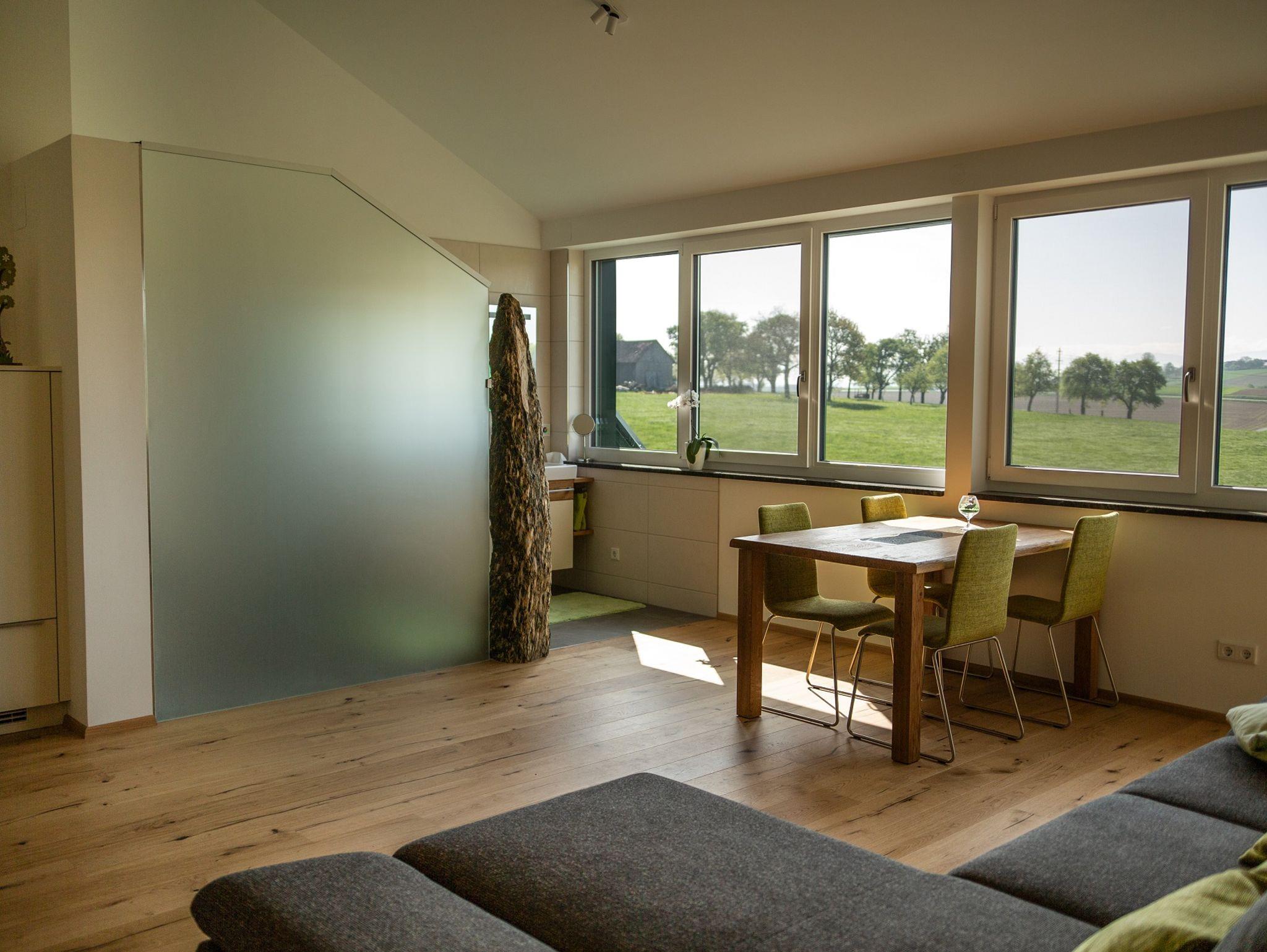 Diese Ferienwohnung ist ausgestattet mit modernen Möbeln, 2 Fernsehern sowie einer Küchenzeile. Das offene Bad mit großer Regendusche inklusive Sitzbank mit Panoramablick ist eine weitere Besonderheit. Das WC mit Pissor ist separat. Im Wohnbereich befindet sich eine große Couch. Für eure Kinder gibt es ein eigenes Kinderzimmer.