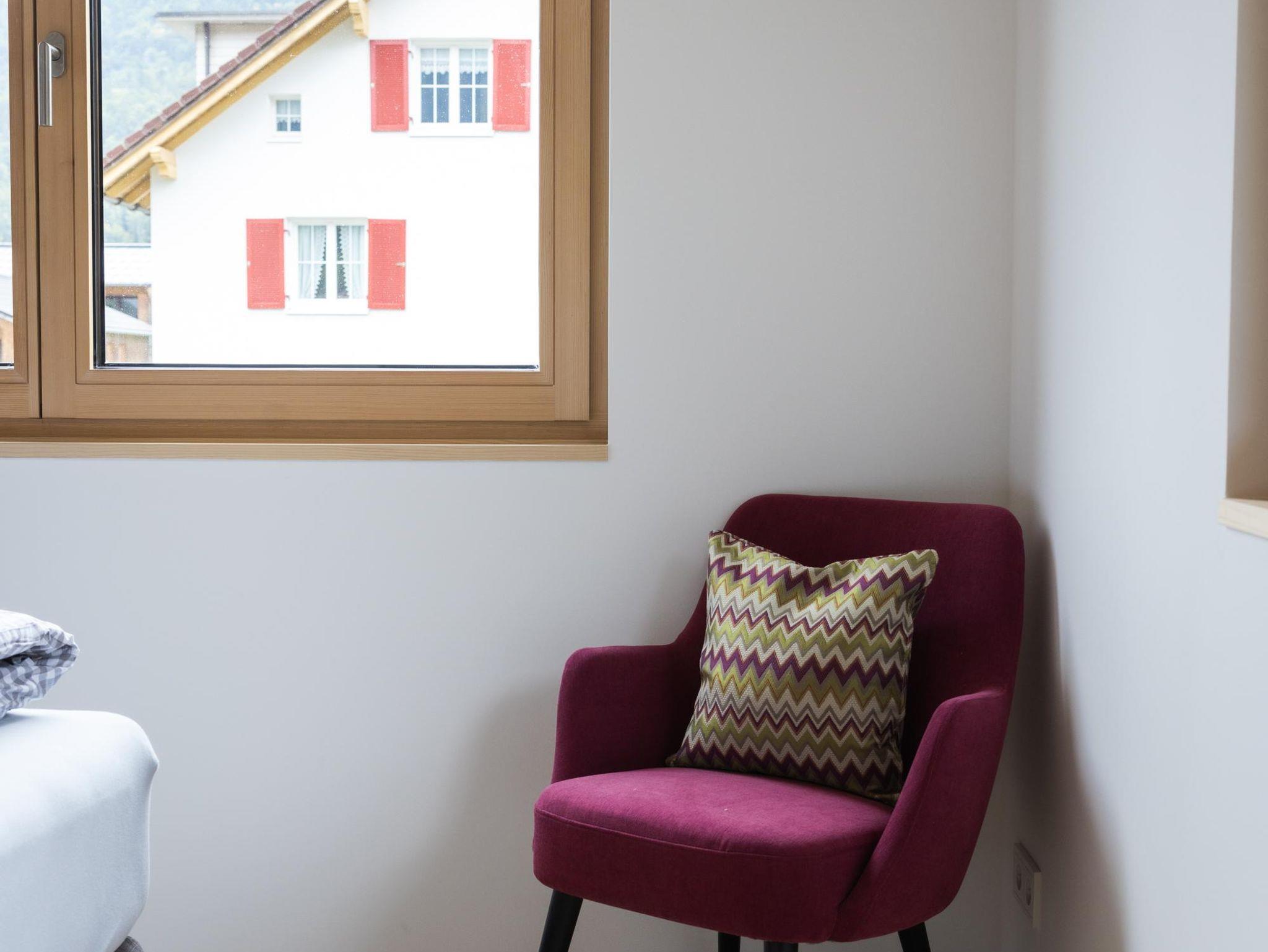 Willkommen in Apartment vier, einem großzügigen Apartment im Obergeschoss mit 71 m² für bis zu 7 Personen. Genießen Sie vom Balkon aus den unvergleichlichen Panoramablick auf die majestätische Bergwelt und lassen Sie die Seele baumeln.