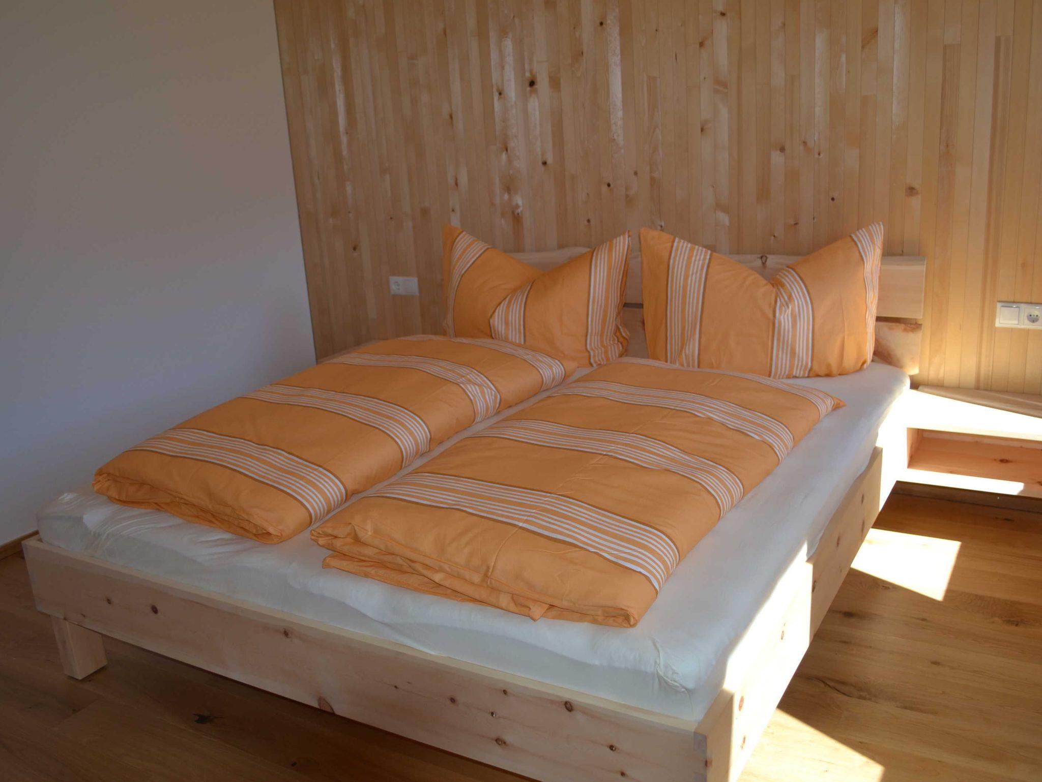 Eltern-Schlafzimmer mit Doppelbett aus Zirbe