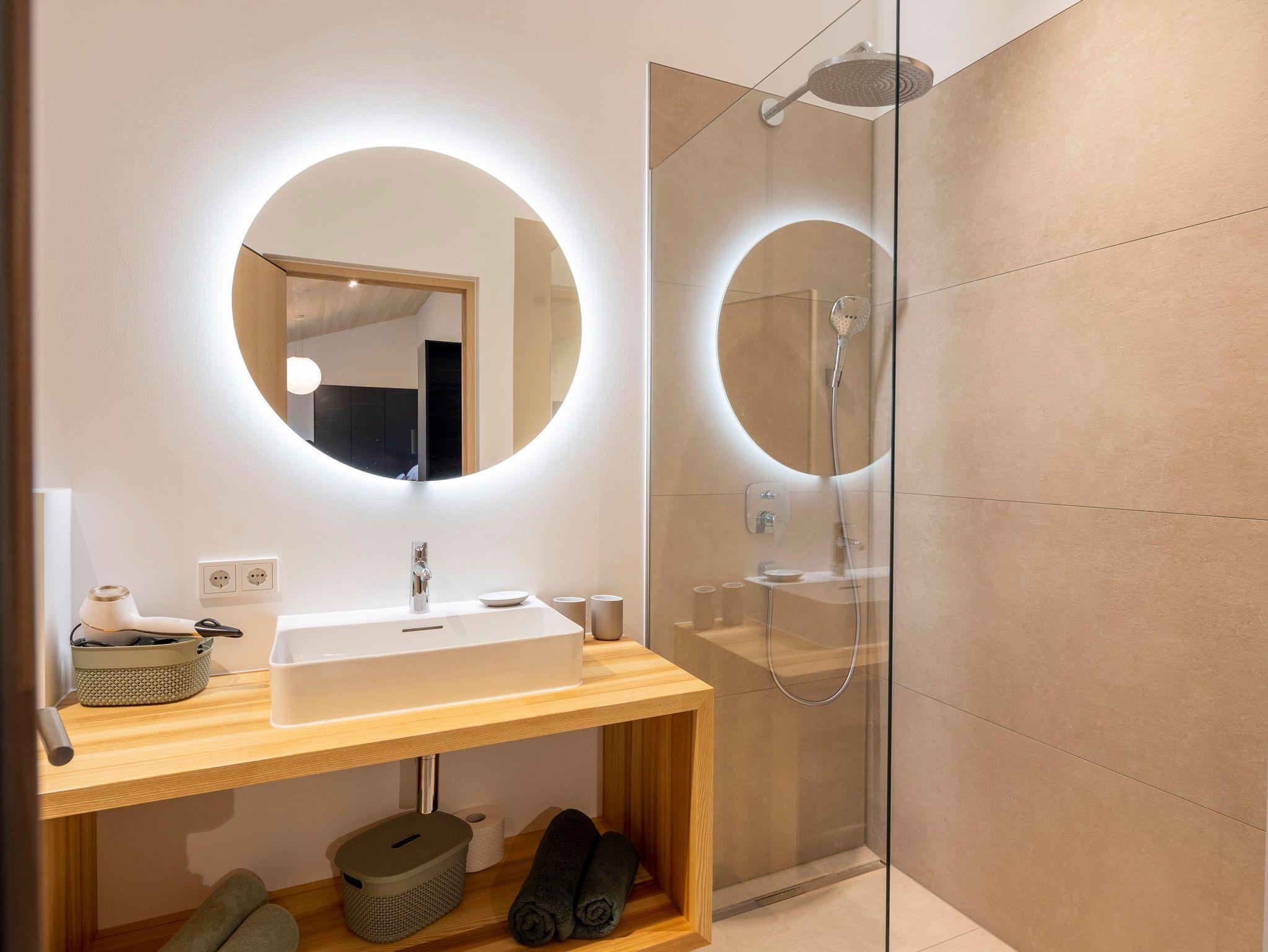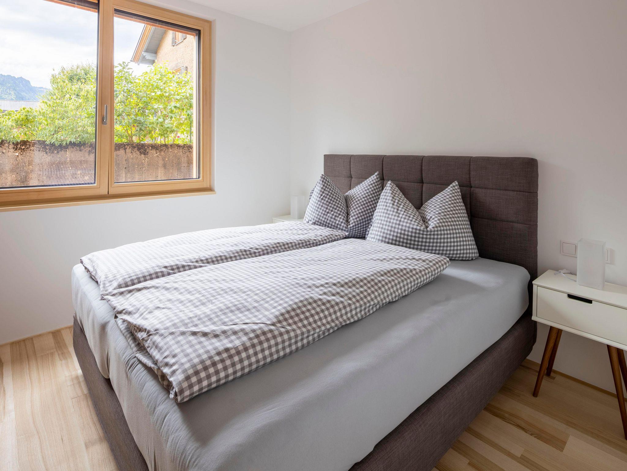 Apartment fünf bietet auf 44 m² Platz für 1 bis 4 Personen und befindet sich im Obergeschoss des Hauses. Mit seiner stilvollen Einrichtung und der hochwertigen Ausstattung erleben Sie hier höchsten Komfort und genießen zugleich den traumhaften Blick auf die umliegenden Berge.