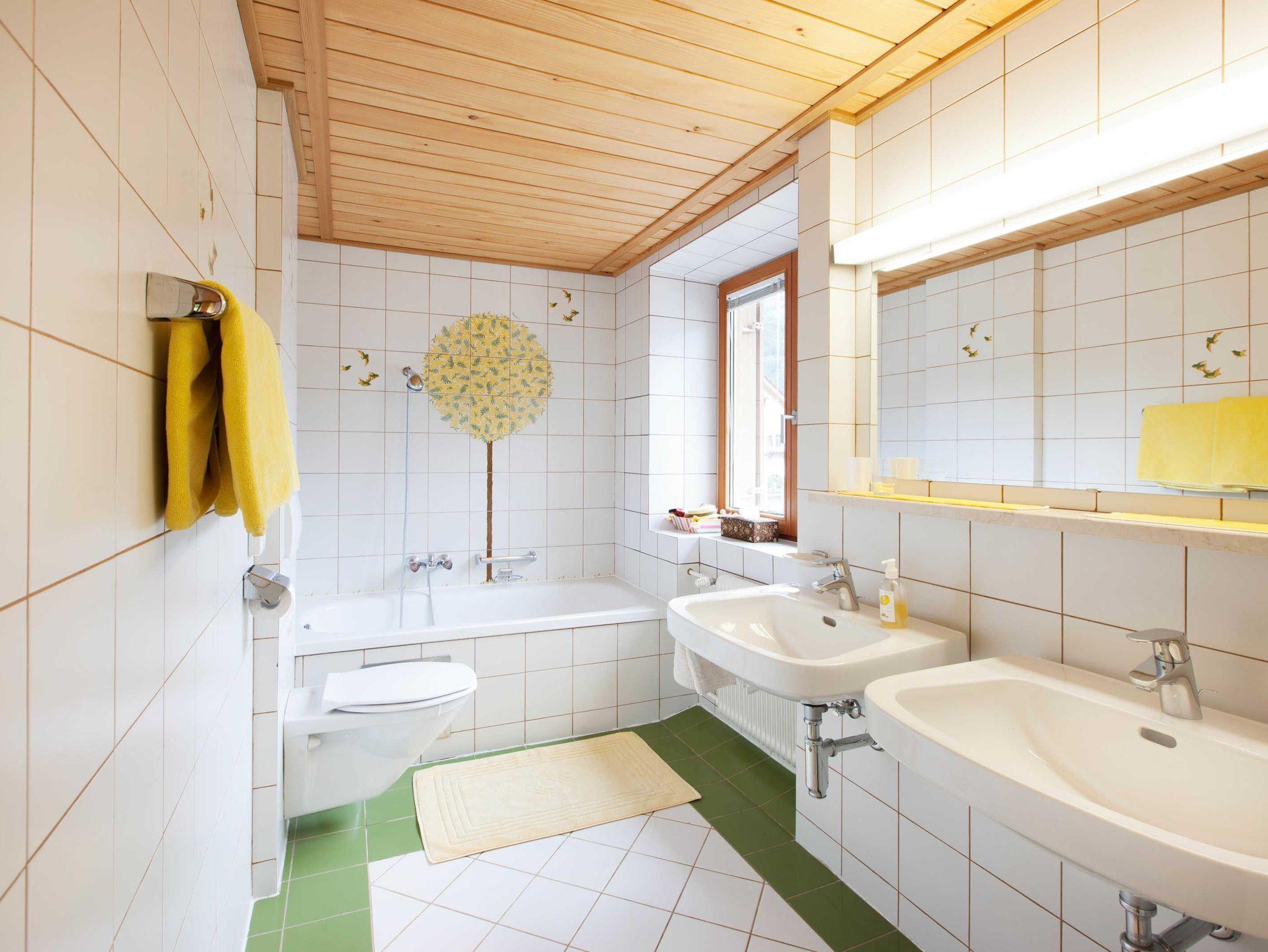 Ferienwohnung Gloria 80m² 2 Schlafzimmer und 2 Duschen WC, Regendusche WC, in Bizau. 5 Km bis Bezau. 9 Km bis zum Schigebiet Mellau Damüls. 4 Minuten zur Bushaltestelle.