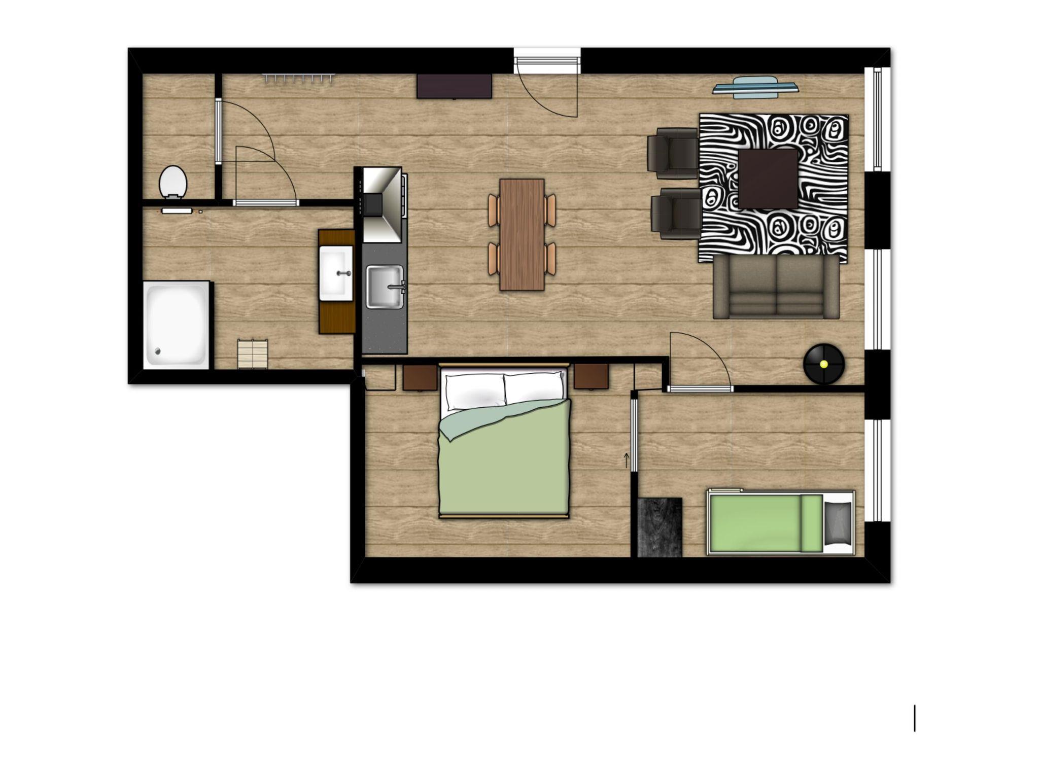 1 Schlafzimmer mit Etagenbett und Ausziehbett