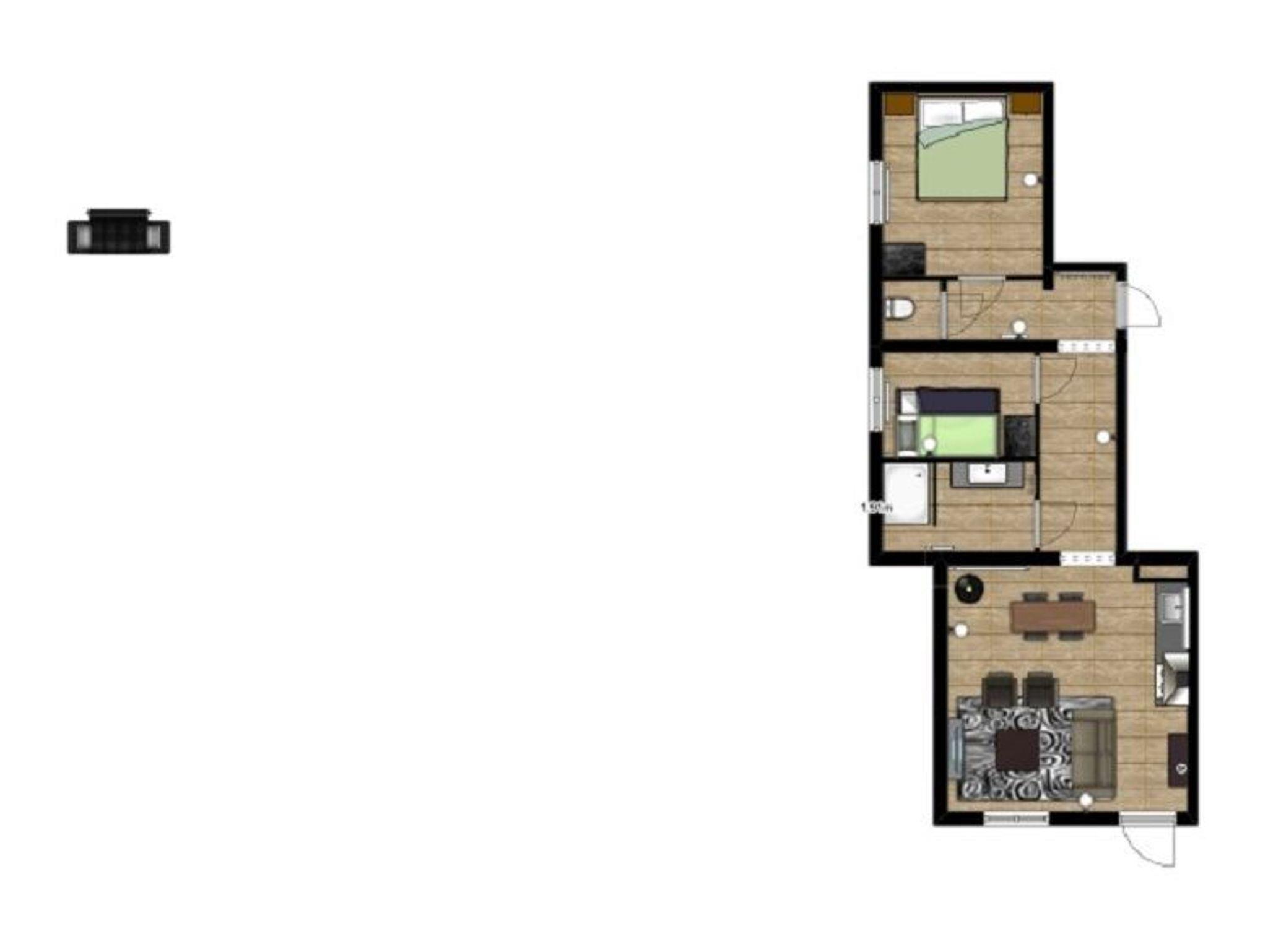 1 Elternschlafzimmer mit Doppelbett (extra lang)
