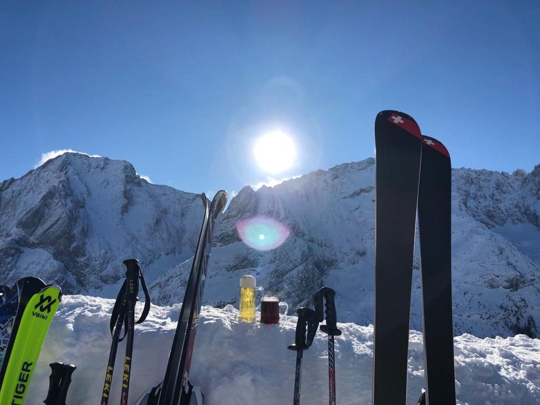 Sonniger Balkon mit Blick zur Skipiste