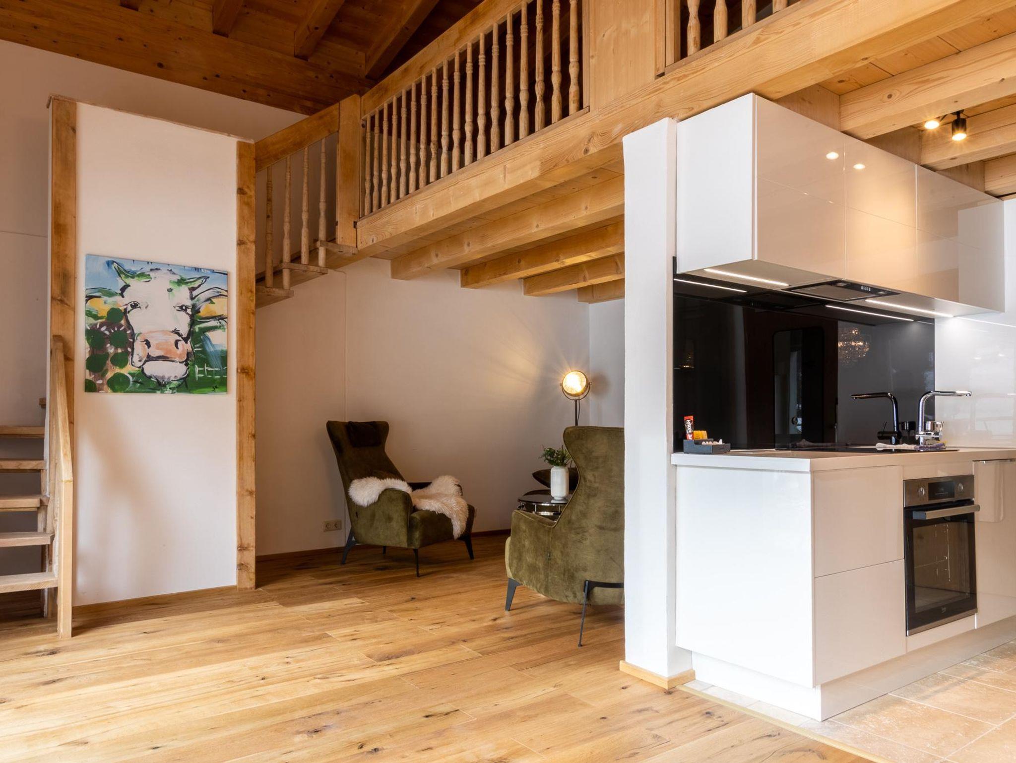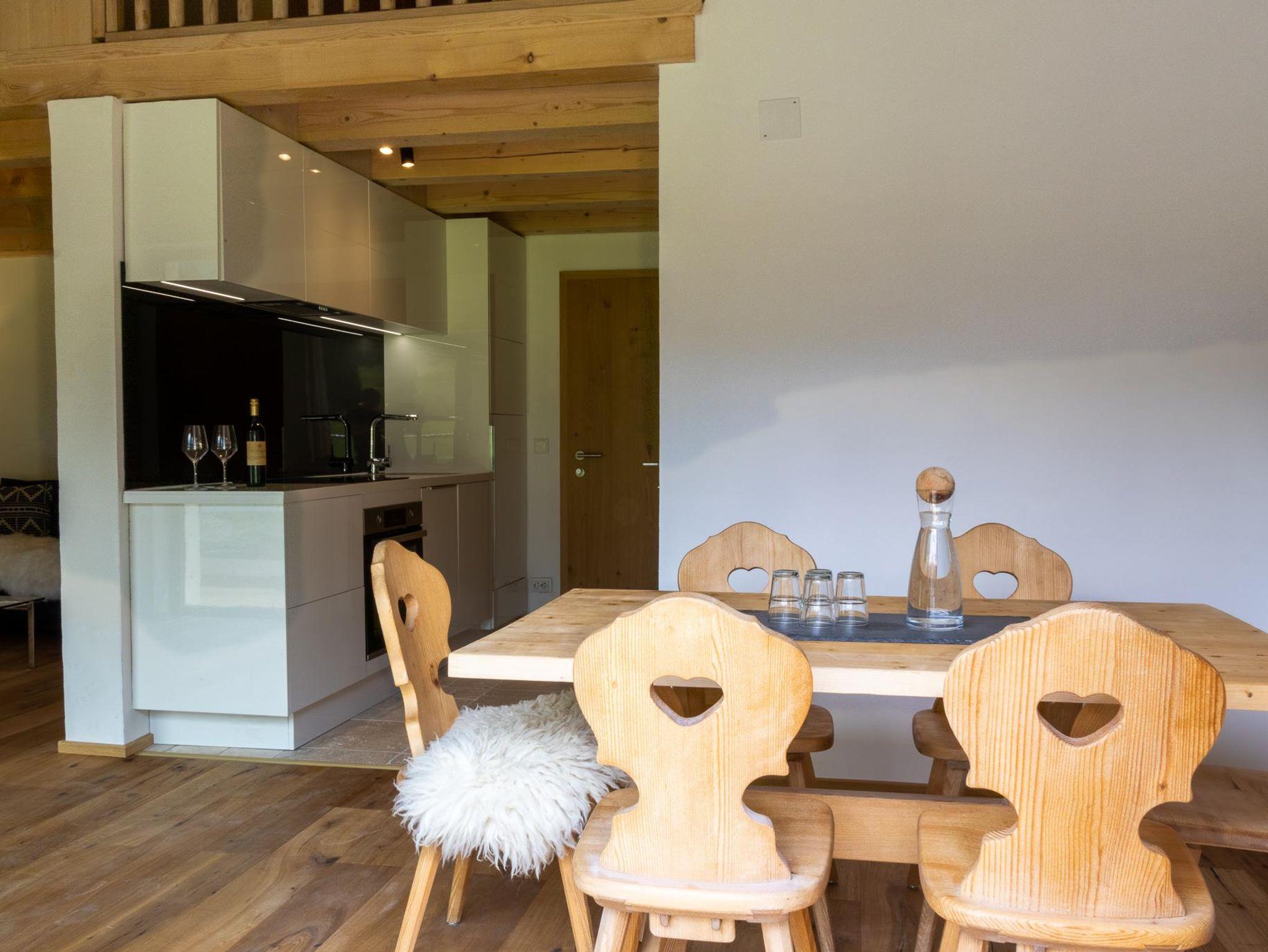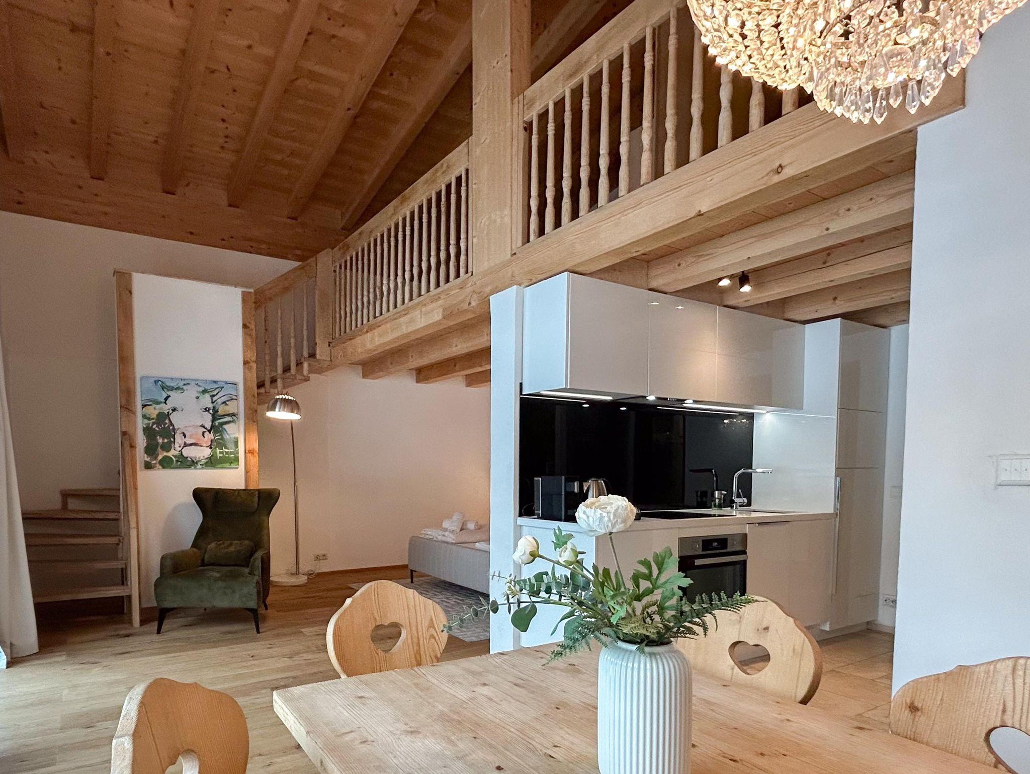 Dieses Apartment ist buchbar für bis zu 4 Personen und bietet auf 55 m² einen komfortablen Wohnbereich mit Flachbild-TV, ein Schlafzimmer mit Doppelbett, einen weiteren Schlafbereich für bis zu 2 Personen, eine voll ausgestattete Küche, ein modernes Badezimmer mit Dusche, ein separates WC sowie einen Südbalkon mit herrlichem Bergblick. Das Apartment befindet sich im 2. Stock und ist über eine Treppe zugänglich.
