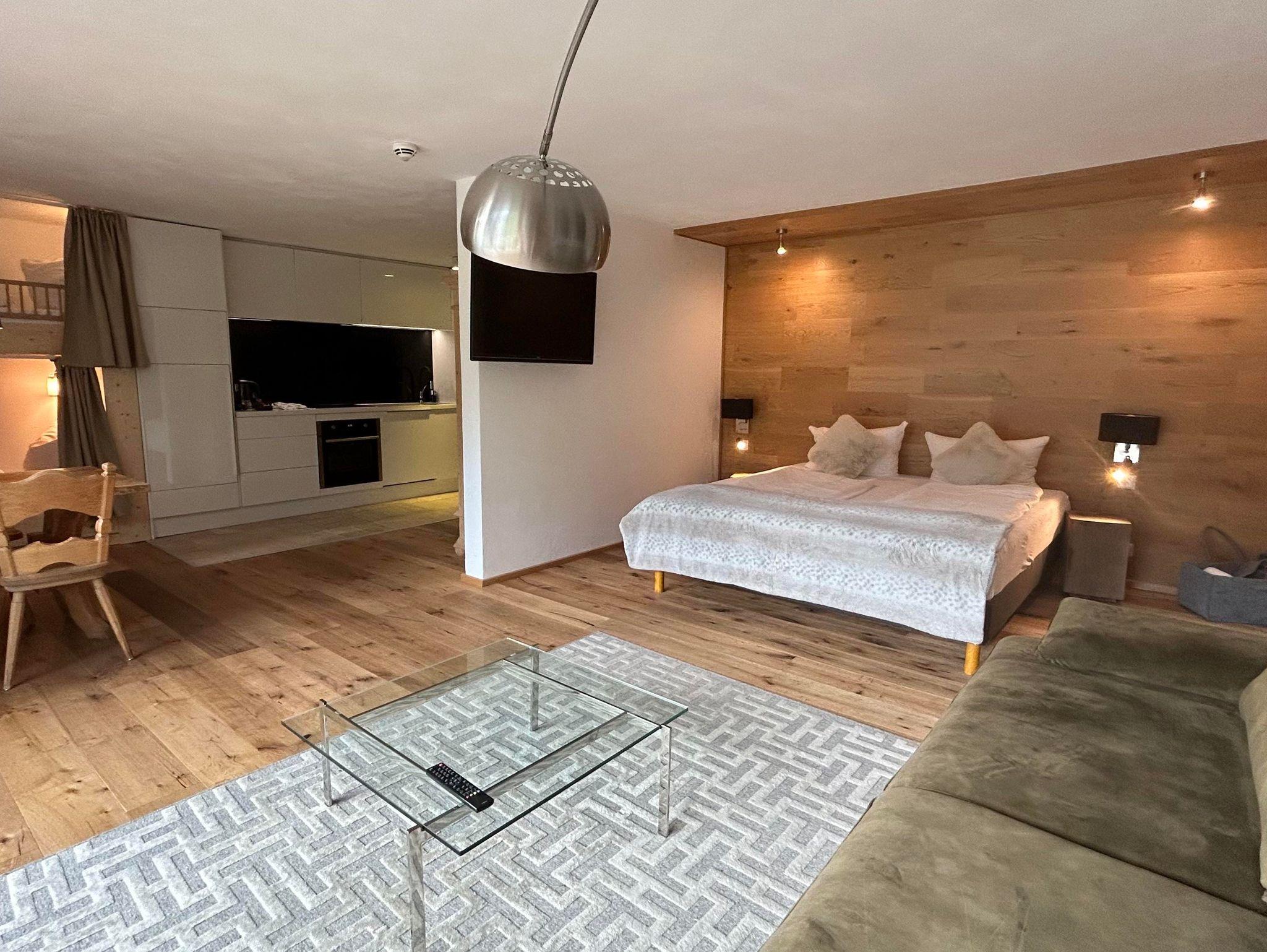 Auf ca. 30 m² erwartet dich ein komfortabler Wohn-/Schlafbereich mit einem gemütlichen Doppelbett, einer voll ausgestatteten Küche, einem modernen Badezimmer mit Dusche sowie einem privaten Südbalkon mit atemberaubendem Bergblick. Das Apartment befindet sich im 3. Stock, bietet Platz für max. 2 Personen und ist bequem über einen Aufzug zugänglich.