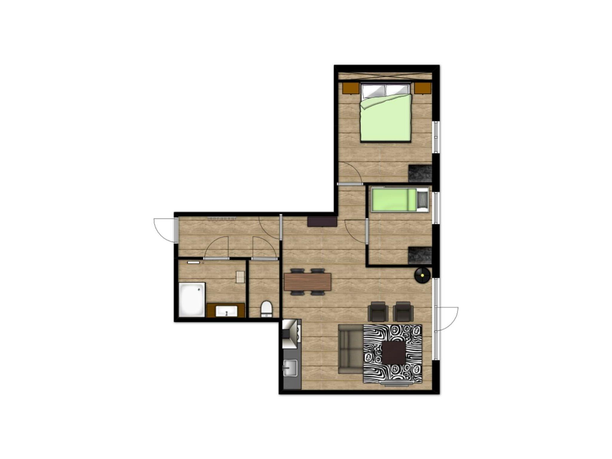 1 Schlafzimmer mit Etagenbett und Ausziehbett
