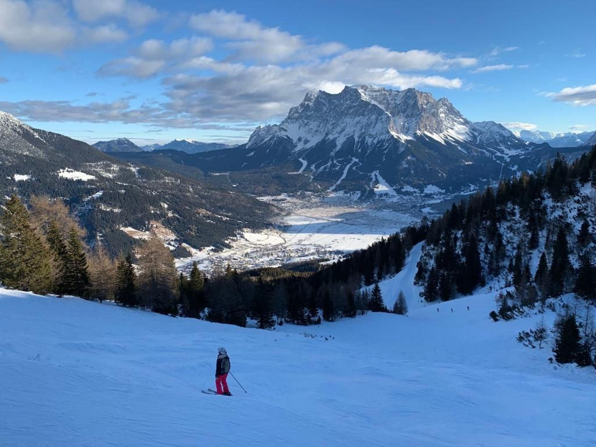Sonnige Terrasse mit Blick auf die Zugspitze