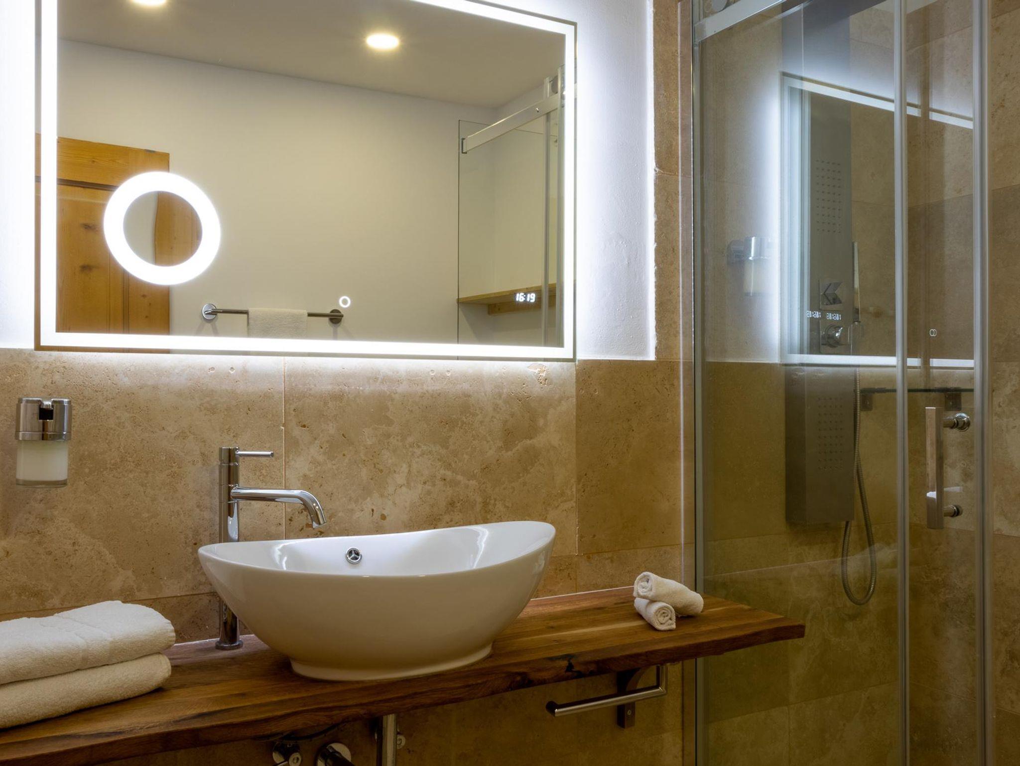 Die Junior Suite bietet auf 30 m² Platz für bis zu 2 Personen und vereint Komfort mit einem naturnahen Ambiente. Der moderne Wohn- und Schlafbereich verfügt über ein gemütliches Doppelbett. Eine voll ausgestattete Küche sowie ein modernes Bad mit Dusche sorgen für zusätzlichen Wohlfühlfaktor. Der sonnige Südbalkon eröffnet einen traumhaften Blick auf die Berge. Bequem über den Aufzug erreichbar.